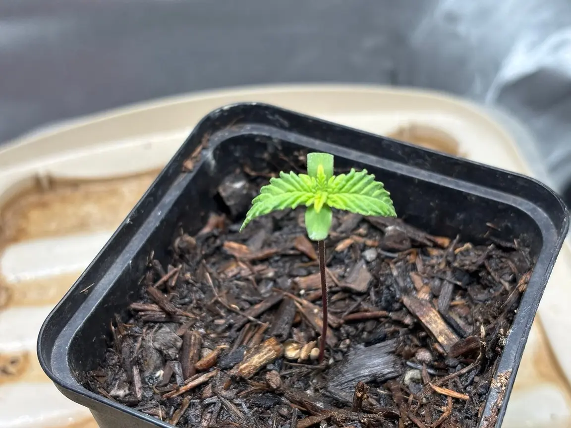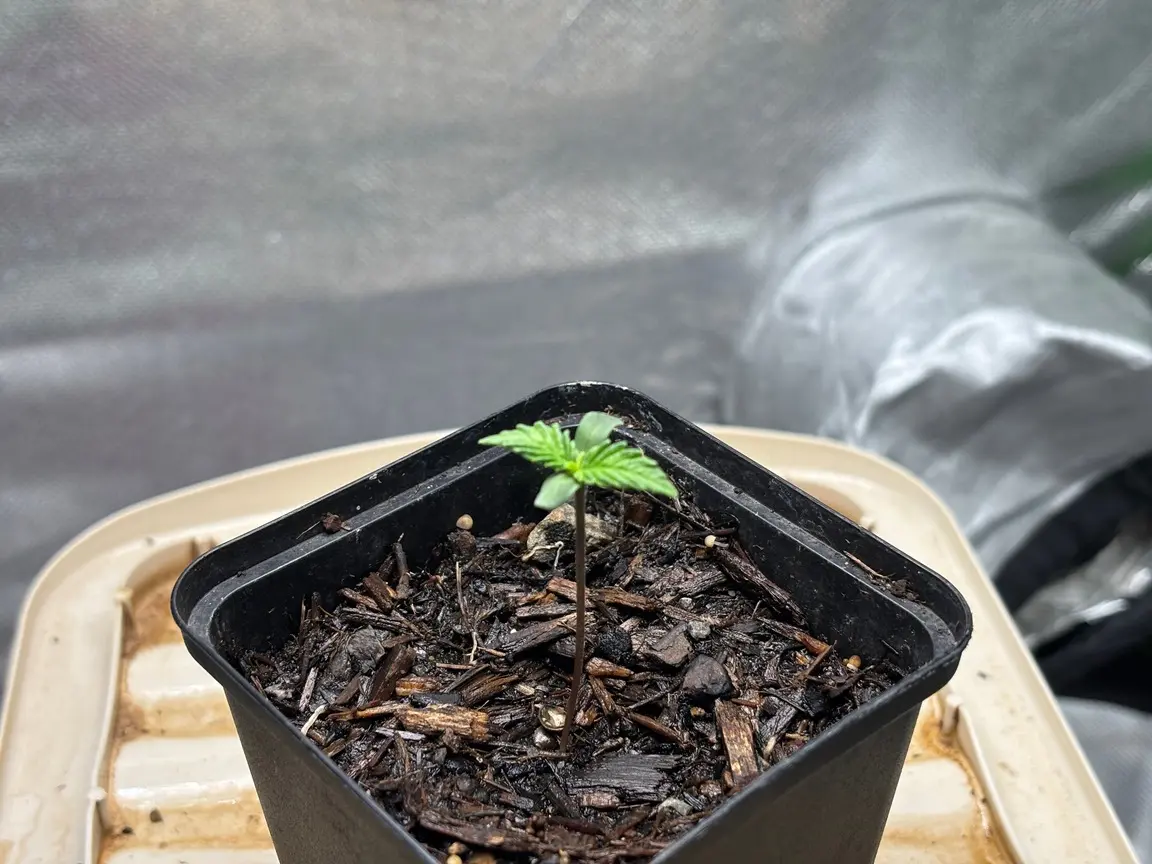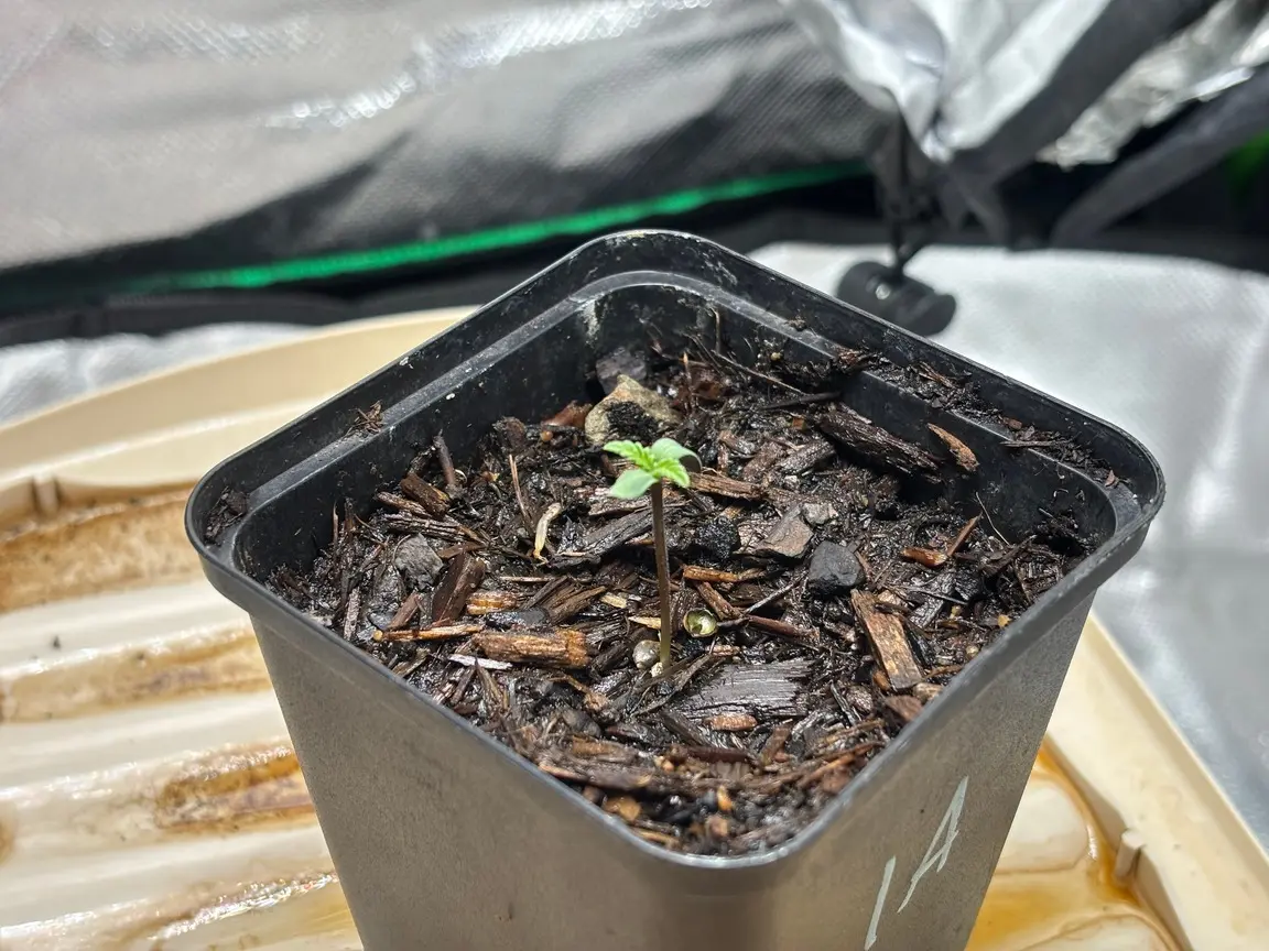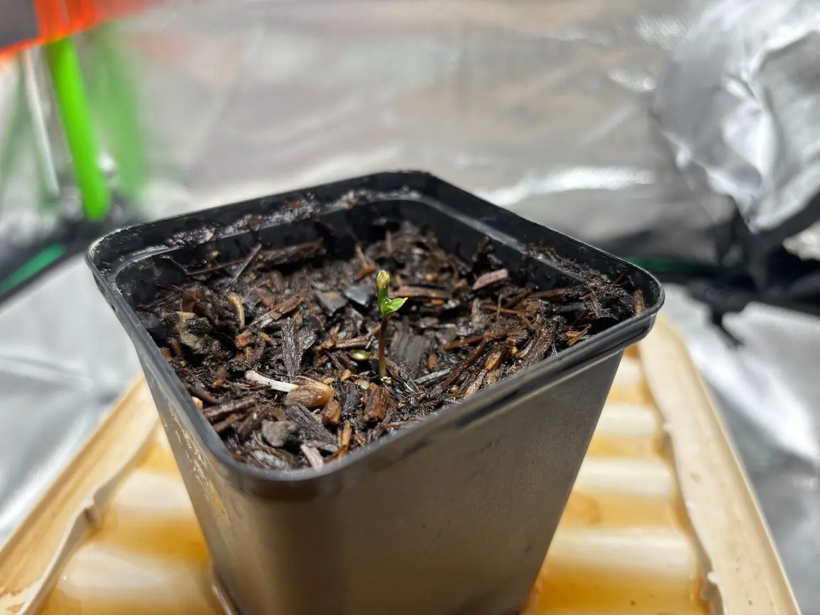 Vor zwei Tagen in Anzuchterde keimen lassen, leider kam die Plant nicht alleine zurecht und ich musste Geburtshilfe leisten, das Häutchen von der Samenschale ging nicht von den Keimblättern los und dass musste ich dann manuel frickeln ![]()