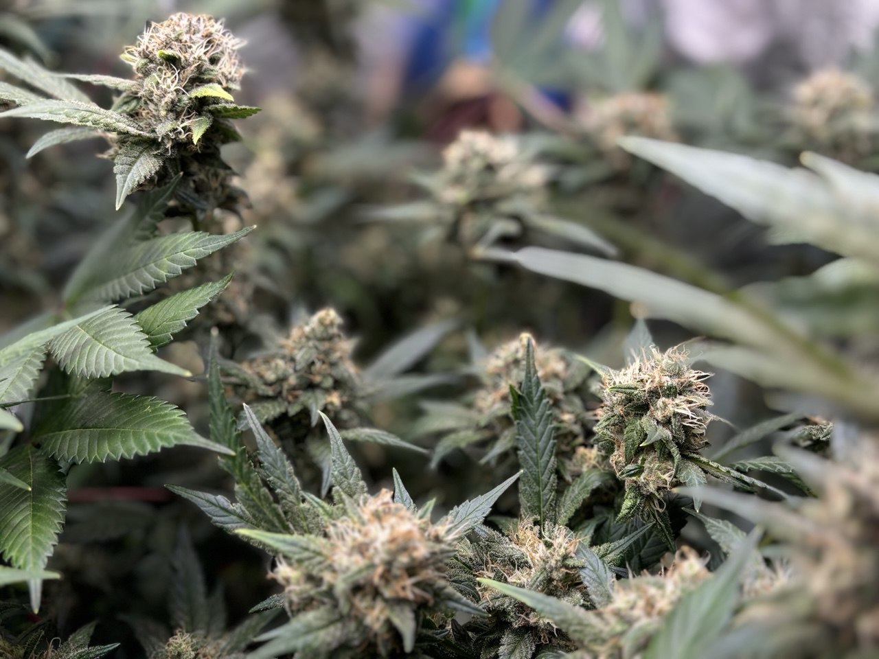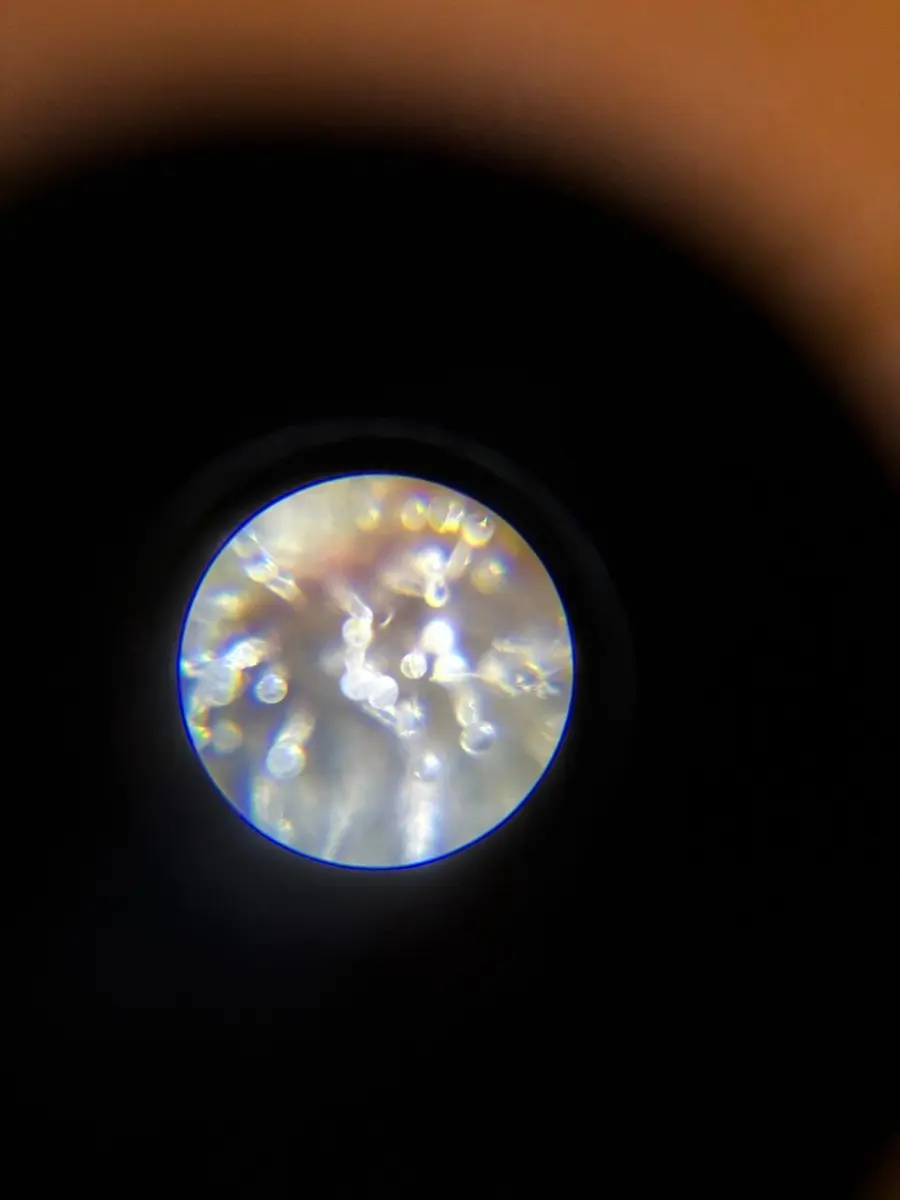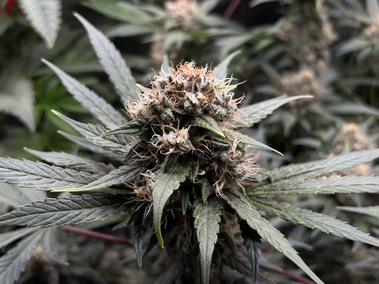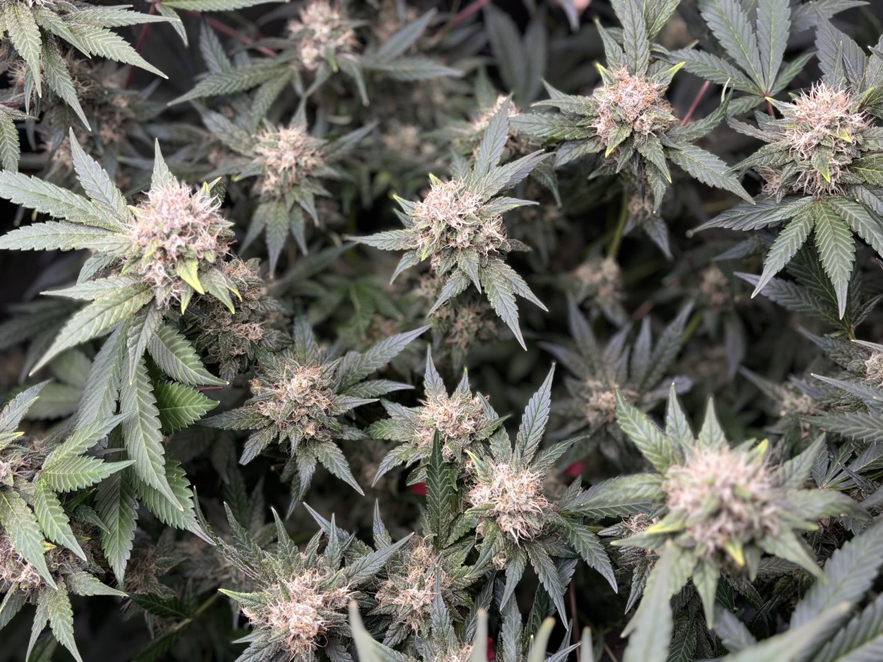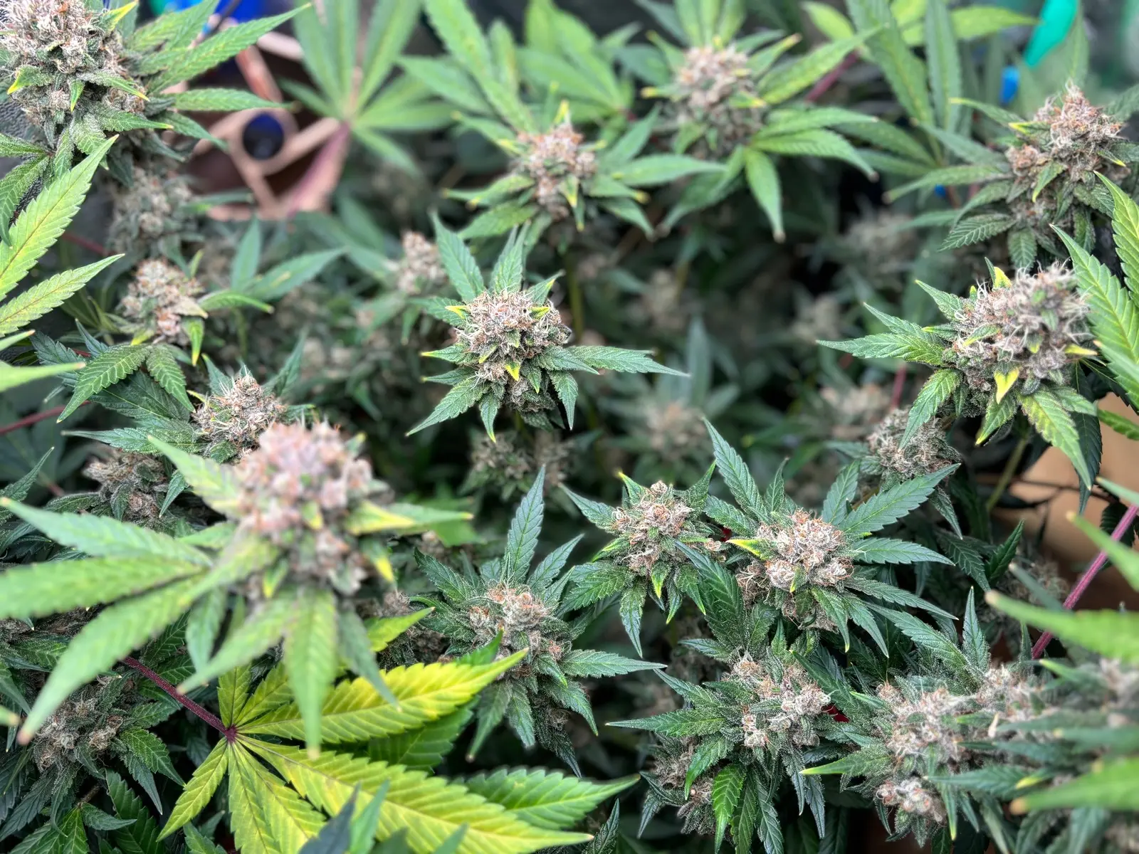 Gießwasser besteht aus ca. 20ML Ripen 😃 (Final Part) auf 10 Liter leicht ph reguliertes Wasser. Vor ein paar Tagen hatte ich ein paar Blätter für den Luftkorridor abgenommen, sonst nichts an ihr gemacht. Ich werde heute abend die Trichome Checken u. ggfs. auch davon noch ein Pic hochladen, evtl. sieht man ja irgendwas purple/pinkes.... 🧐