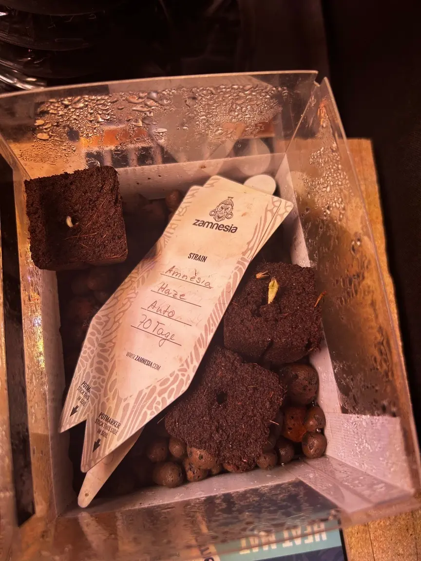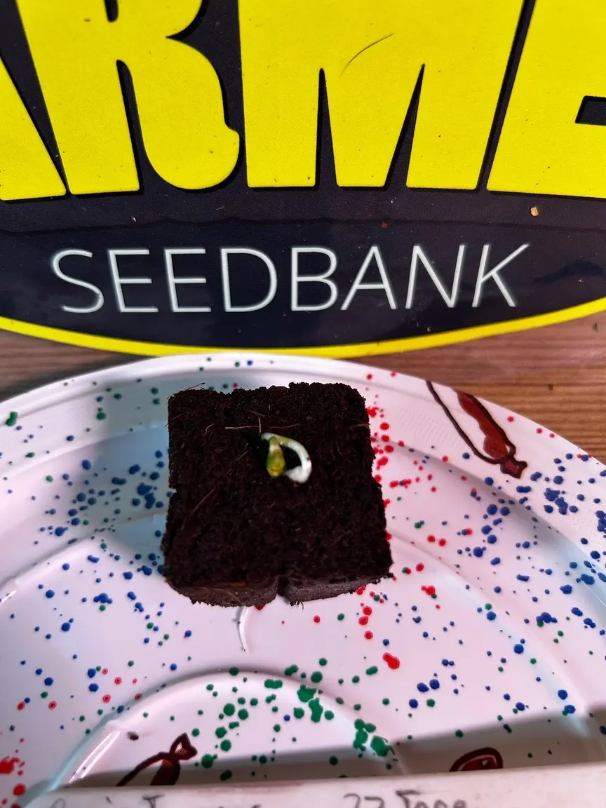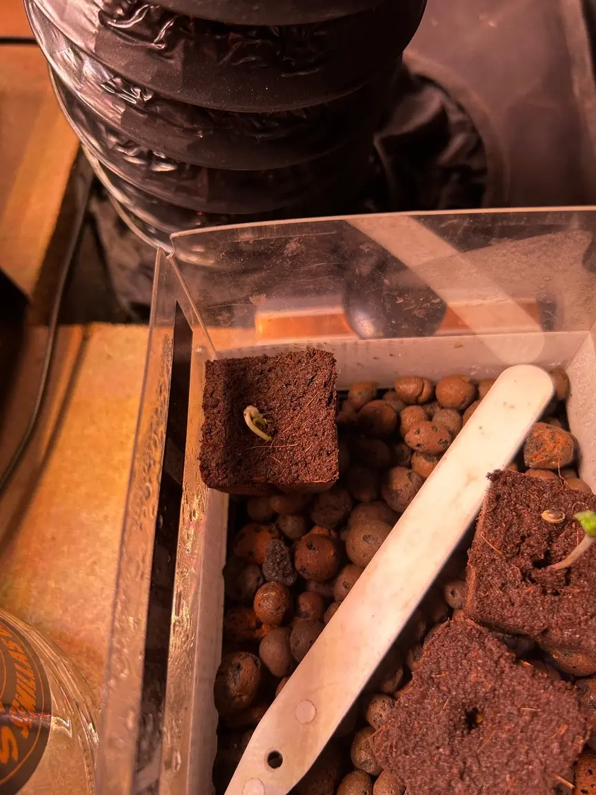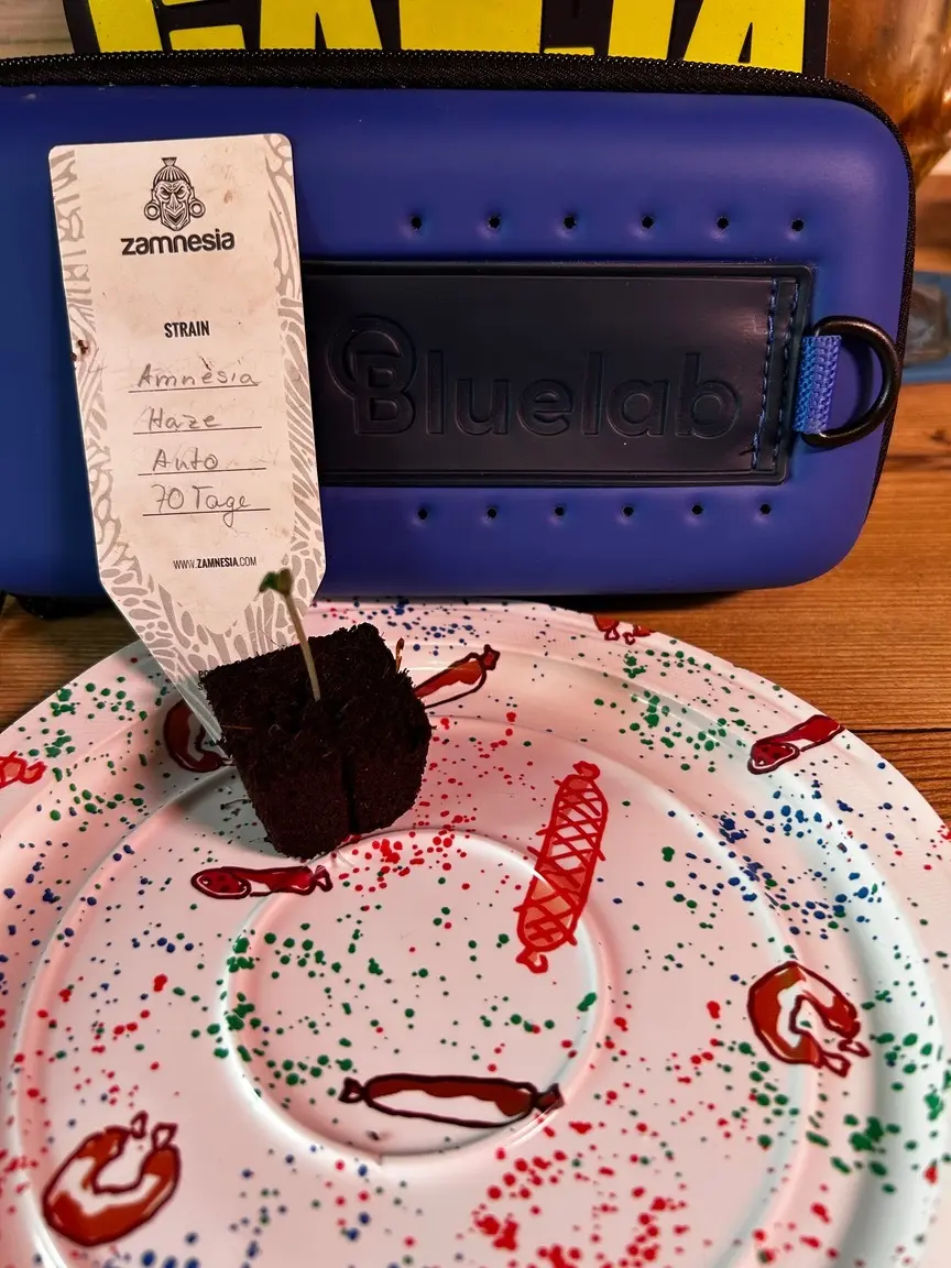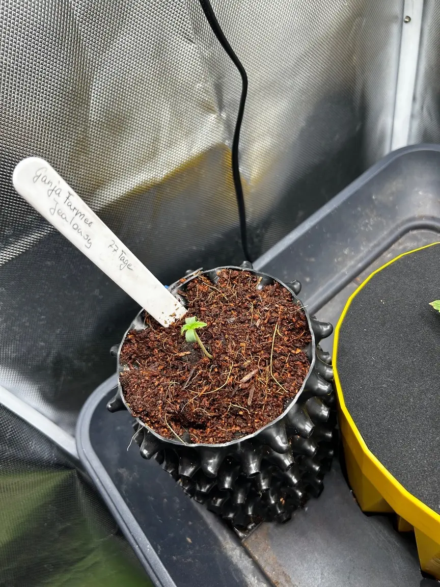 Zur Ausrüstung: gekeimt wurde im Eazyplug, die dumme Nuss hat zwar schon am ersten Tag gepoppt, ist dann aber eine extrarunde zurück in den Plug gewachsen. 😆