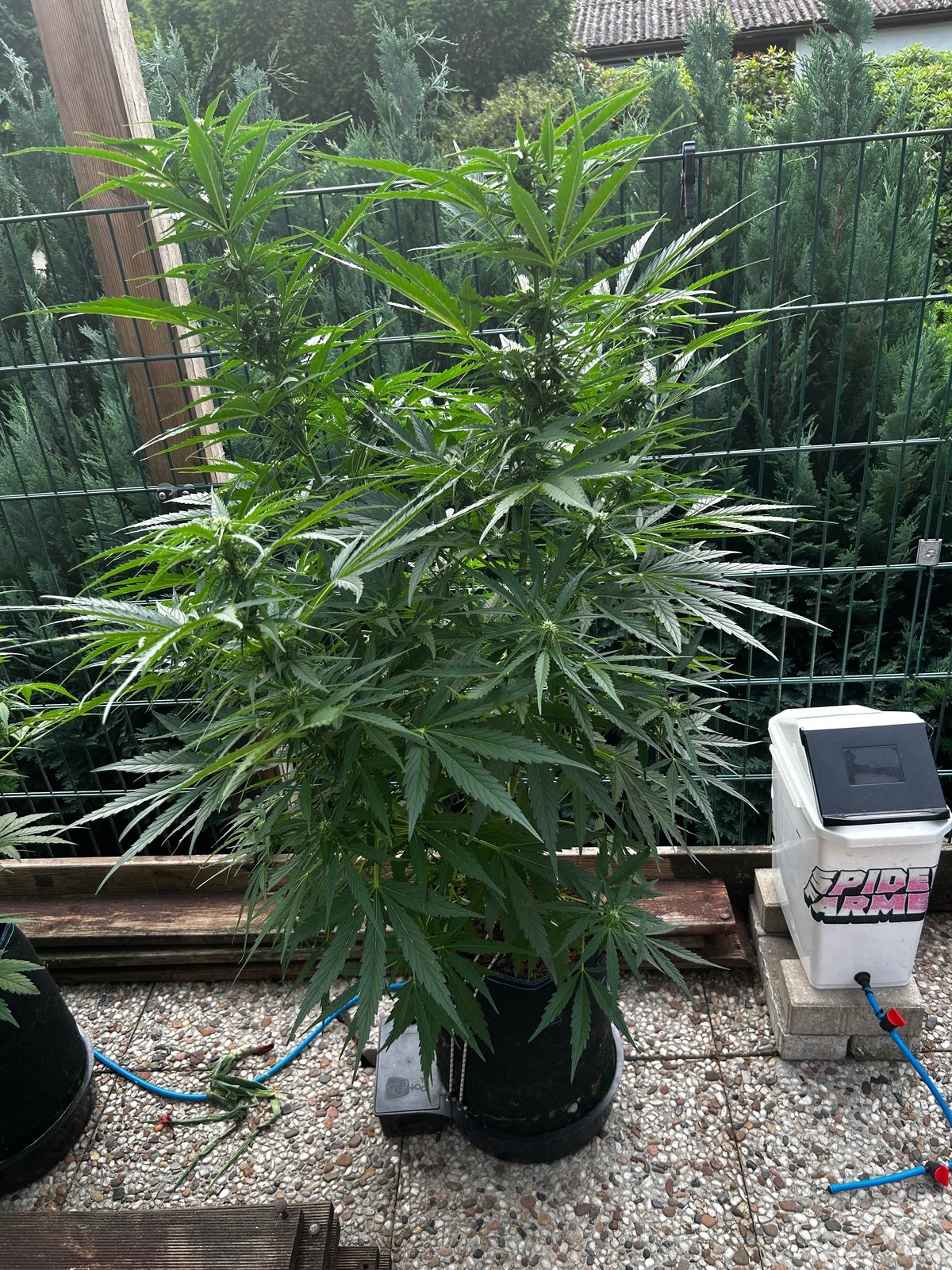 So, hier gibt’s Bilder… 😂 und nen Schock: Tank war gestern fast leer, hatte es noch der LG erzählt. Auf jeden Fall vor dem Frühstück Tank auffüllen! … Ergebnis: beim Bilder machen denk ich mir „die sehen aber trocken aus…“ 🙈 naja, ging noch mal gut. Es gab 40L Wasser + 20g Calcium + Hybrid-Stammlösung bis Ec 2,5. anschließend wurde der pH auf 5,8 gesenkt und fertig. Außer des Calcium’s, sowie in der Veggie zusätzlich BioNova‘s X-Cell als Wurzelbooster, kommt zu dem Dünger echt nix dazu. Keine roten Stiele, keine Blattflecken, einfach genau passend. Übrigens nicht nur für diesen Strain, gleiches Futter bekommt auch ne White Widow Auto (7 Tage jünger) und eine Amnesia Haze Auto (gleich alt) von Zamnesia.