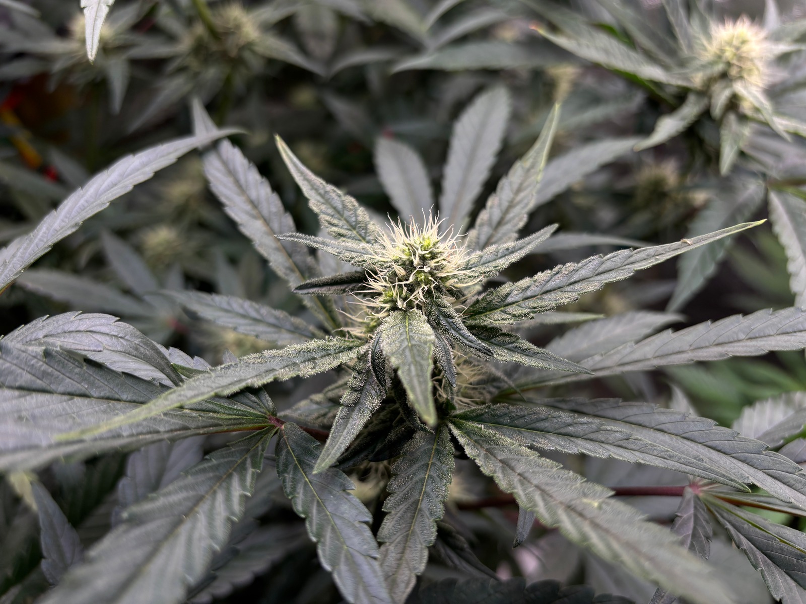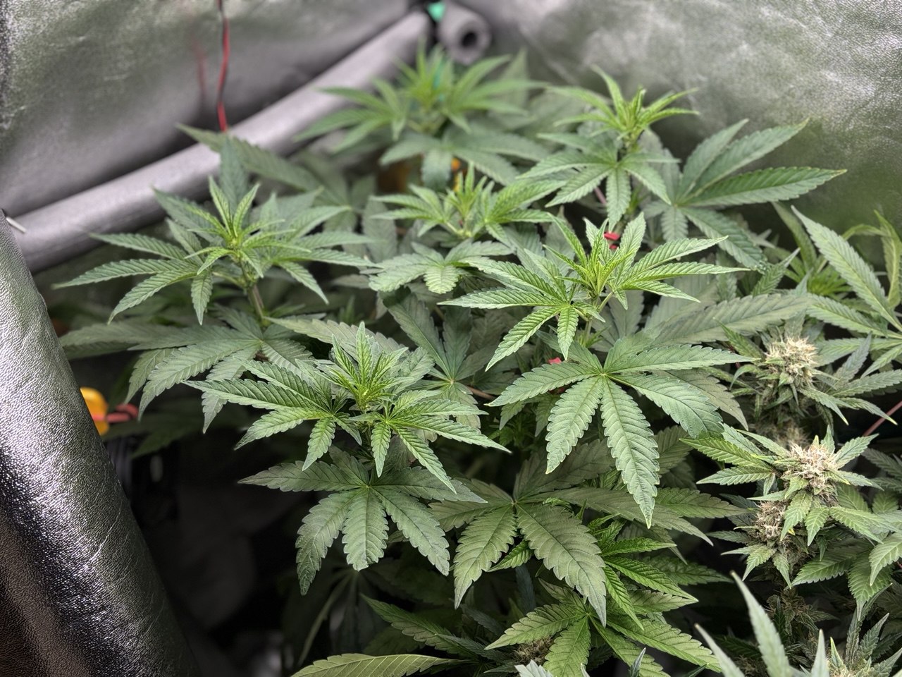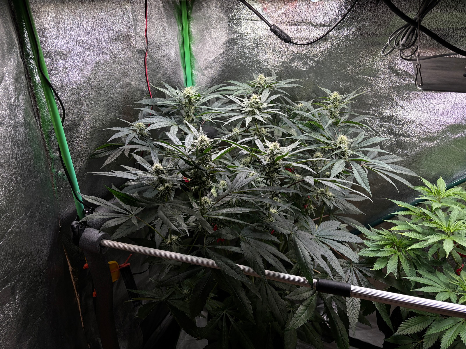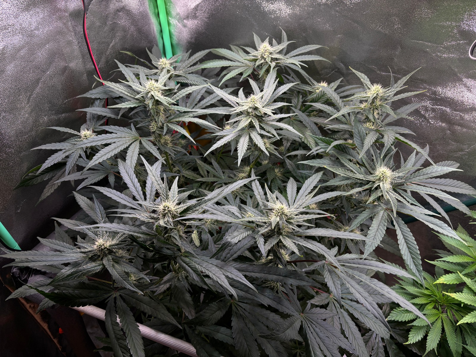 Seit 3 Tagen ist die Blüte deutlich erkennbar. Moderate 🐌 Reaktionszeit. LST/HST: Alle kleineren 🥬Triebe wurden entfernt, im moment wird das 120er🎴 Zelt wirklich schön ausgefüllt.