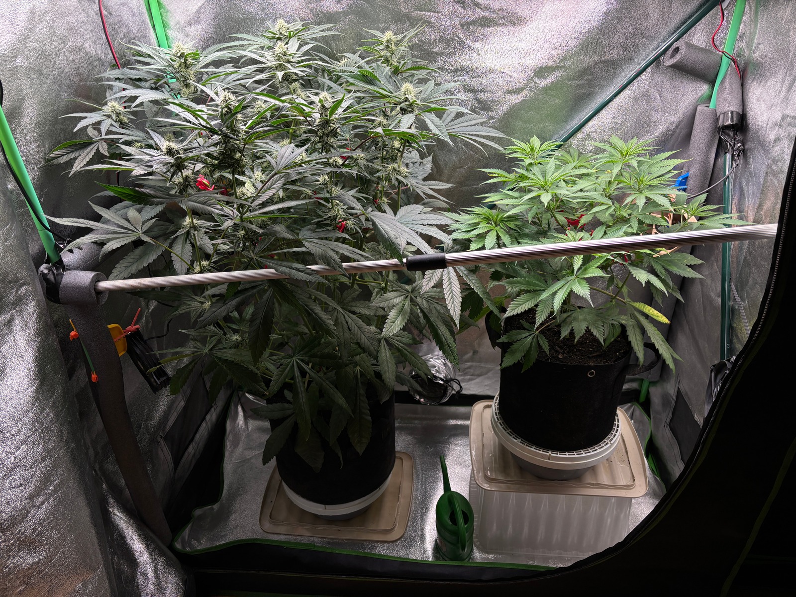 Kleinere Triebe habe ich entfernt, würdet Ihr die restlichen kleinen Triebe auch wegmachen? Ich frage mich ob das dem Perlite geschuldet ist das die Pflanzen gerade so abgehen... ich behalte mein Setup, also Erde, Perlite, Coco + Hesi Dünger nun bei, ich denke so langsam hab ichs für mich raus, auch mit dem Gießen, was echt nicht unterschätzt werden sollte!