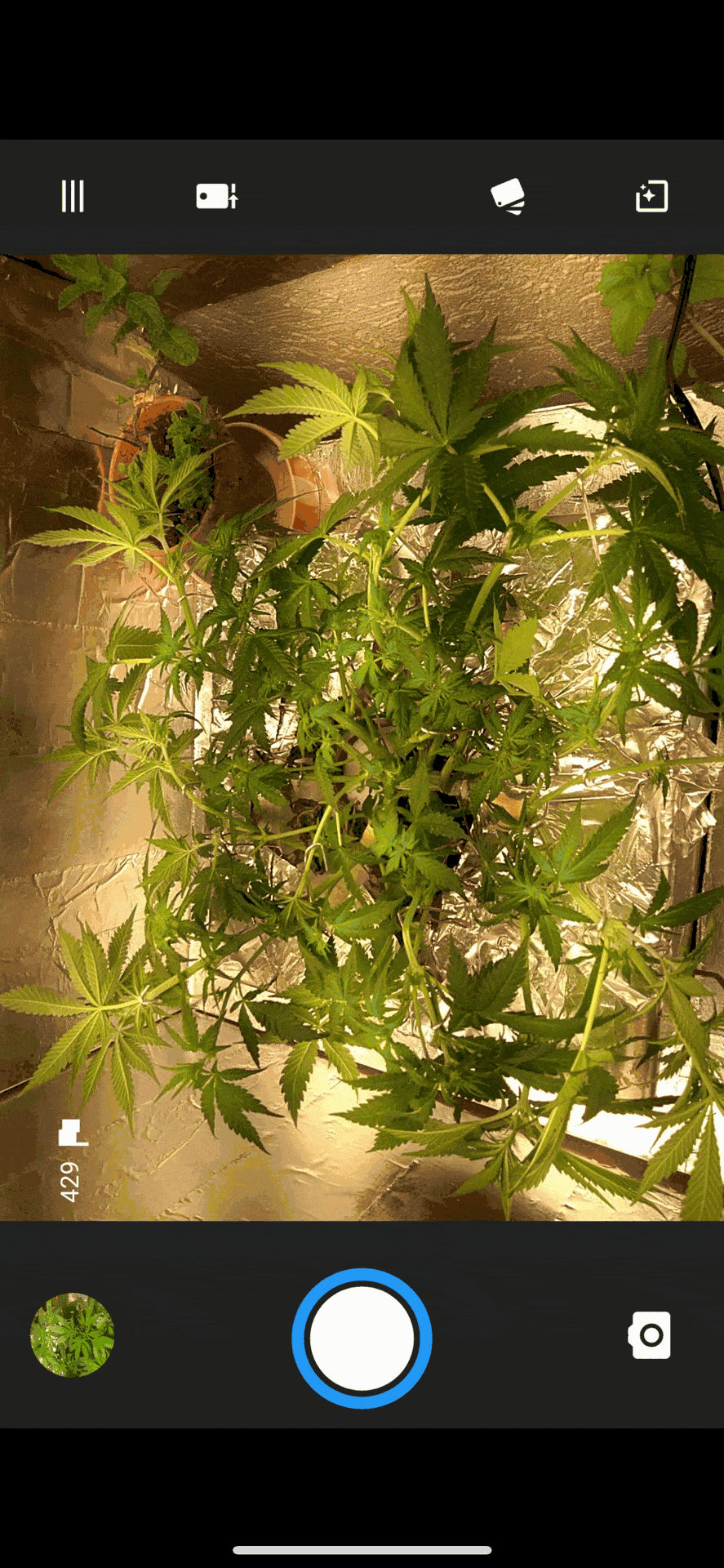 Ein älteres, gerootetes Android-Smartphone wird per Remote-Zugriff gesteuert. Es ist so konfiguriert, dass es automatisch Fotos mit MacDroid aufnimmt und gleichzeitig Musik per Autoplay-Funktion abspielt. Die Musik dient dabei nicht nur zur Atmosphäre – Studien deuten darauf hin, dass bestimmte Schallfrequenzen das Wachstum von Cannabispflanzen positiv beeinflussen können, indem sie zellbiologische Prozesse anregen und den Stoffwechsel fördern.