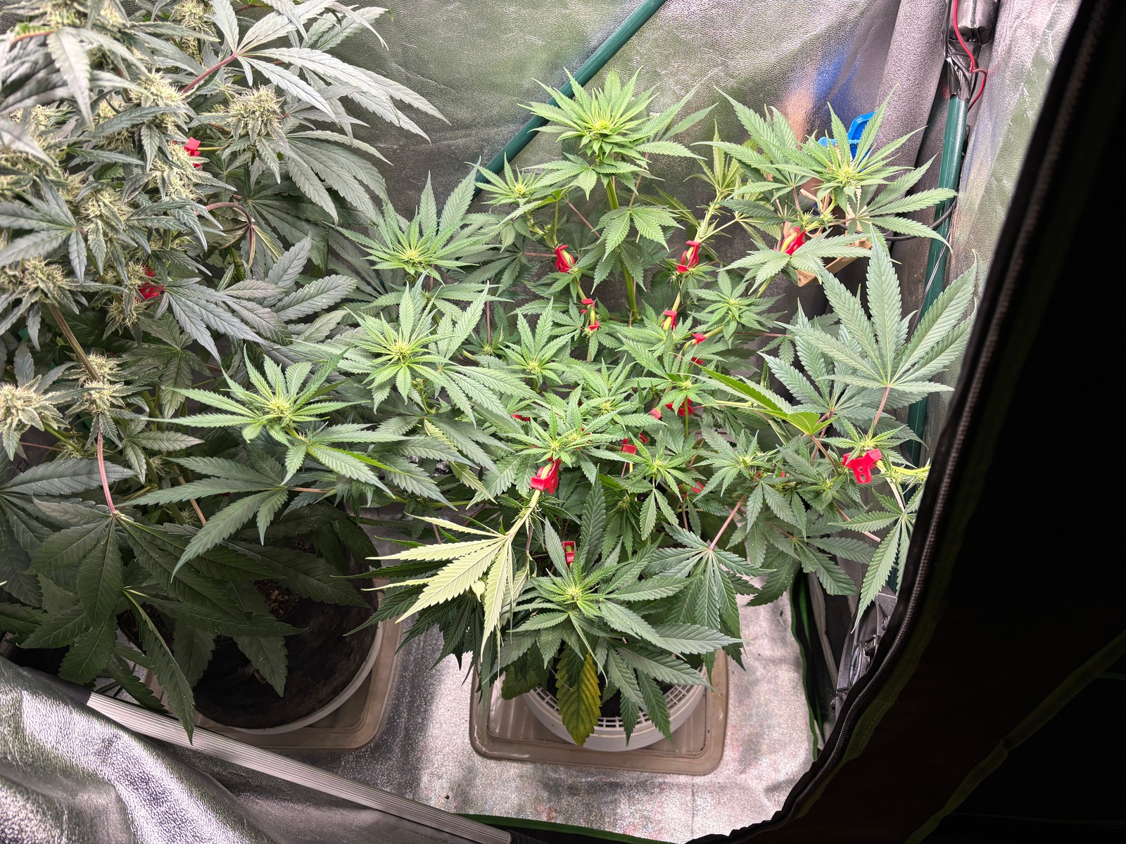 Muss das gießen nochmal anpassen, ist so schon 2er le Gießen durch die verssch. Töpfe u. Stadien, aber auch die Ventilation, Zu u. Abluft spielen gerade eine große Rolle, nicht so easy, mal warn die Töpfe zu leicht, mal noch zu Feucht, manchmal trügt das Gefühl, muss mir wohl echt das wiegen angewöhnen!? Ansonsten ist vom Cal/Mag Mangel gerade nichts zu sehen, unternommenn habe ich auch nichts.