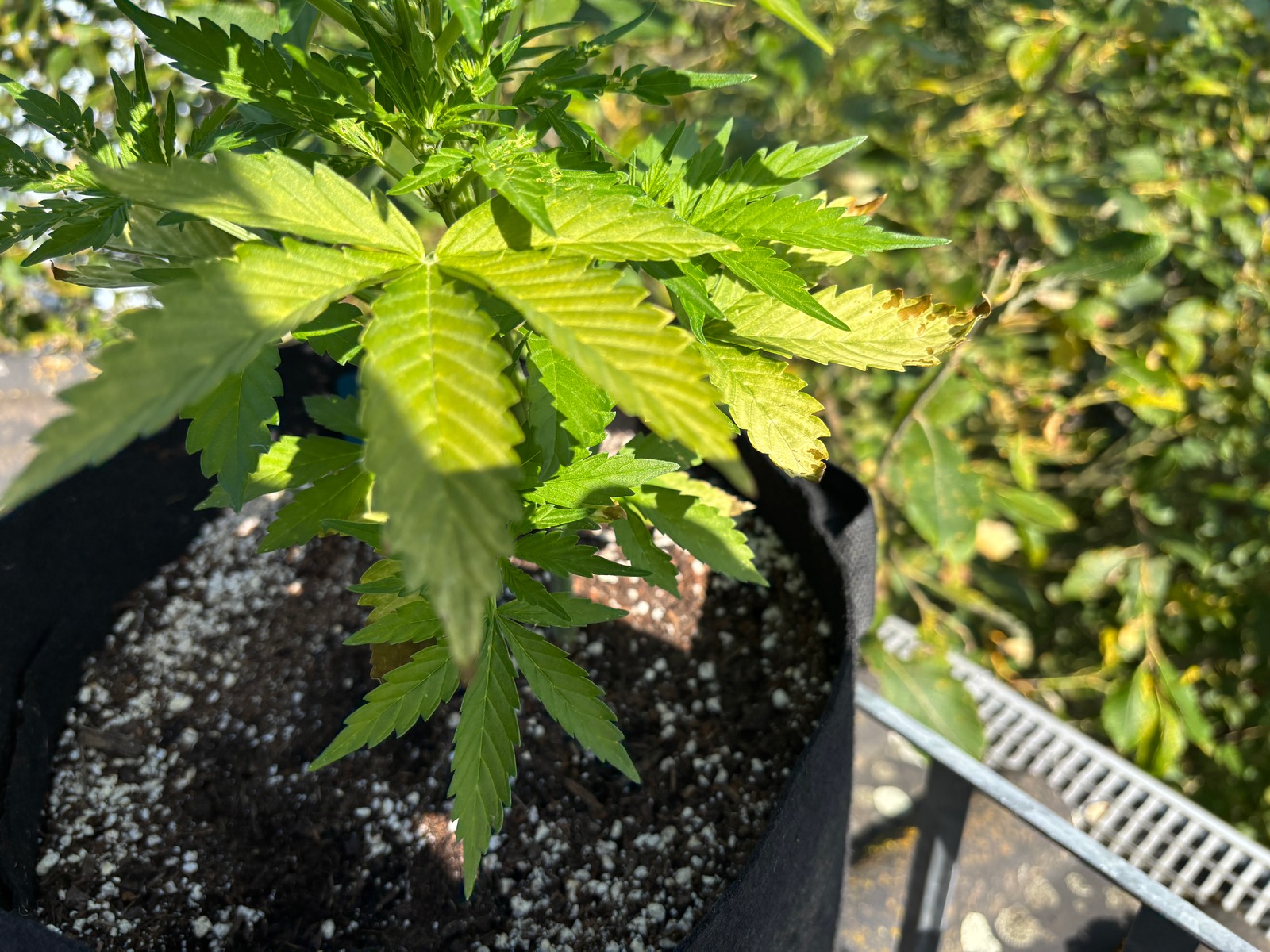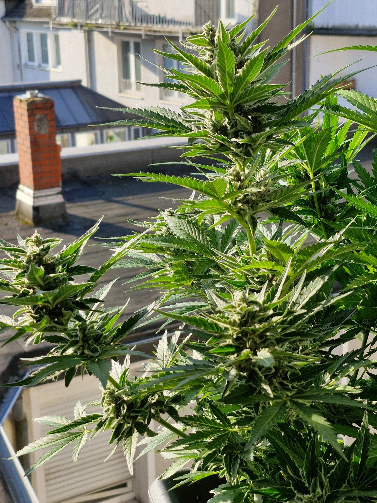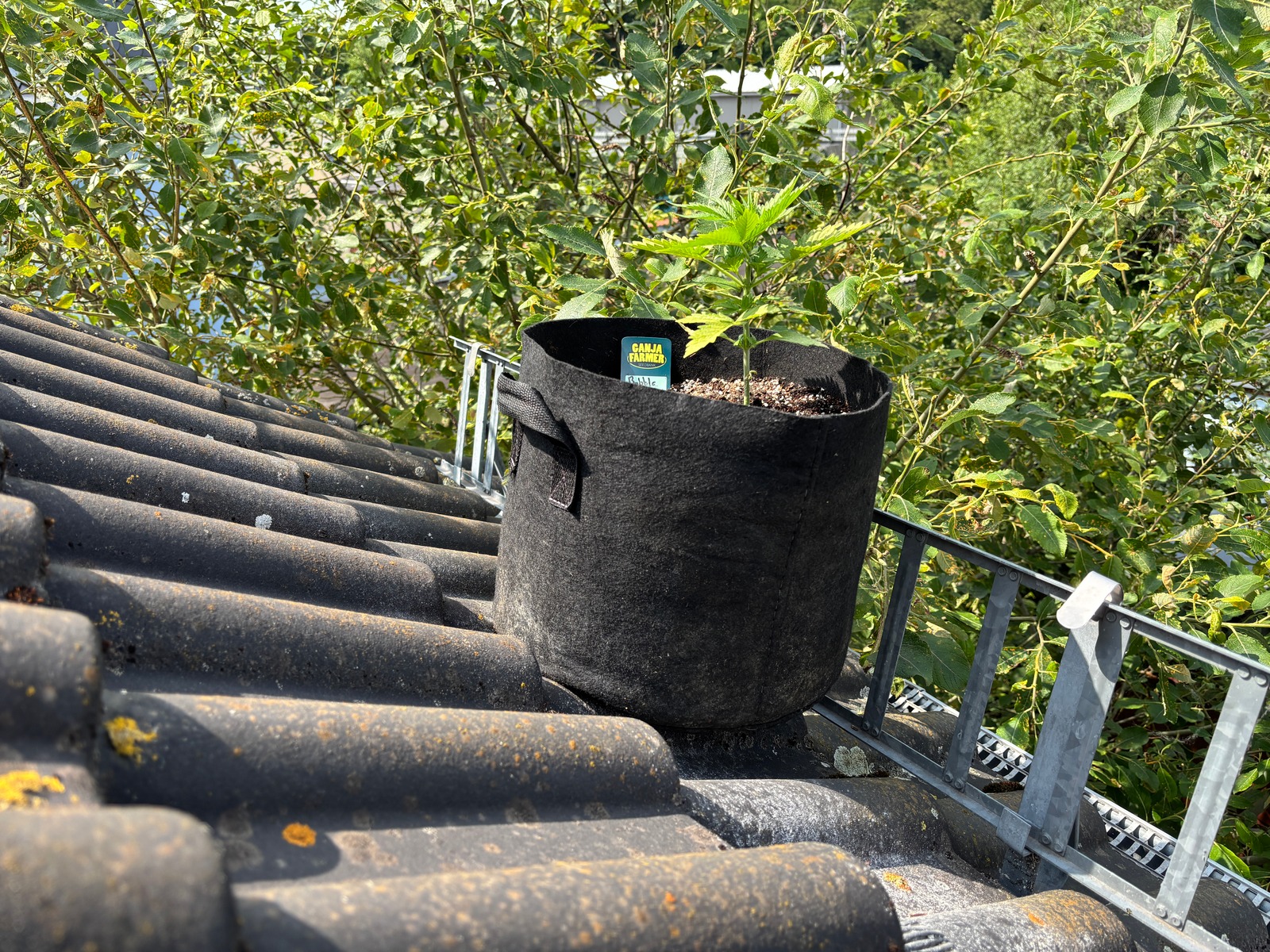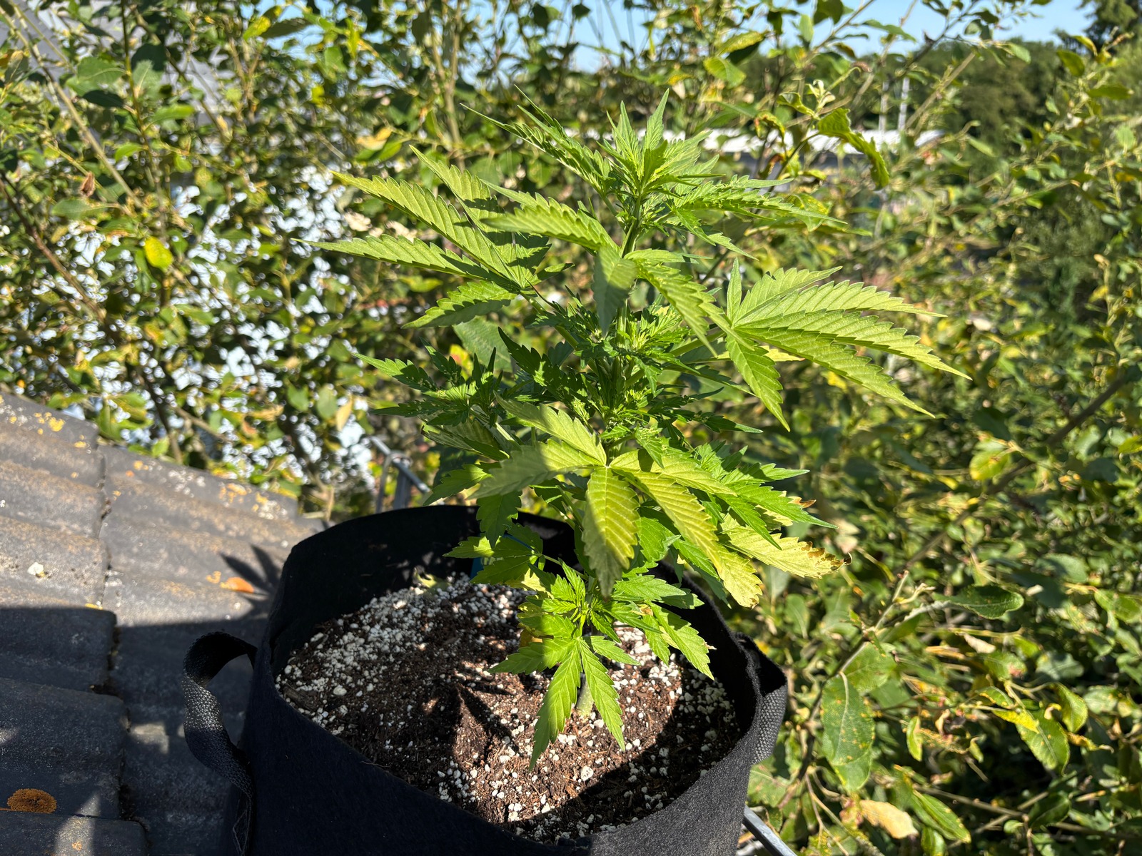 So langsam dürfte für Sie eine Änderung durch die dauerhafte Sonne ergeben. Das ist wie man sieht auch bitter nötig, anhand der gelben,verwässerten Blätter gut zu erkennen. Ich habe nur gezielt untem u. seitling am/im Topf etwas nachgefeuchtet, der Ballen müsste noch viel zu Nass sein. Etwas nachgefeuchtet weils einfach vom Spot her auch gefährlich werden kann aufgrund der Hitze auf dem Dach, durch die direkte Berührung mit den Ziegeln. Verhältnismässig aufs Wetter (Vorraussetzung Sonne) bezogen vorsichtig mit dem Gießen umgehen, zumindest so lange Sie noch die feuchte der letzten Wochen "abschüttelt" Da ist leider viel Schief gelaufen, auch schon im Vorfeld, durch die schlechte Keimung, leider war das Seed Nr. 3, also kommt als nächstes wieder ein von mir geliebter Sweet Seed (Gelato), als Auto. 👌✌️🌞