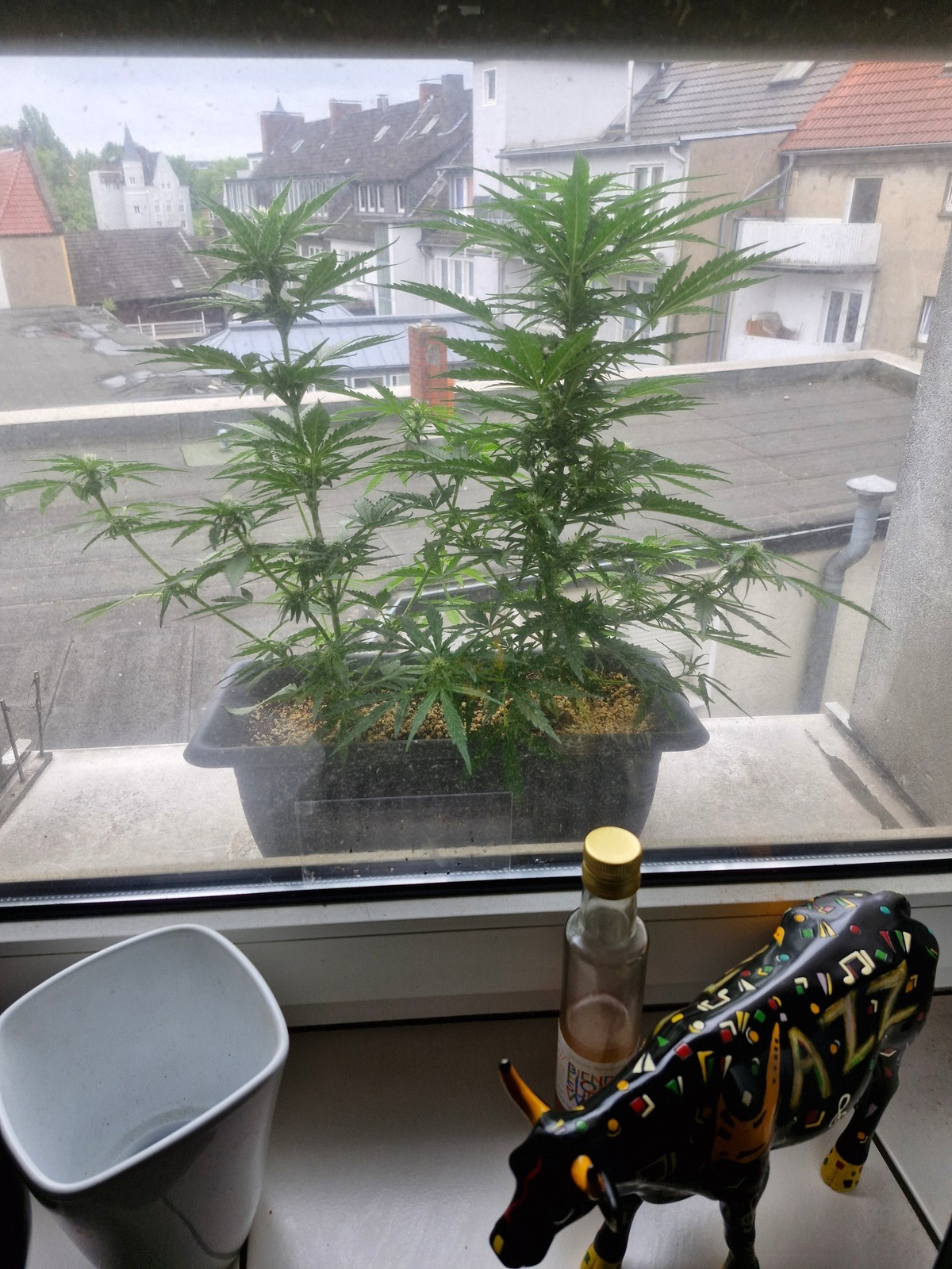 Okay, falls ich mal was verschenken möchte...😃👌 Ansonsten war der Plant die so 2 Wochen jetzt aufm Brett stehen zu lassen und dann kommt die direkt raus, an dem Tag wo ich umtopfe, denn der 18 Liter topf hat da keine Platz mehr, die Anfangszeit hoffe ich mal das es die nächsten Tage Sonne hat, das brutzelt da verhältnismässig echt gut hin, ist wie gesagt ein Dachfenster, das ist ja was ganz anderes wie sonst n normales Fensterbrett. Wird schon passen, Ertragsmässig wirds 50g schon packen 😁