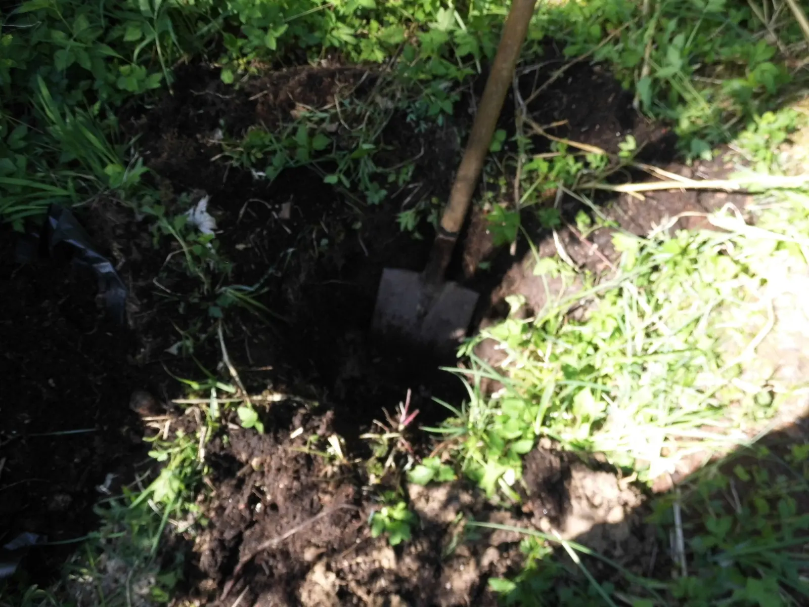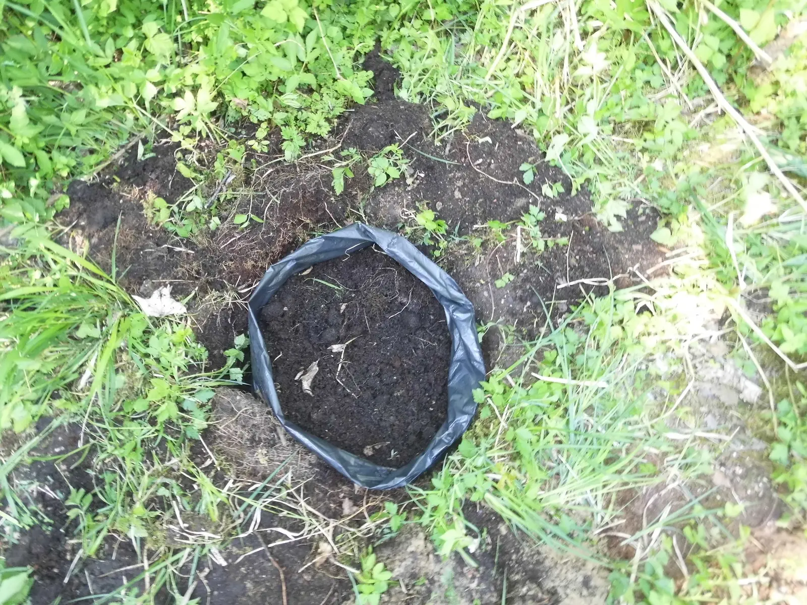 Die Grassoden mit den Wurzeln nach oben, zu einem kleinen Haufen aufschichten. Blos zwei oder drei Lagen davon. Über kniehoch muss der nicht werden. Dann ist die Plant aus der Krautschicht raus und hat zum Start immer volle Sonne, selbst wenn das Gelände ringsum zuwächst.