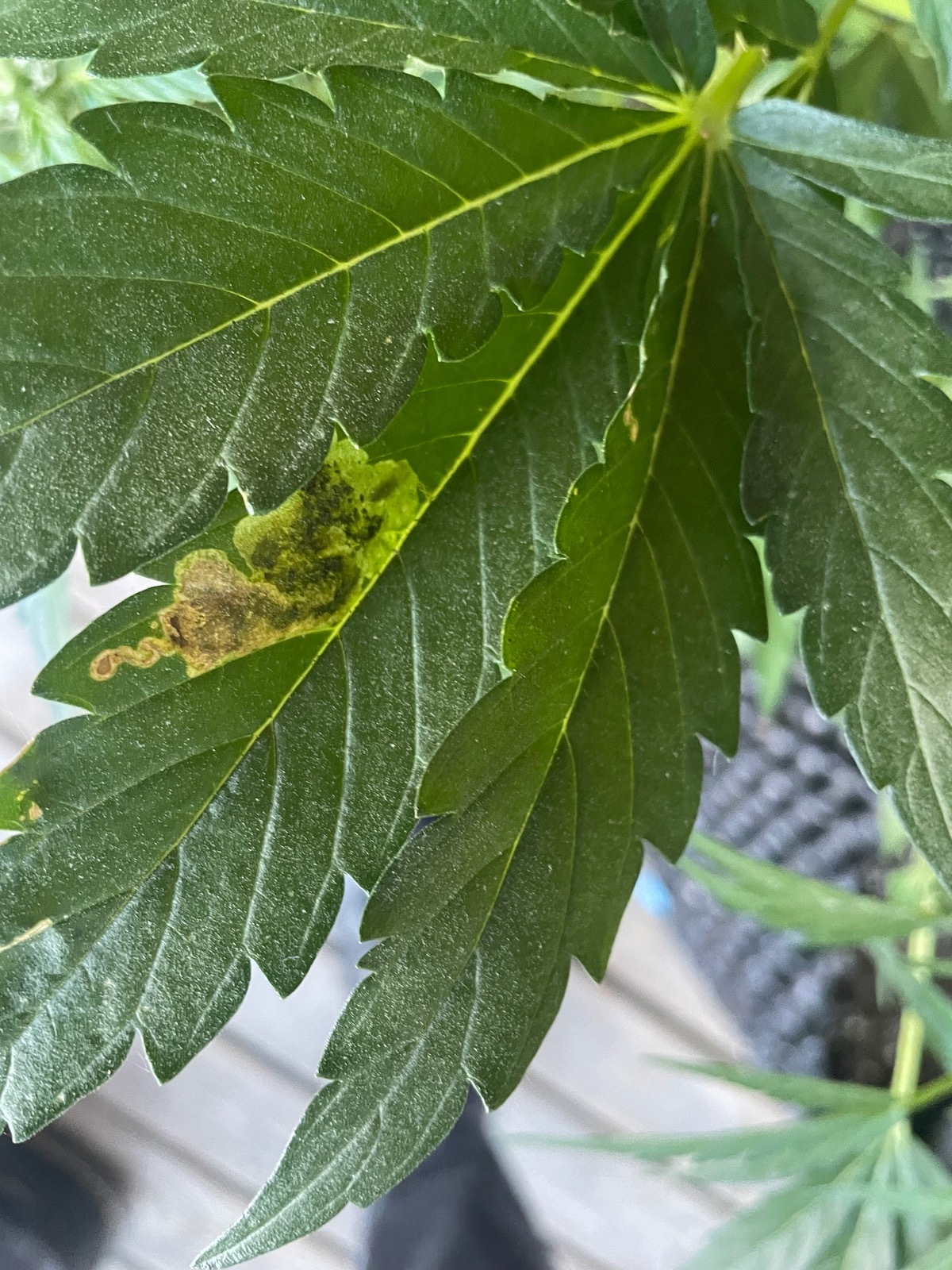 Hi, ich wollt mal fragen ob jemand von euch einschätzen kann, worum es sich hierbei handelt. Die Pflanze ist bereits Anfang der Blüte- besitze noch ein zweites Exemplar derselben Genetik- allerdings ist diese noch nichtmal wirklich in der Vorblüte angekommen und sieht eher nach wachstumsphase aus. Beide wurden gleich behandelt und die andere hat keine derartigen Verfärbungen- ist da was bedenkliches dran?