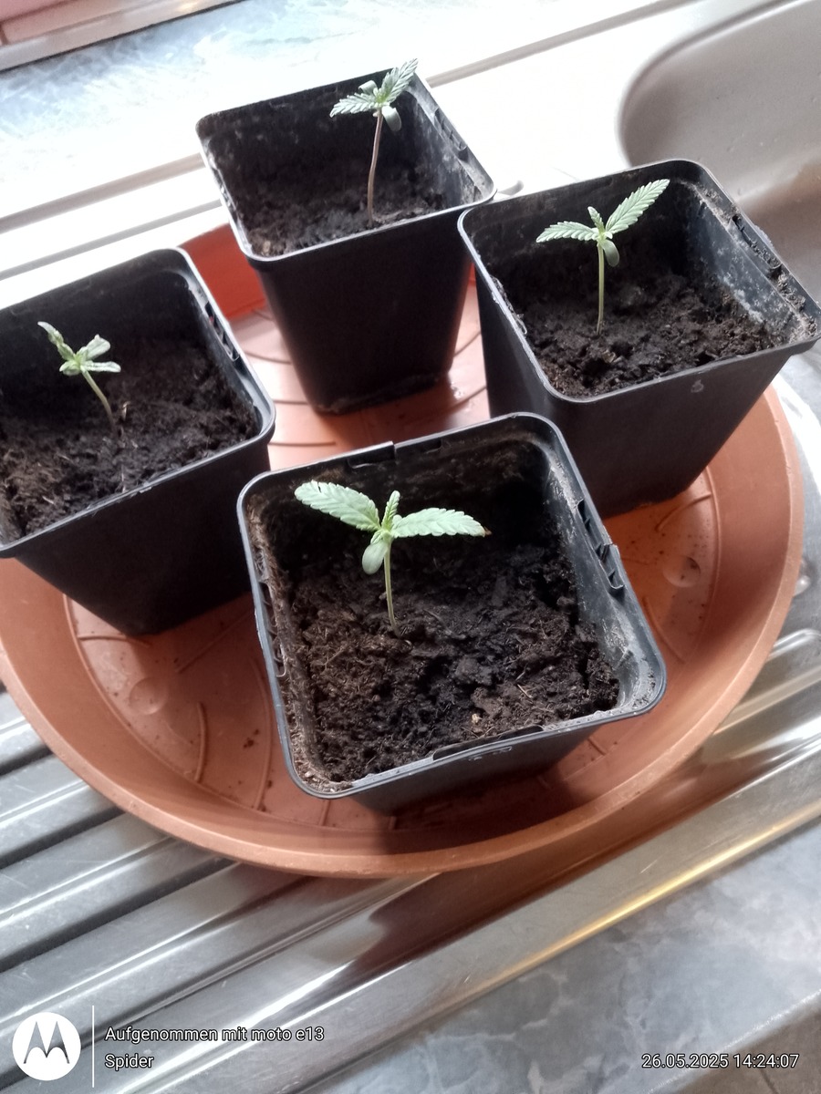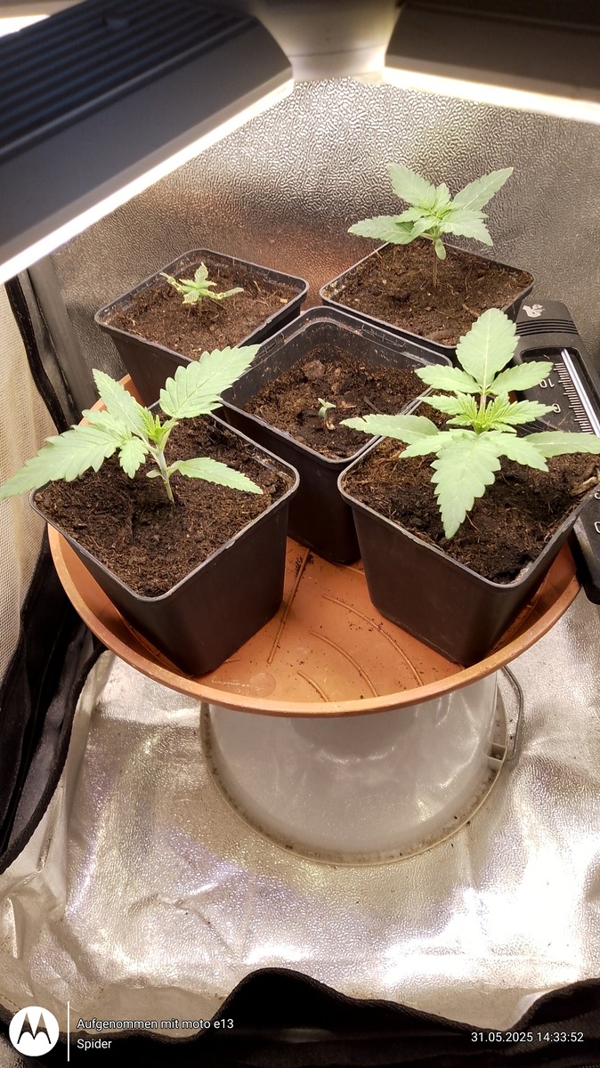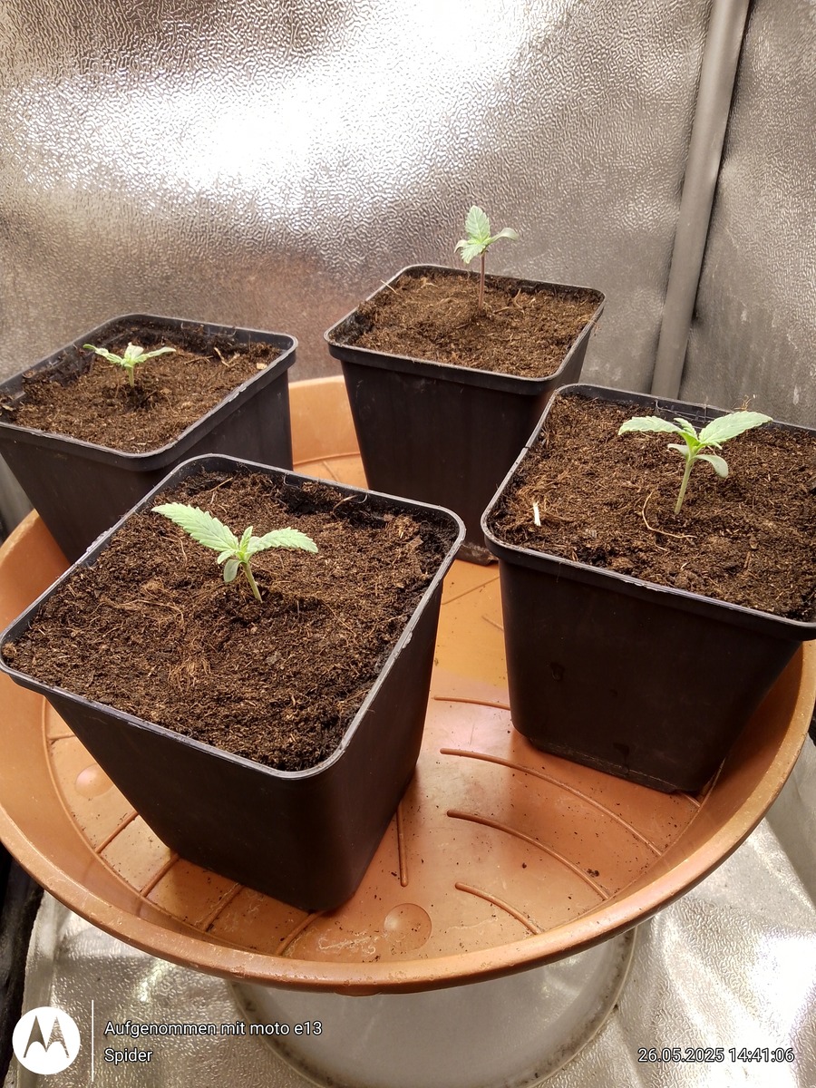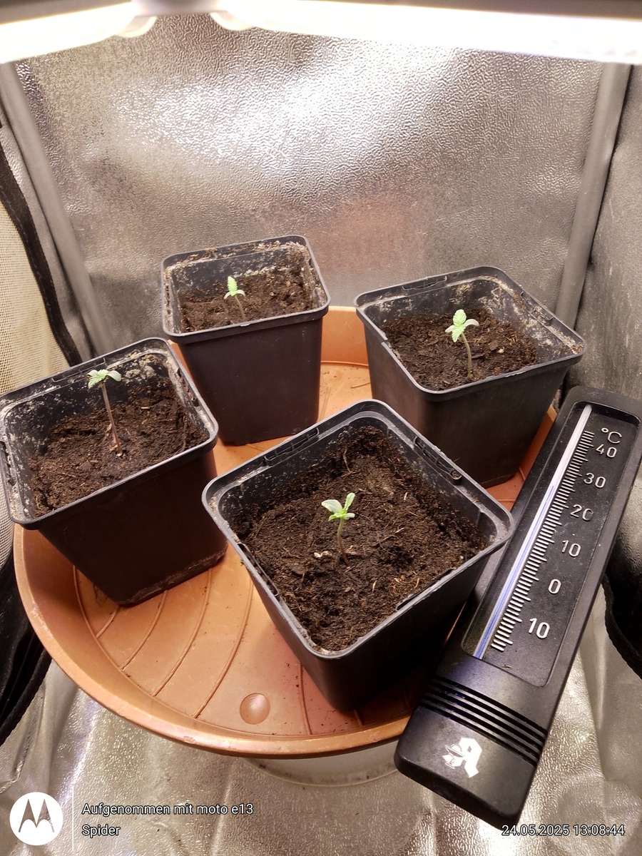 Ich mache die Anzuchttöpfe nie ganz voll weil Seedplants immer etwas spargeln / Hanf ist ja kein Bodendecker 🌮 . So sieht's dann aus....