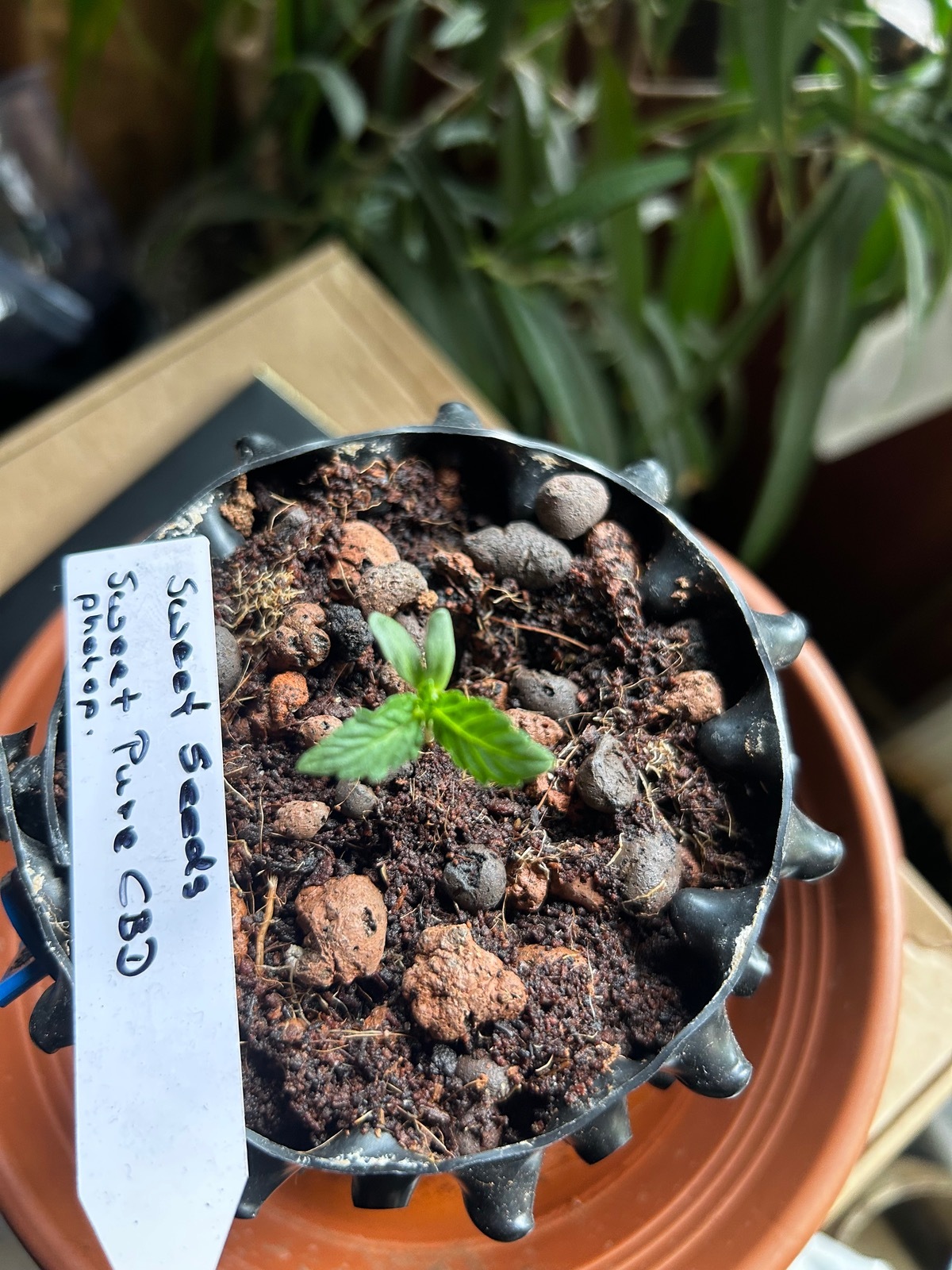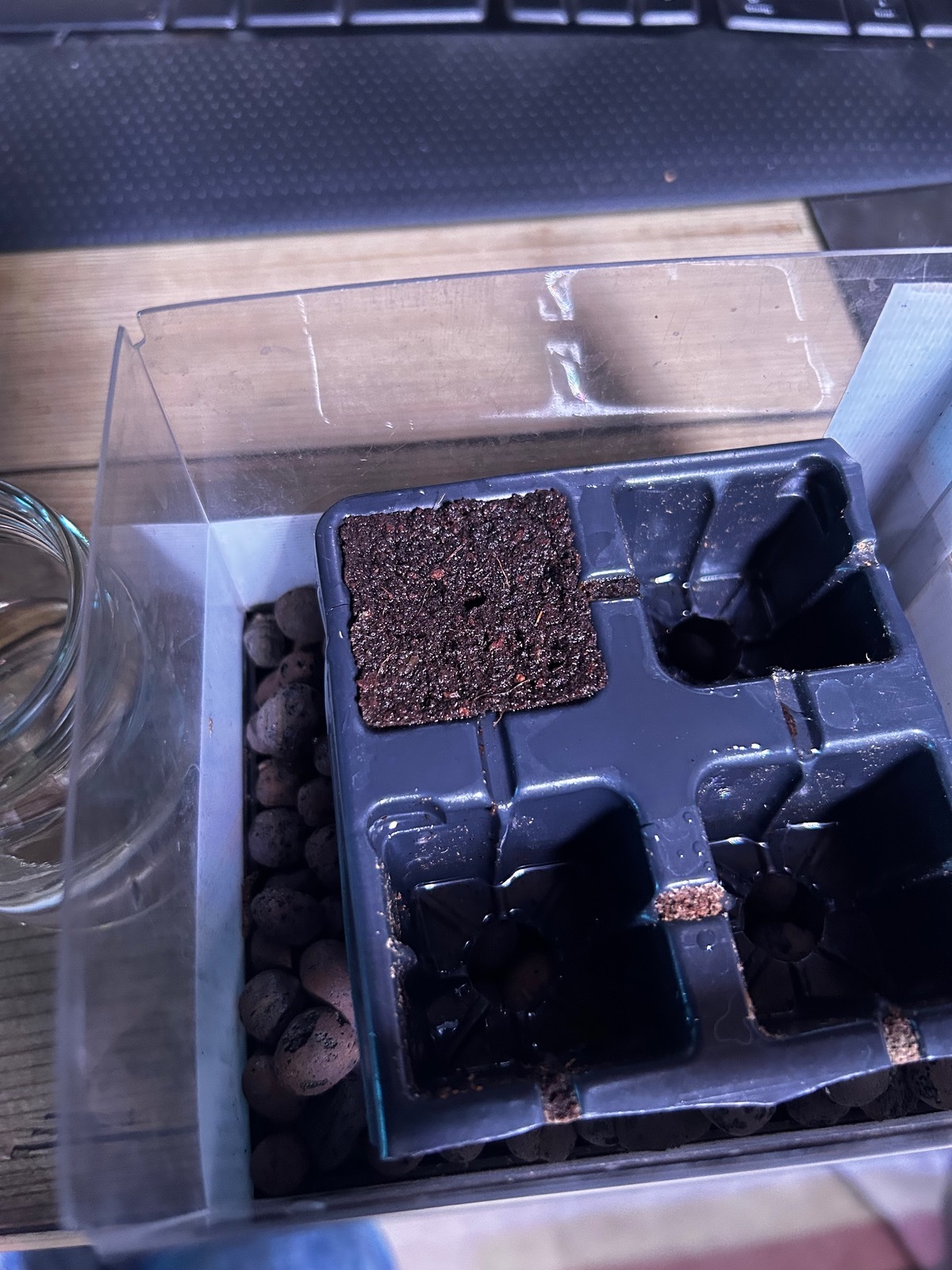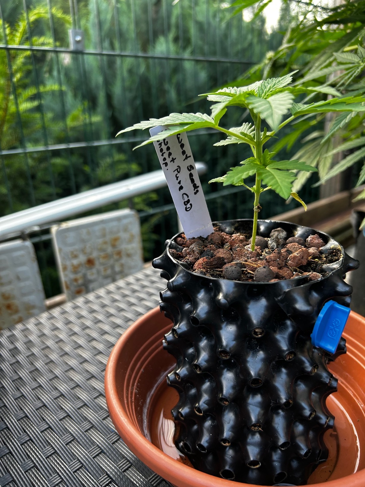 Heute Abend kam erst in destilliertes Wasser, dann in nen gewässerten Eazyplug, der letzte SweetPureCBD-Seed.