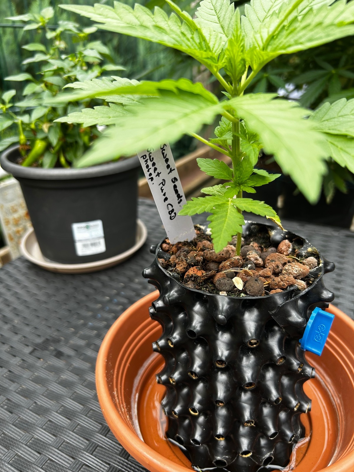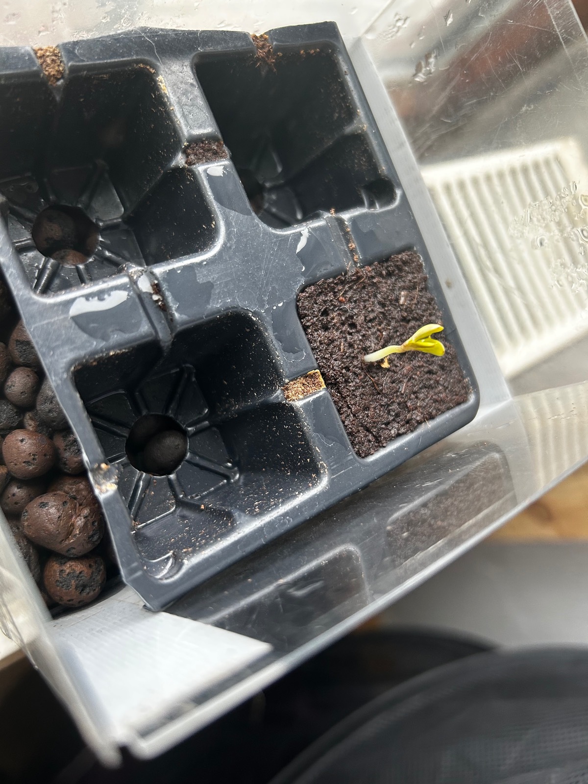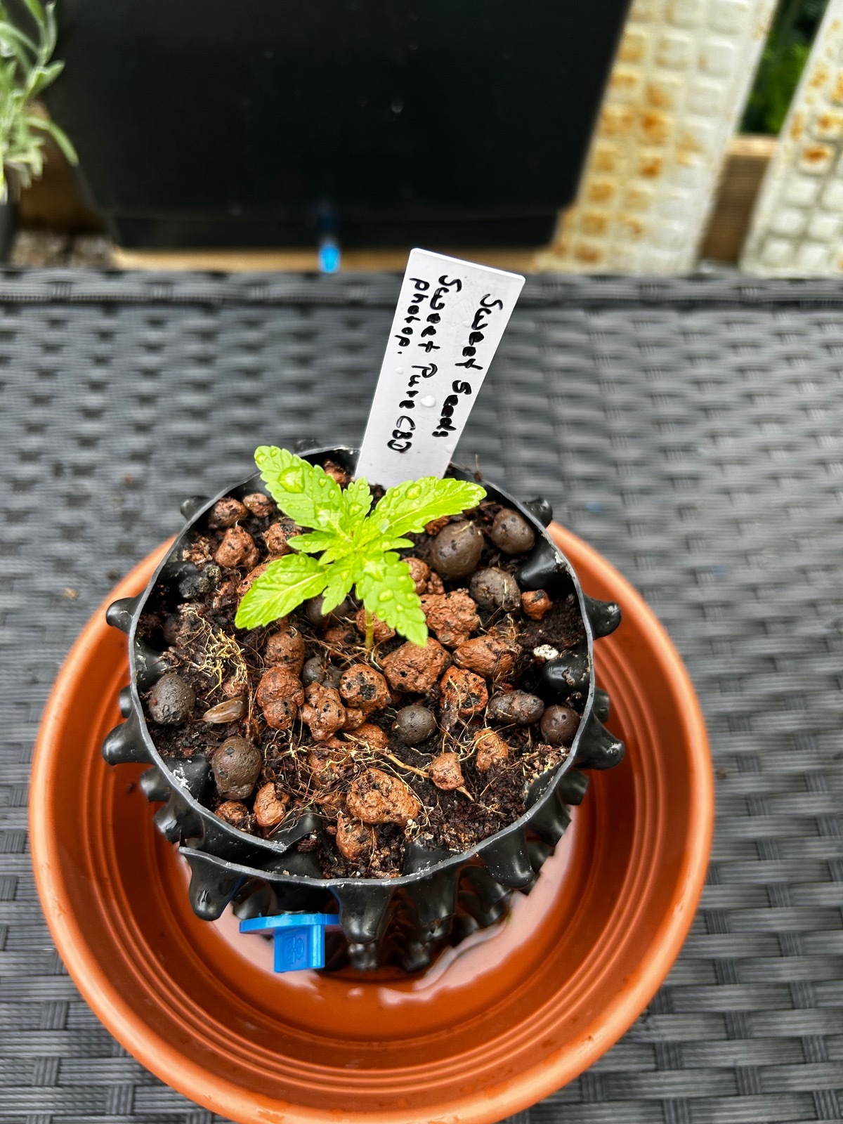 Heute Abend kam erst in destilliertes Wasser, dann in nen gewässerten Eazyplug, der letzte SweetPureCBD-Seed.