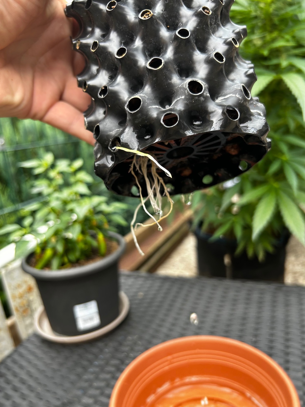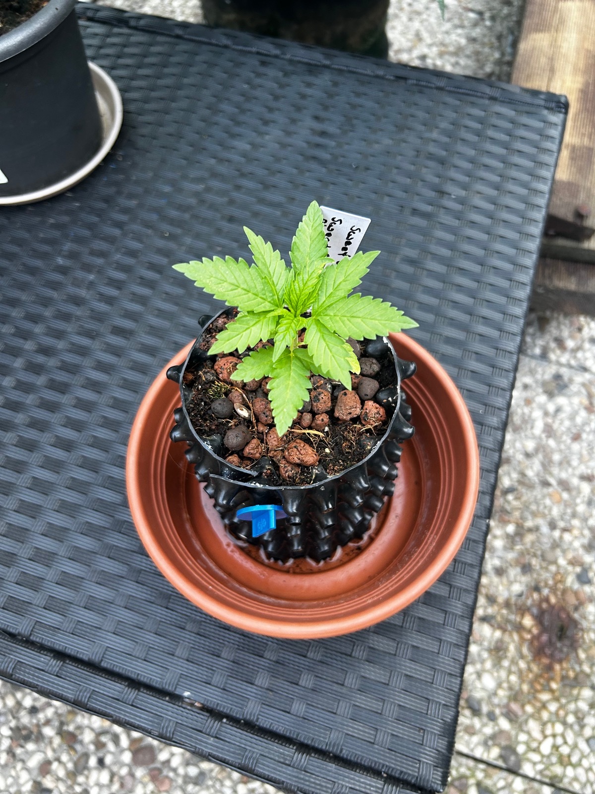 Zuerst, wie gesagt, Eazyplug, anschließend 1L-Airroottopf mit cocos. Als Endpot ist der 20L-Smartpot von Autopot mit 50/50 Cocos/Blähton geplant. Der Strombedarf ist bei Null, keine Heizmatte etc.