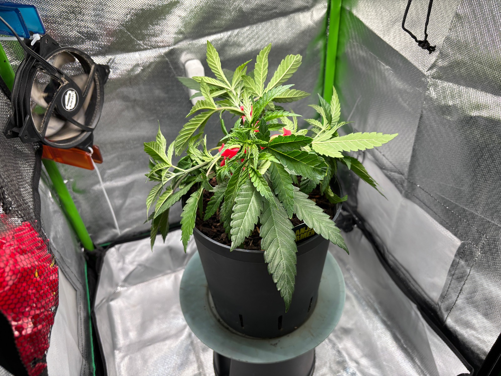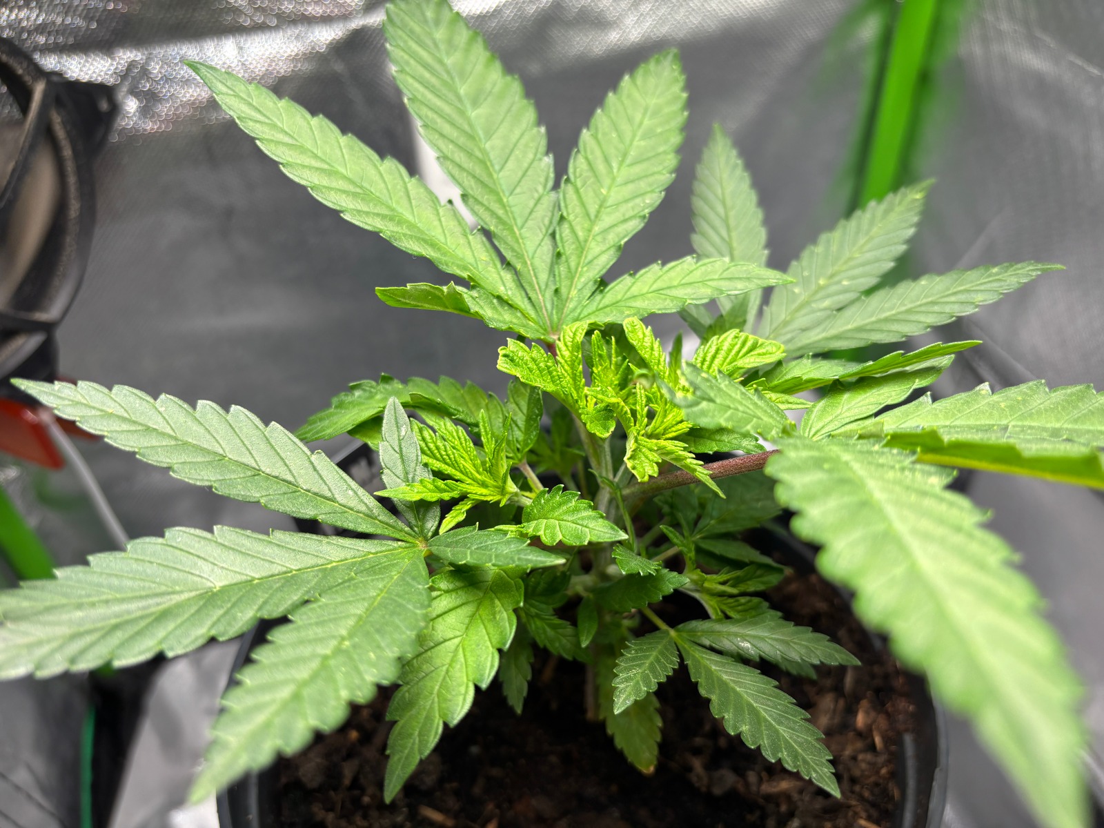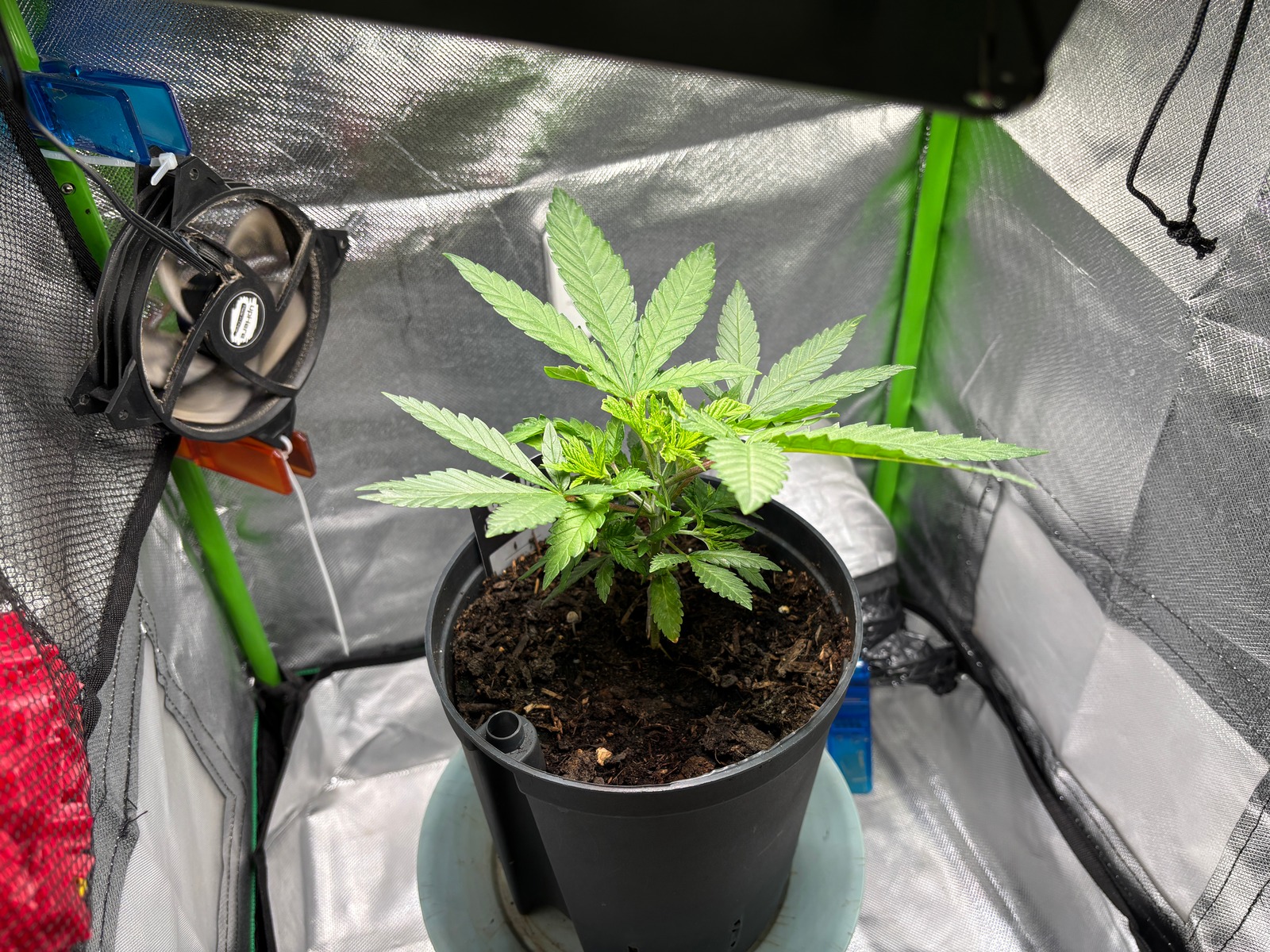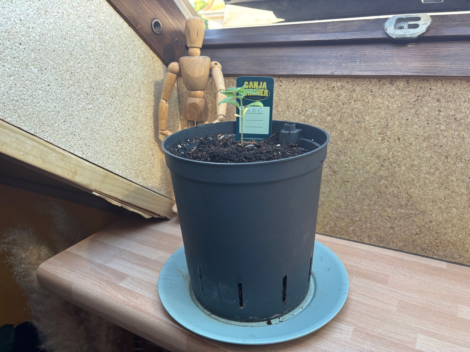 Unterentwickelt in nicht ganz optimaler Keimungserde nun in 2,5 Liter Topf mit Compo Sana Qualitätsblumenerde, was wohl nun meine Standarterde werden wird, aufgrund versch. Begebenheiten in der Vegi Phase in meinem n 2 Zelte System, Nährstoffmängeln, die ab sofort Geschichte sein dürften, denn ab der Umstellung auf 12/12 gibt es ja dann die Hesi - Versorgung. 🪴👍