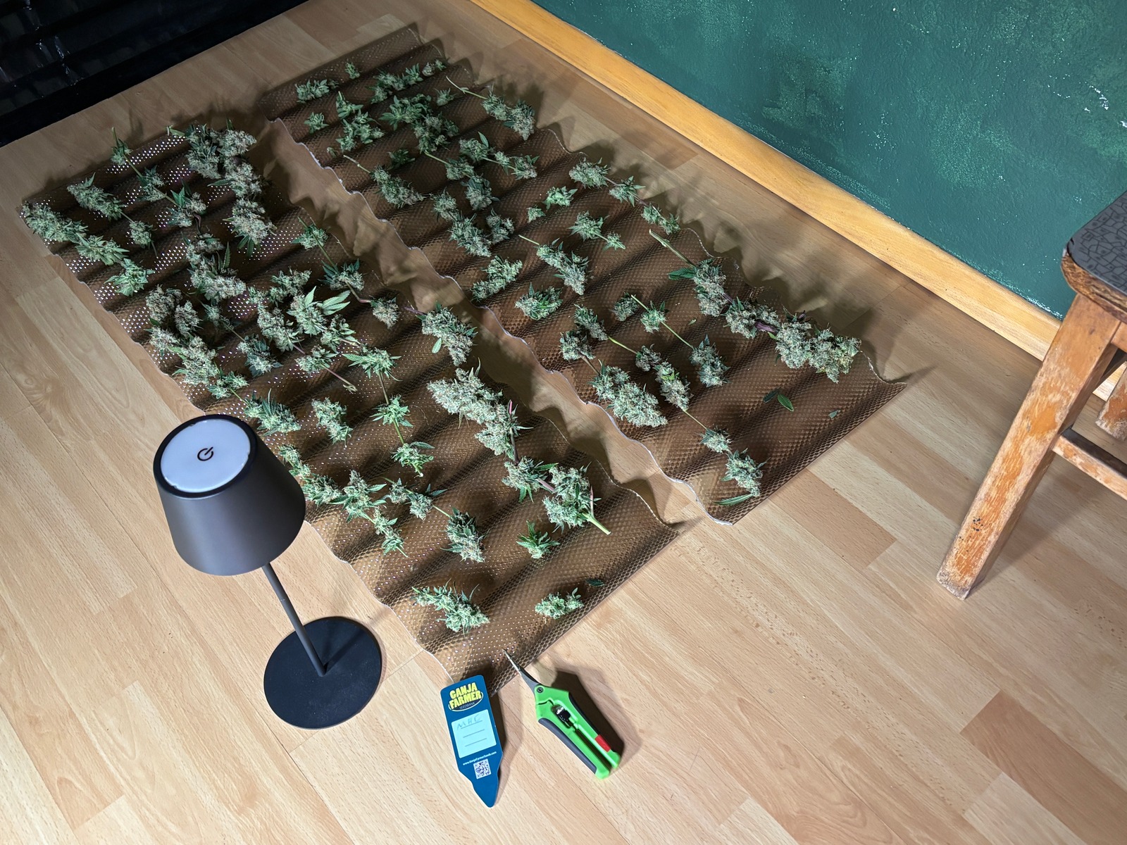 Echt ärgerlich.🤬 Sehr schöne saftige Budstruktur und leider wie beim Vorgänger damals auch Schimmel. Ich denke es waren ca. 15 Gramm (trocken gerechnet) evtl. auch ein bischen mehr. Die Bude wurde mit chlorix gewienert und jetzt muss ich schauen ob ich die Monster Maker direkt rüber holen. 🤷♂️ Leider war es nicht möglich die Pflanze im ganzen aufzuhängen, dass wäre mir zu riskant gewesen. So lass ichs nun 5-7 Tage dann kommts direkt in die Gläser.