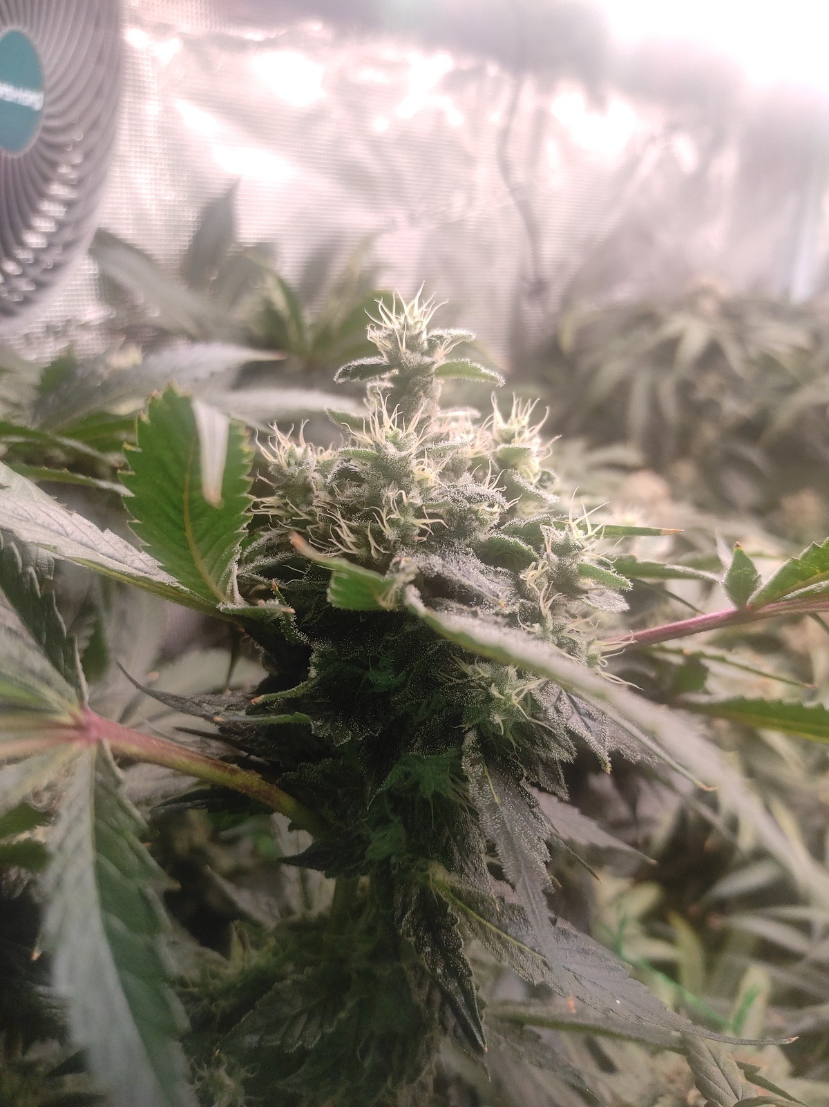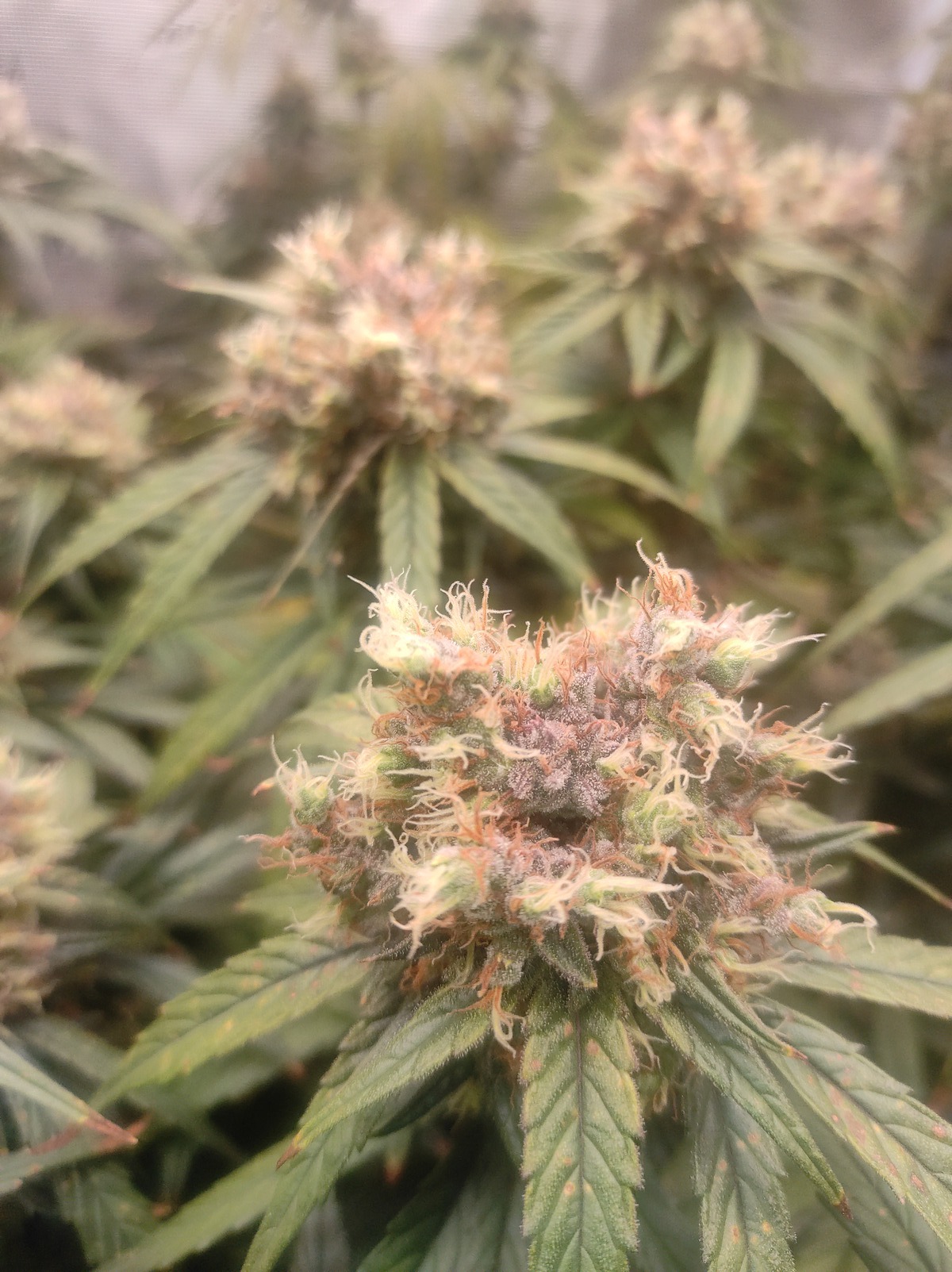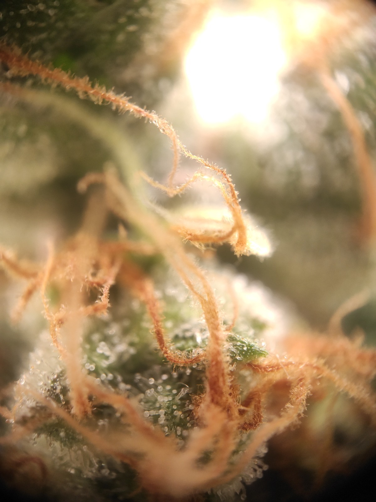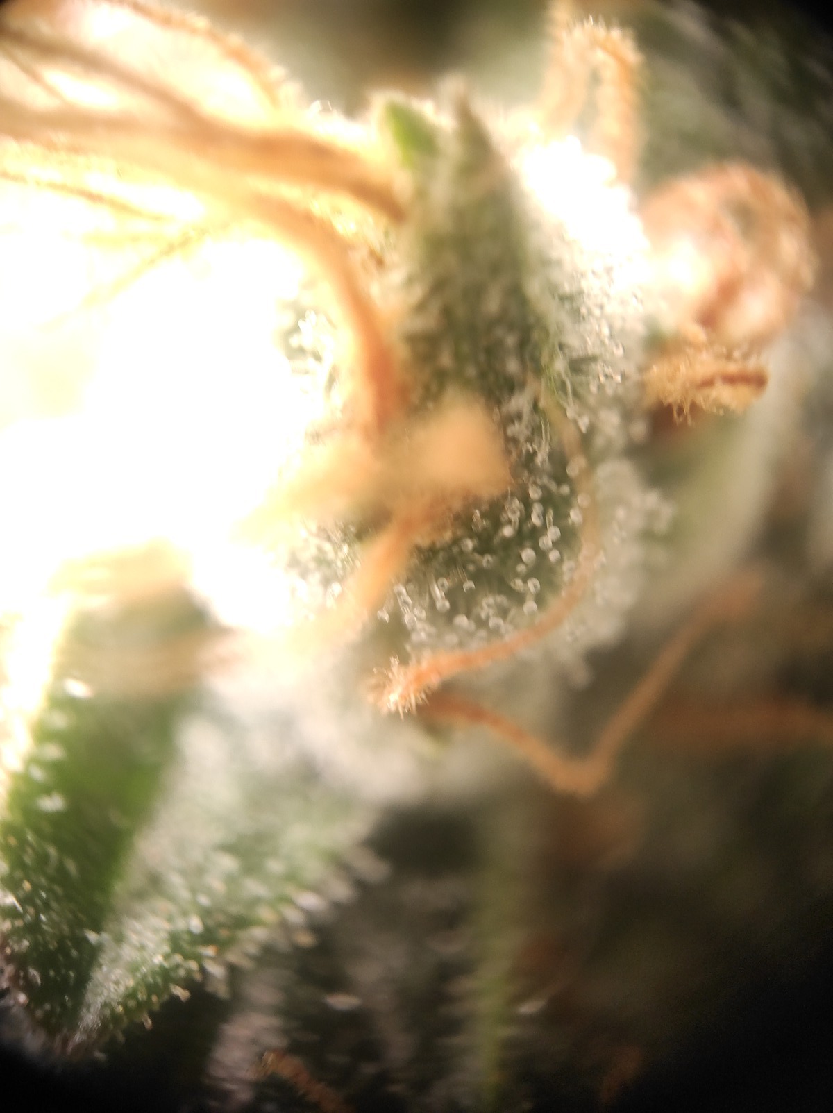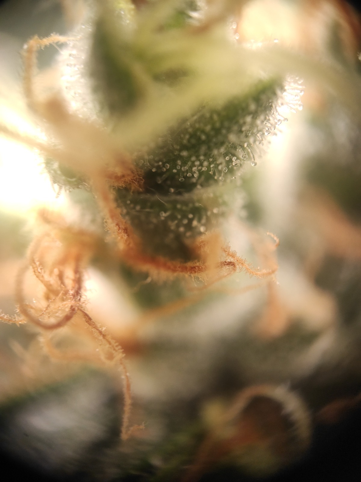 Ist noch bisschen weiss aber die Trichome sagen lets Go, liegt wahrscheinlich auch bisschen am Foxtailing...