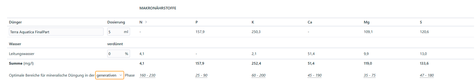 Intressante hohe Werte vor allem beim Magnesium :D Der Rest ist ja absichtlich überdosiert.