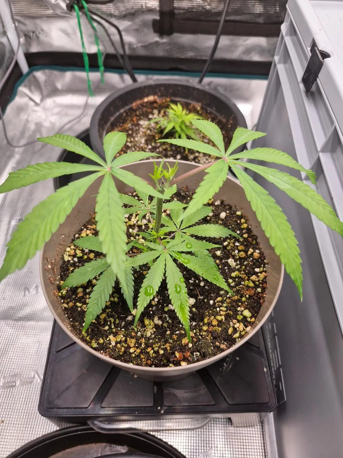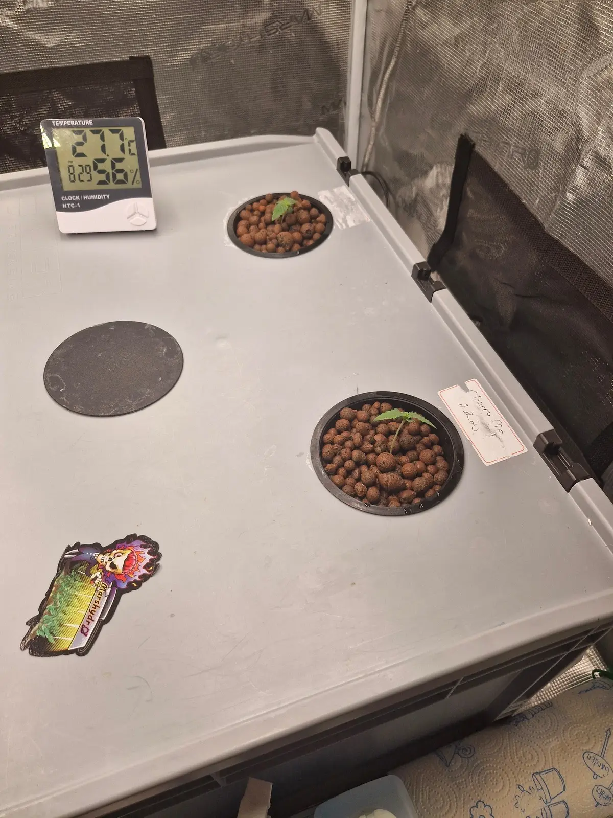 Die beiden Kleinen aus Seeds sind erst ein paar Tage alt, hatten aber schon einigermaßen Wurzeln gebildet und sind heute auch ins DWC eingezogen.