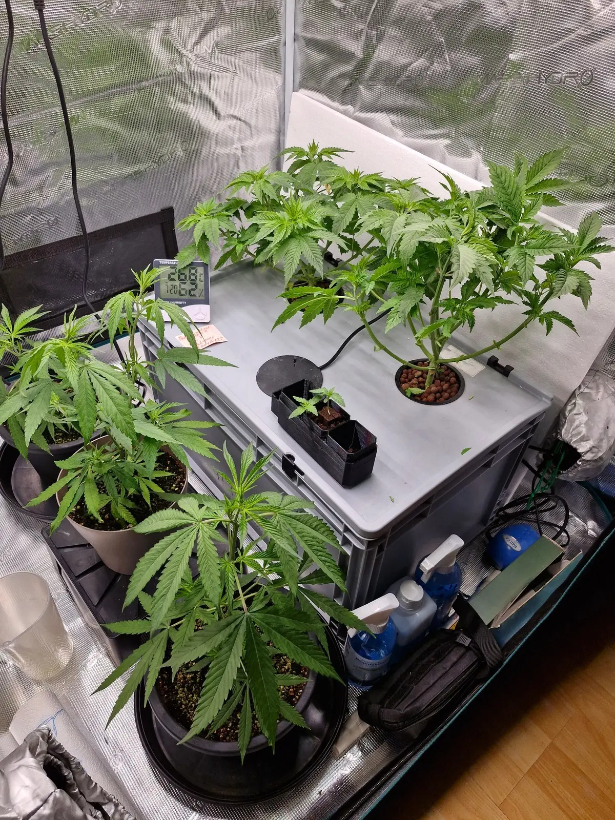 neue Runde, neues Glück? Na hoffentlich wird das was, denn bei den Temperaturen wird es mit DWC ohne Kühler evtl nicht klappen. Da ich aber derzeit zu geizig bin, mir einen neuen Kühler anzuschaffen und mir eh vor den Stromkosten graut , werde ich es mal ohne probieren. Muss dann mit H2O2 arbeiten und irgendwie manuell kühlen an den schlimmsten Tagen ( Kühlakkus zB). Zusätzlich werde ich vielleicht noch versuchen, die Box ordentlich zu isolieren.