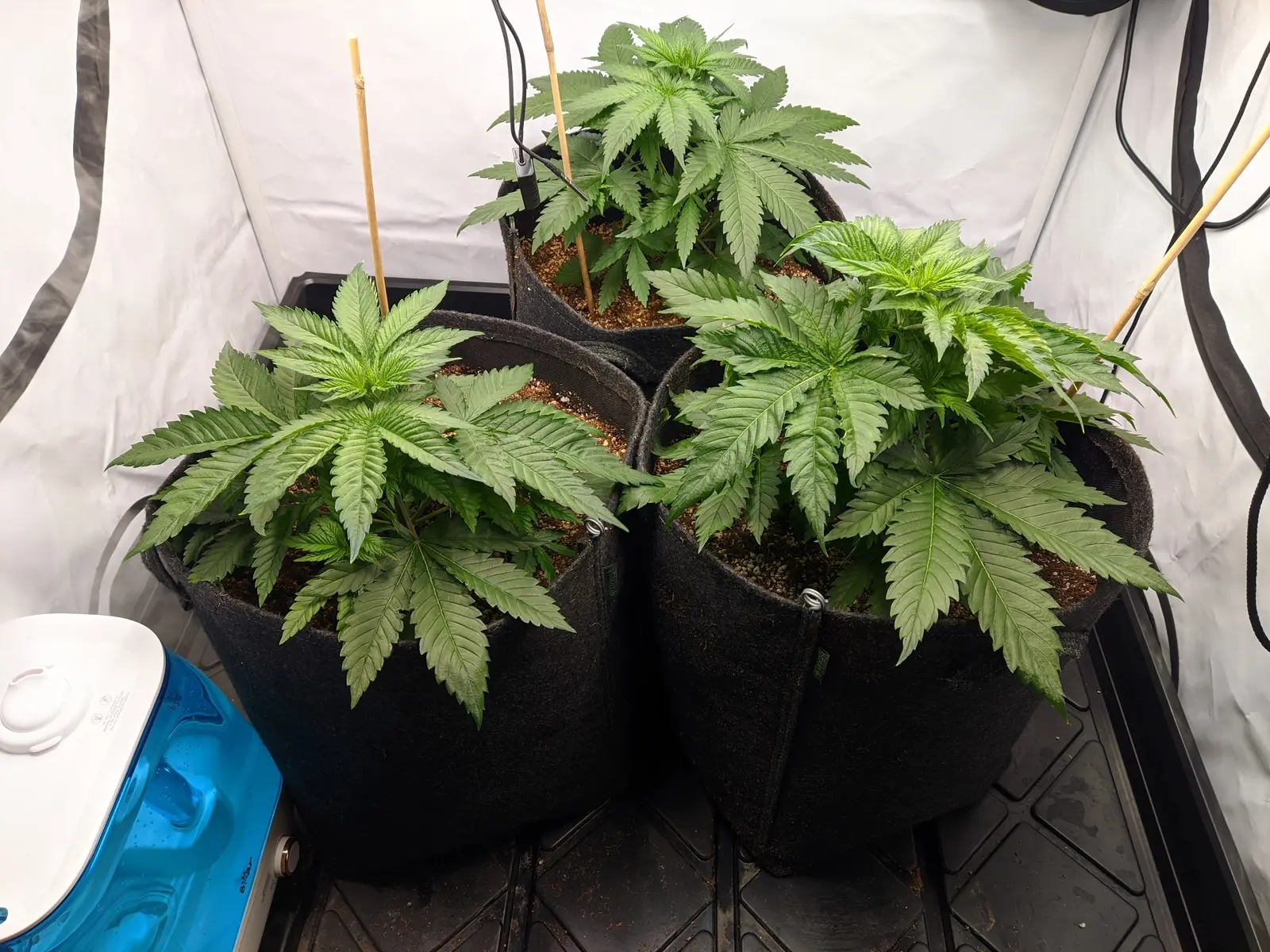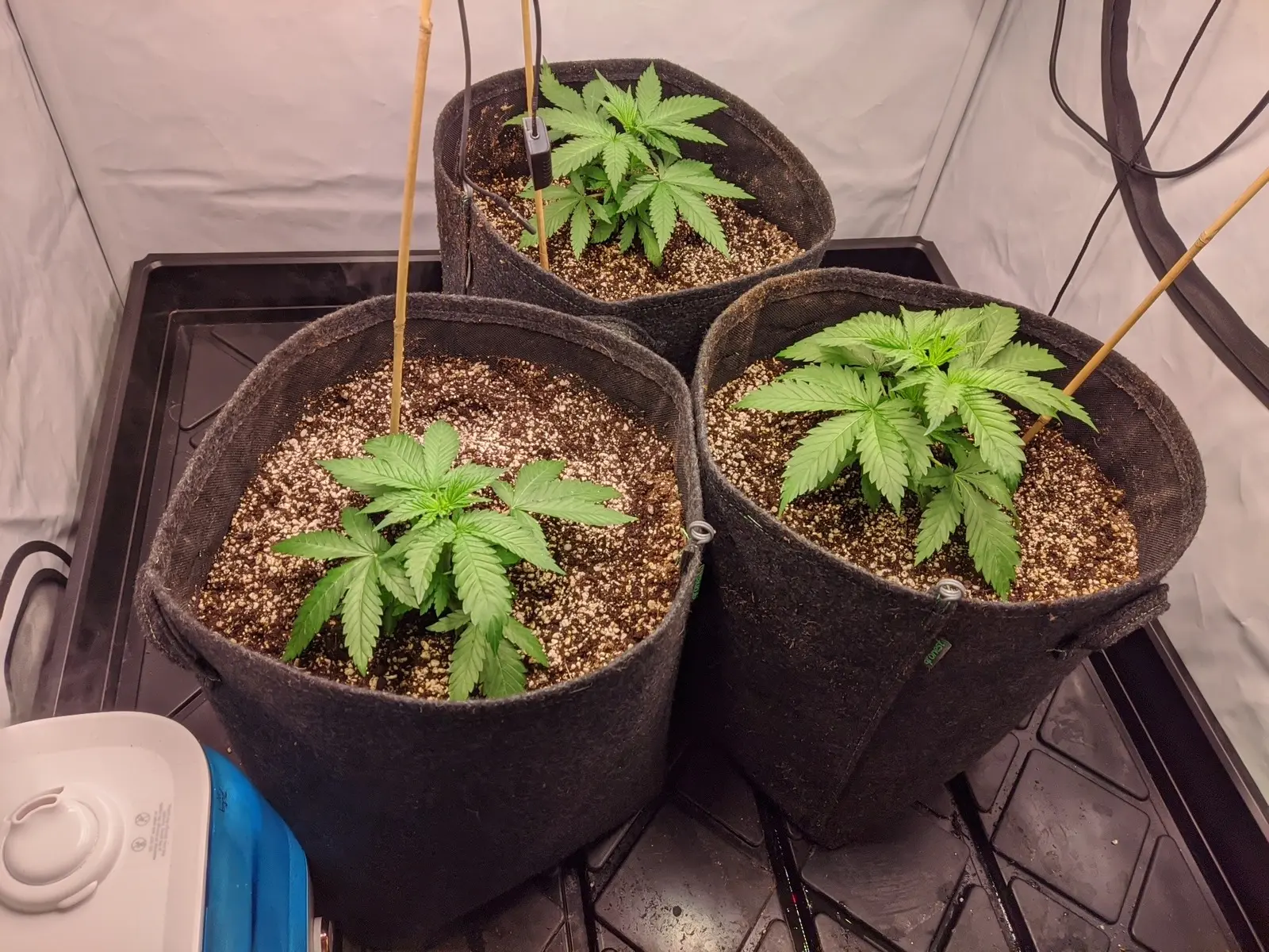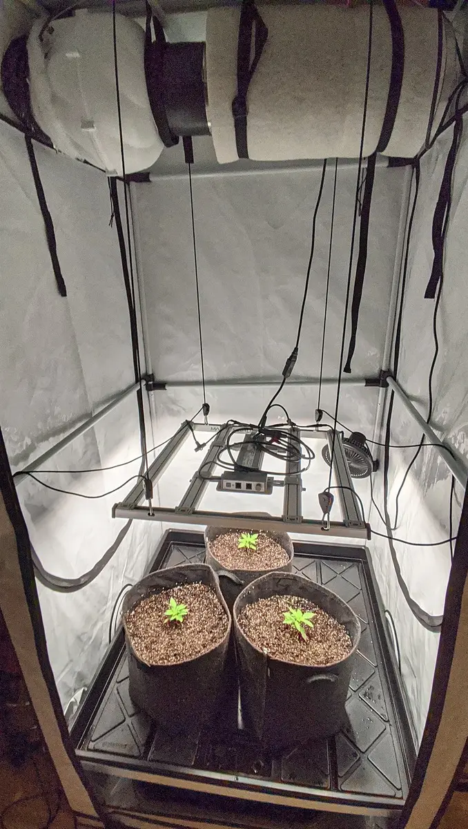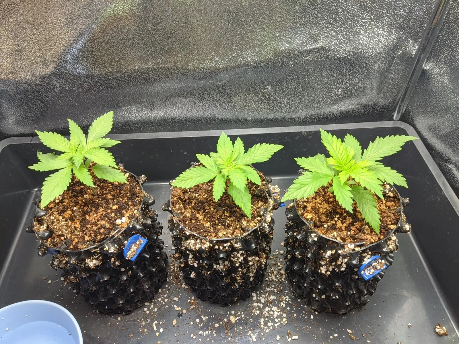 Und heute sind die dann umgezogen in 25L Gronest Stofftöpfe, beleuchtet wird weiterhin mit 20-25 DLI bei 24/0