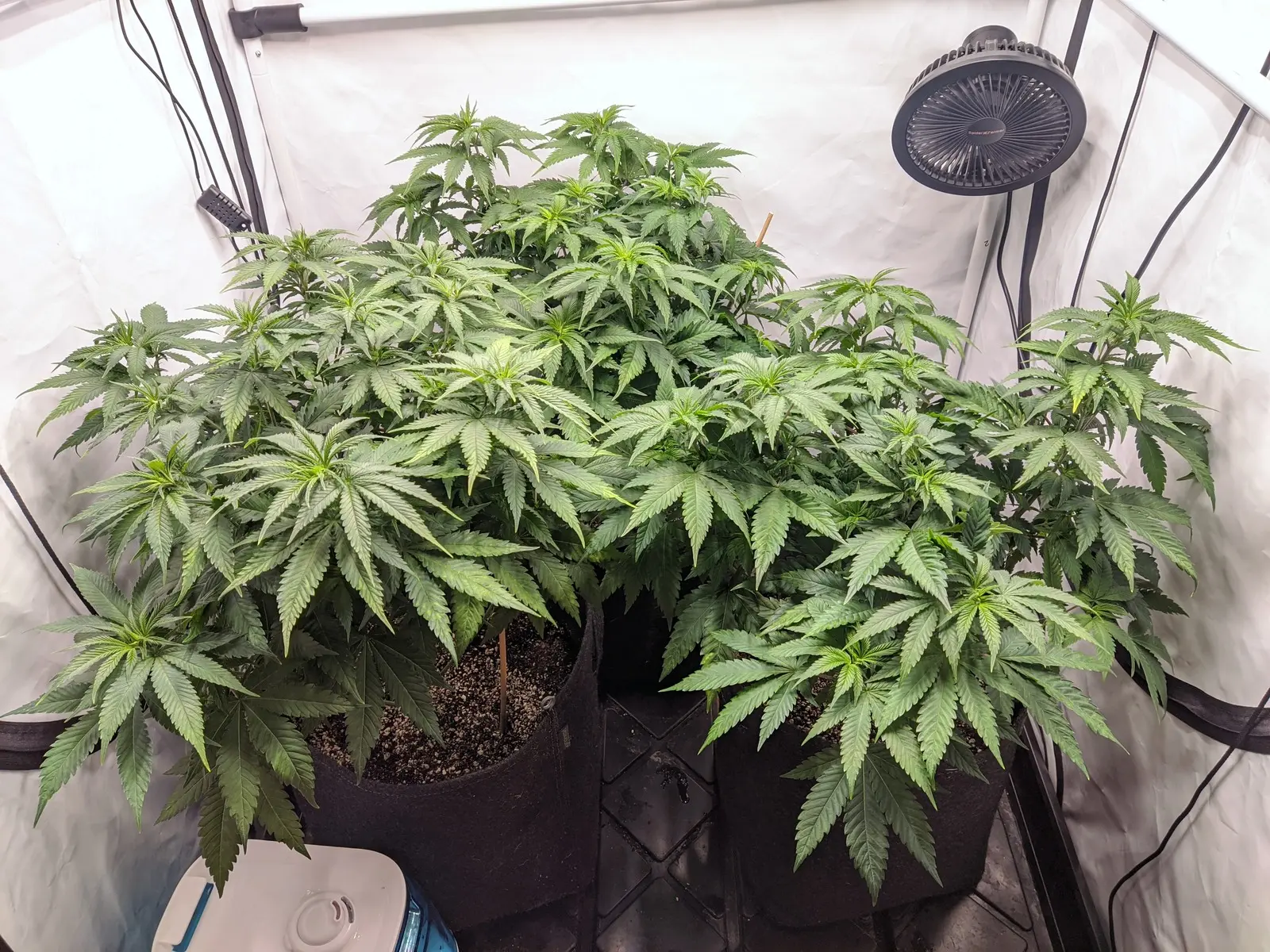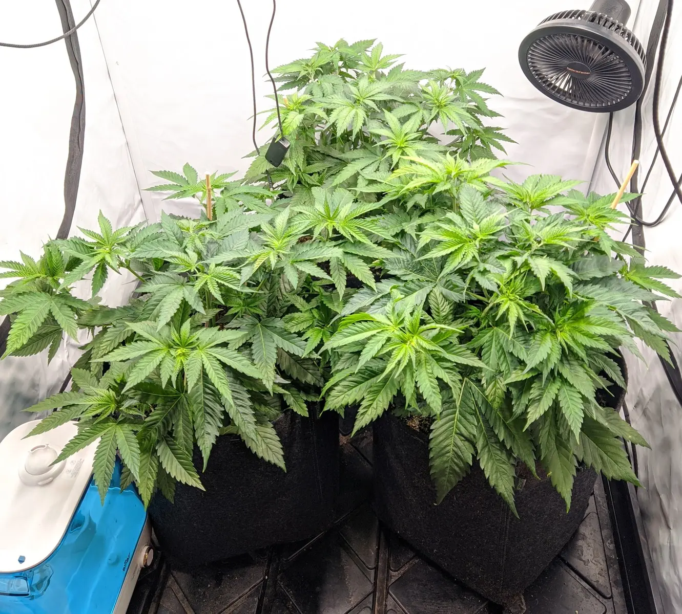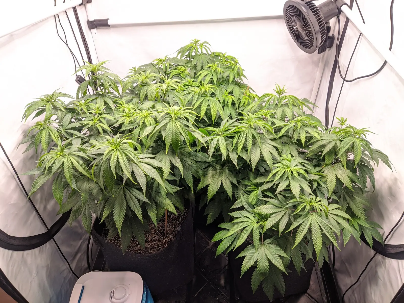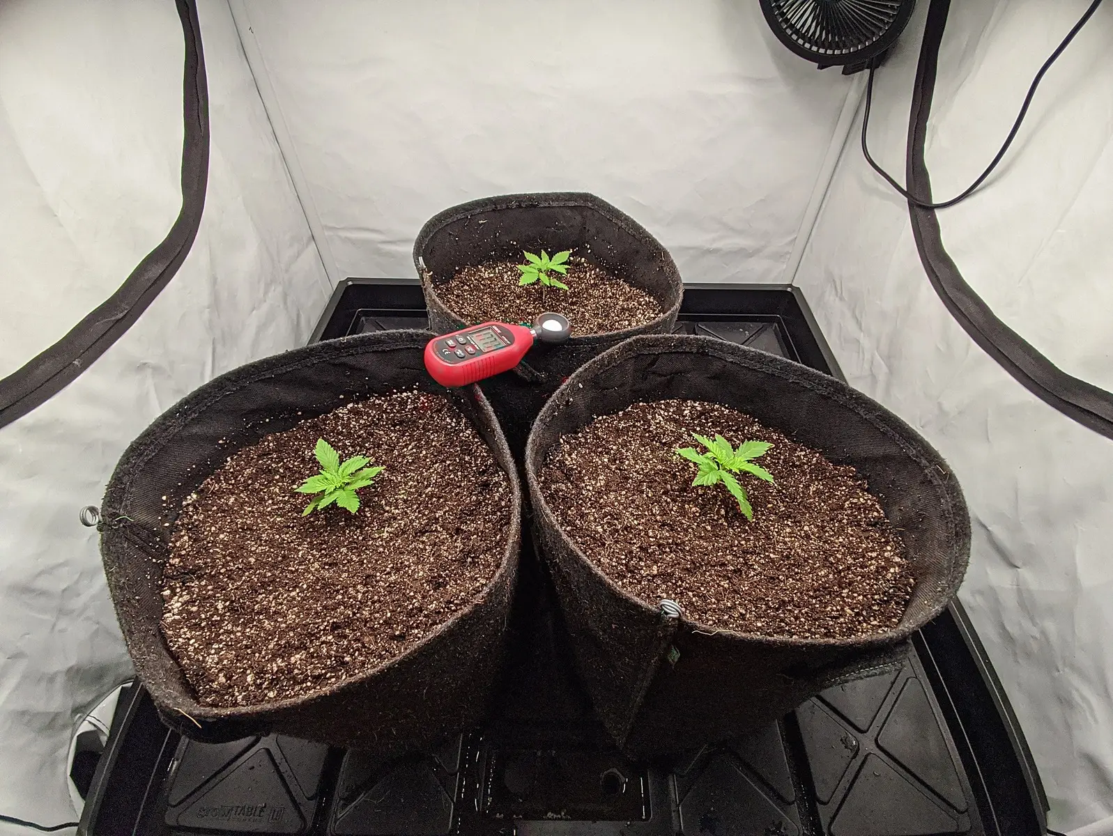 Und heute sind die dann umgezogen in 25L Gronest Stofftöpfe, beleuchtet wird weiterhin mit 20-25 DLI bei 24/0