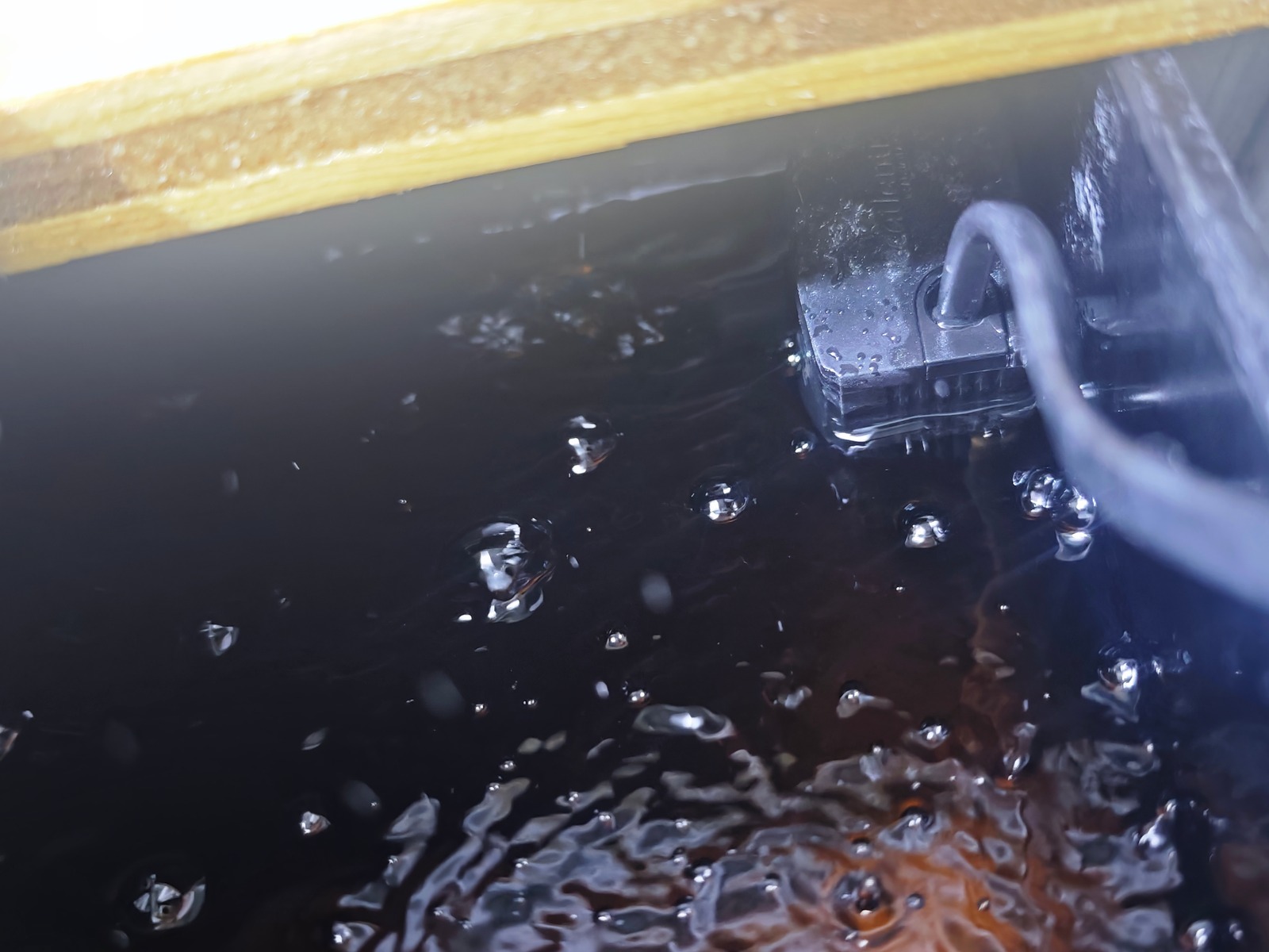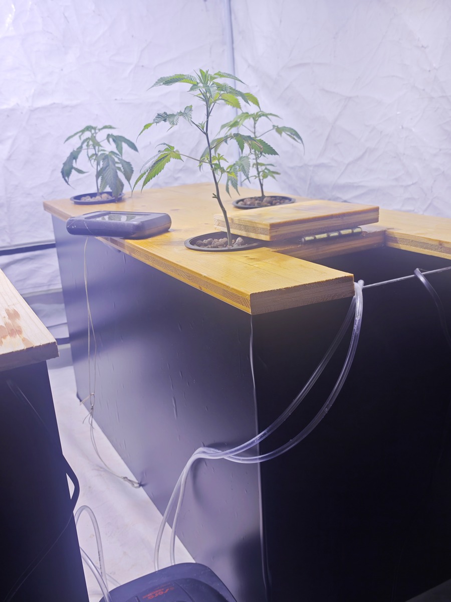 2 * UmwĂ€lzpumpen in den 120 Liter Becken .. dazu eine groĂe Sera Membranpumpe mit 400 l /h. GedĂŒngt wird mit Canna A+B