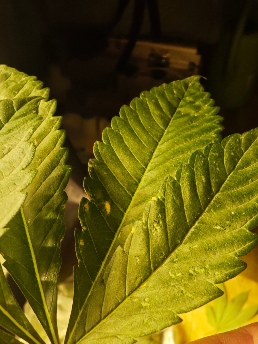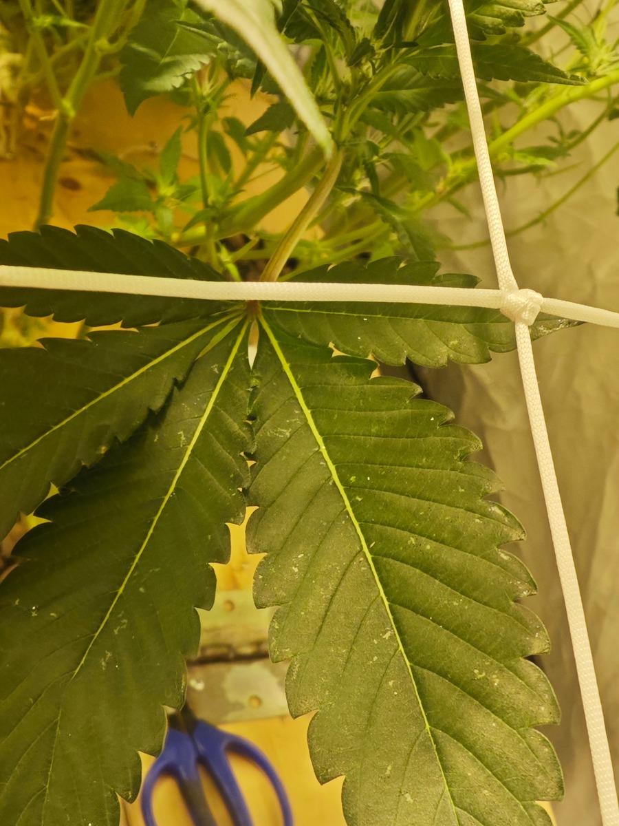 Hab erneut BlÀtter gezupft ... An den hinteren blÀttern, wo ich nicht richtig hinkommen hab ich ein paar BlÀtter runter die mir Sorgen machen ... Ich denke sind Spuren von Tripse.