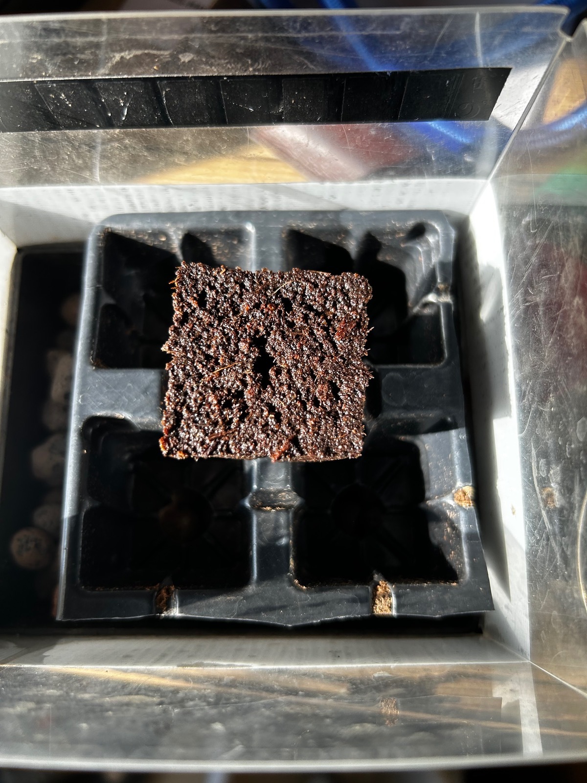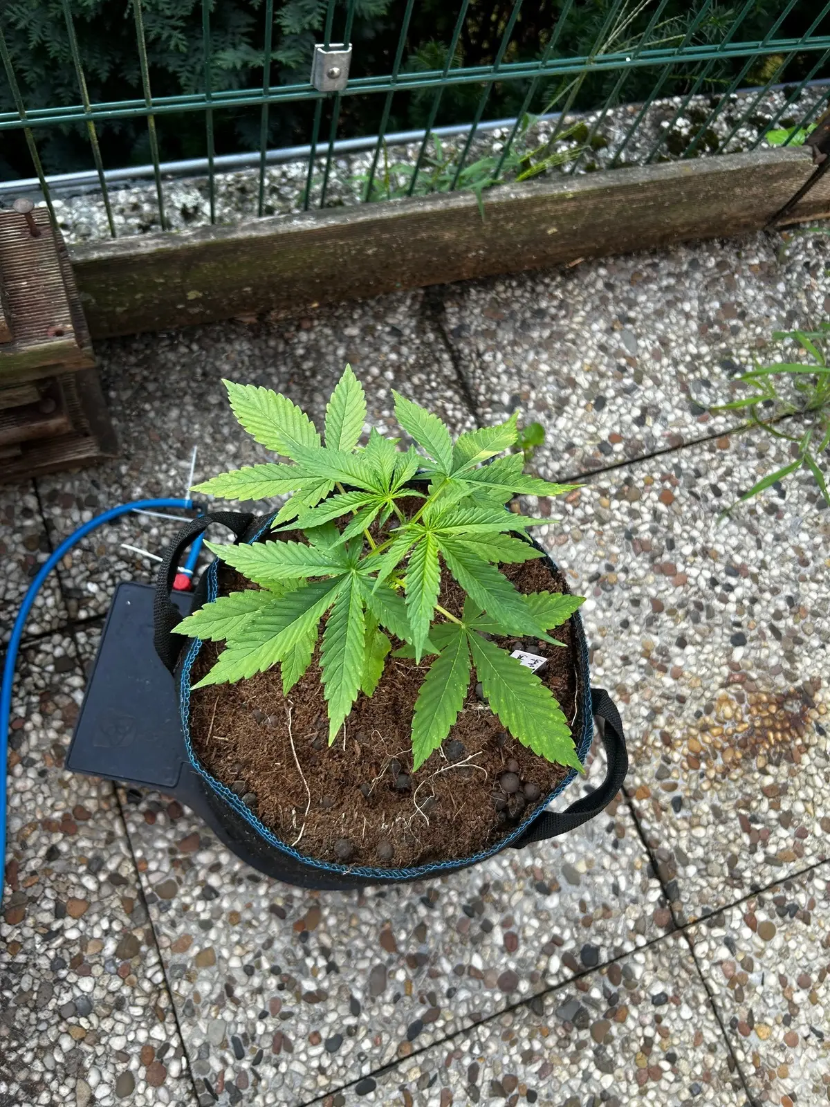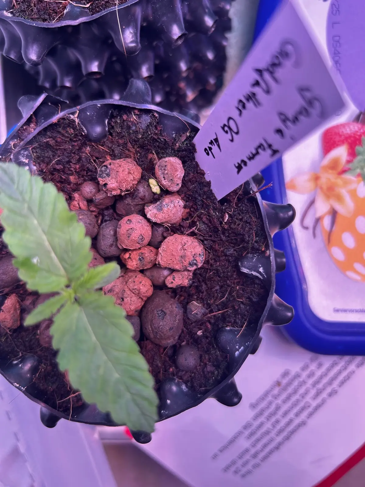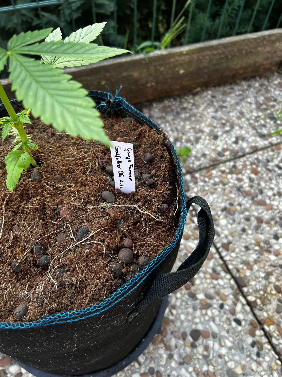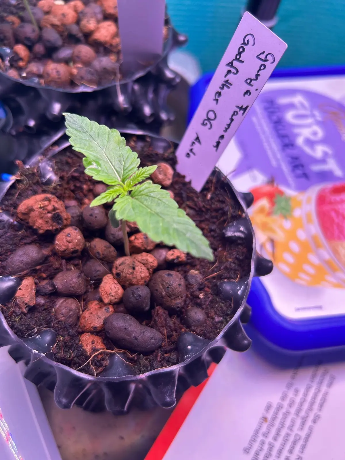 Gewässert in destilliertem Wasser (24gC) bis der Seed sinkt, dann ab in den Eazyplug. Ebenfalls gewässert und gewärmt und ab ins Minigewächshaus auf der Heizmatte. Nach dem Schlüpfen kam der Plug in den Airroottopf, der steht zur Zeit unter der Spiderfarmer G12 in einer Metallschale in Terra Aquatica Tripart. Der Plan ist, den Vadder in einem 20L Autopot zu versenken und outdoor mit GHF Hybrid weiter zu machen.