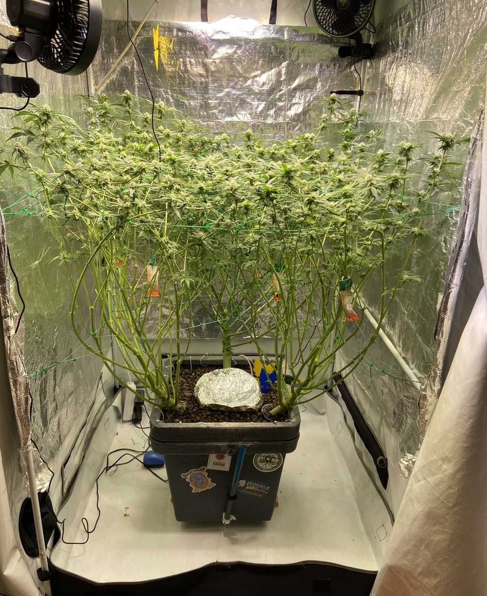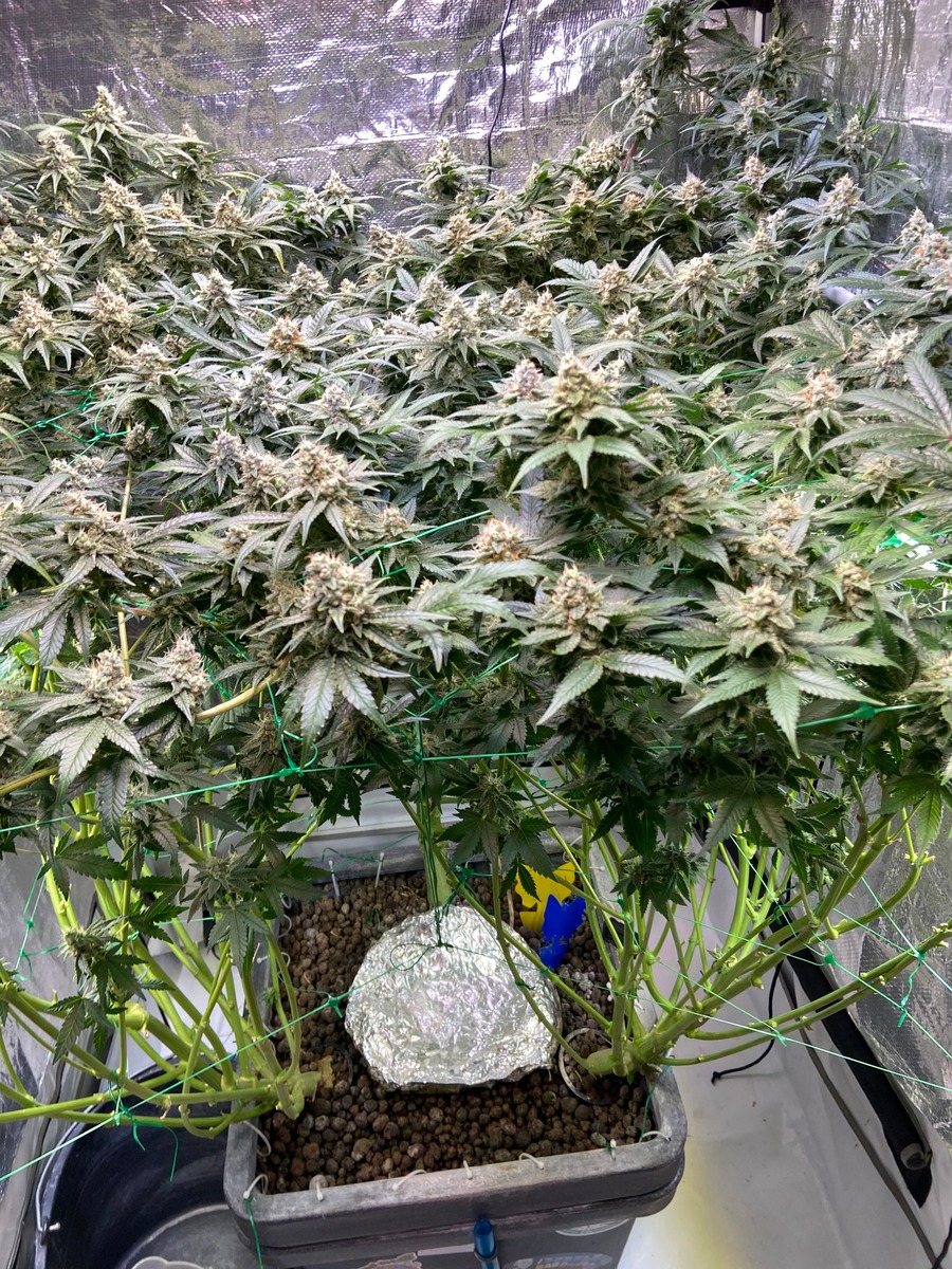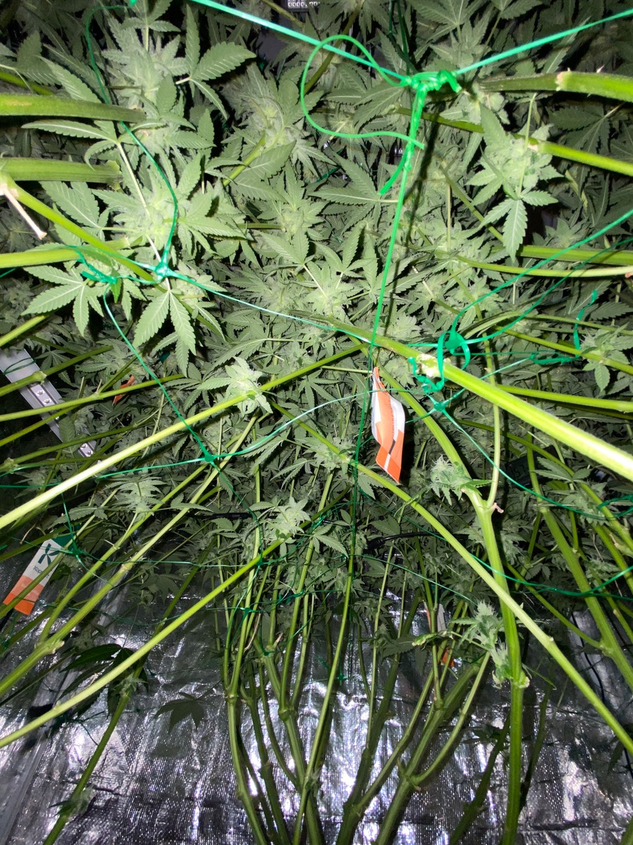 Raubmilben sind drin. Vor ca. 1 Woche hab ich den Haupttrieb gekappt. Heute Abend wird unten rum das erste mal beschnitten und wenn alles gut läuft geht nächstes Wochenende in die Blüte mal sehen.