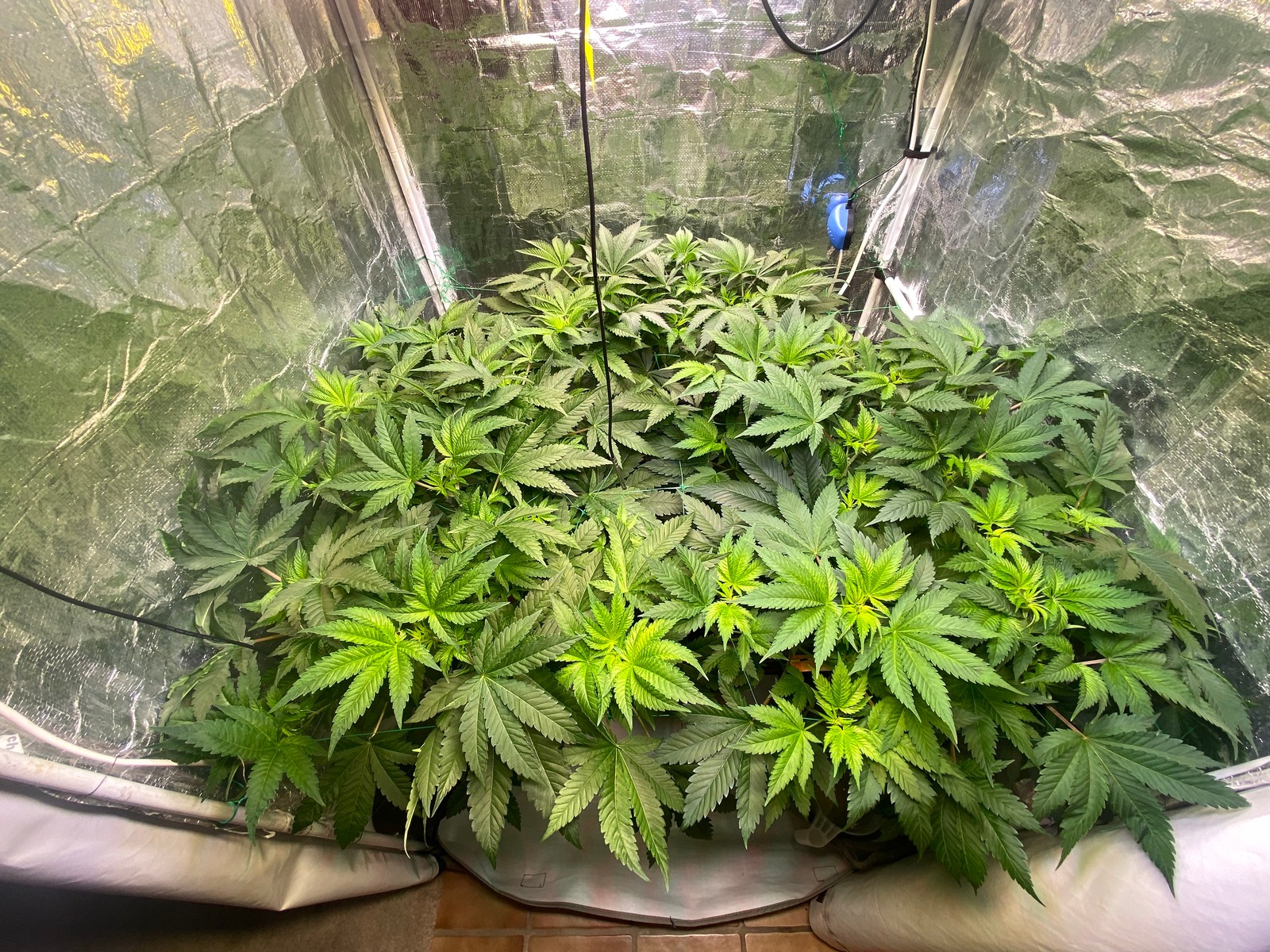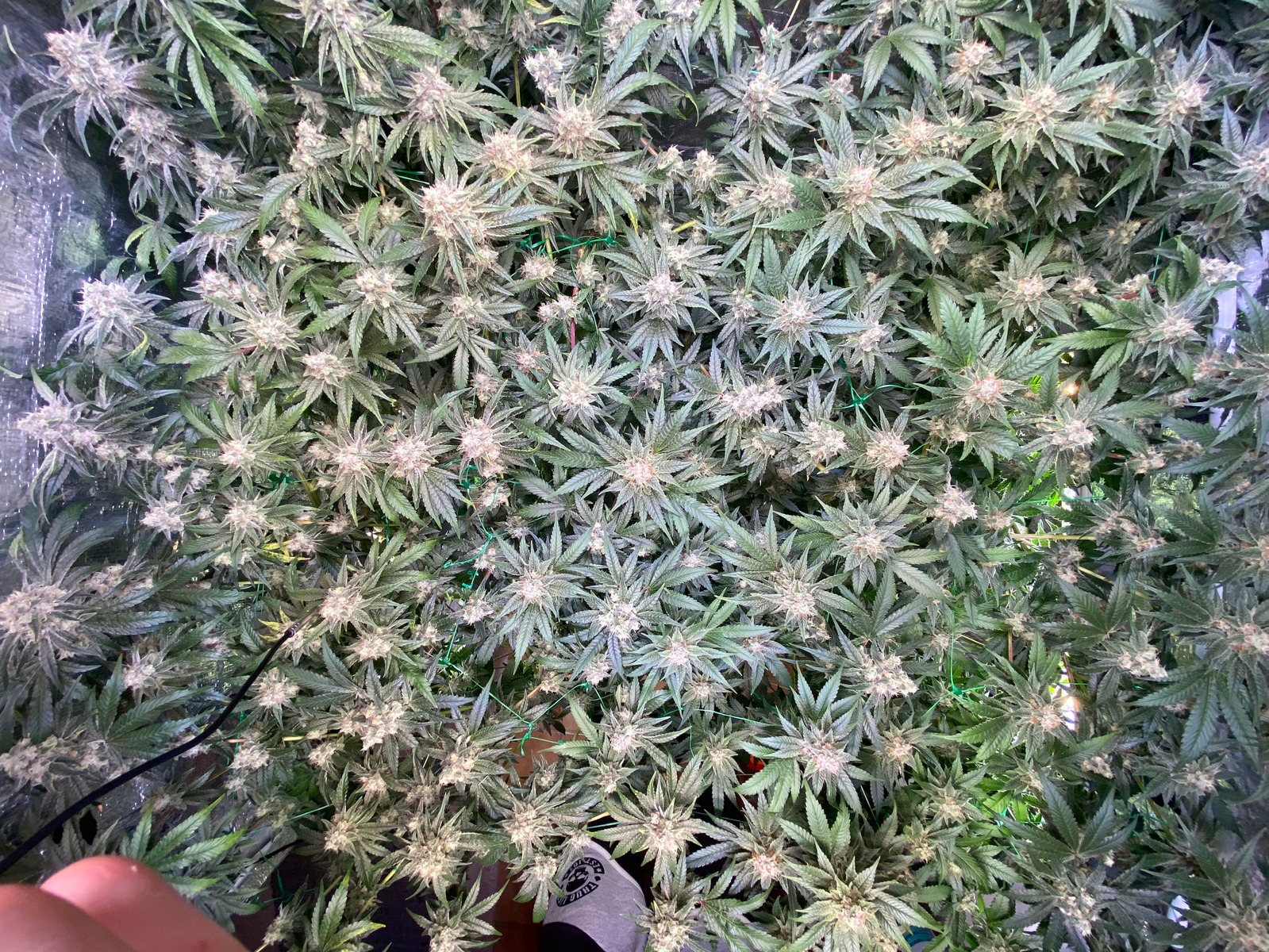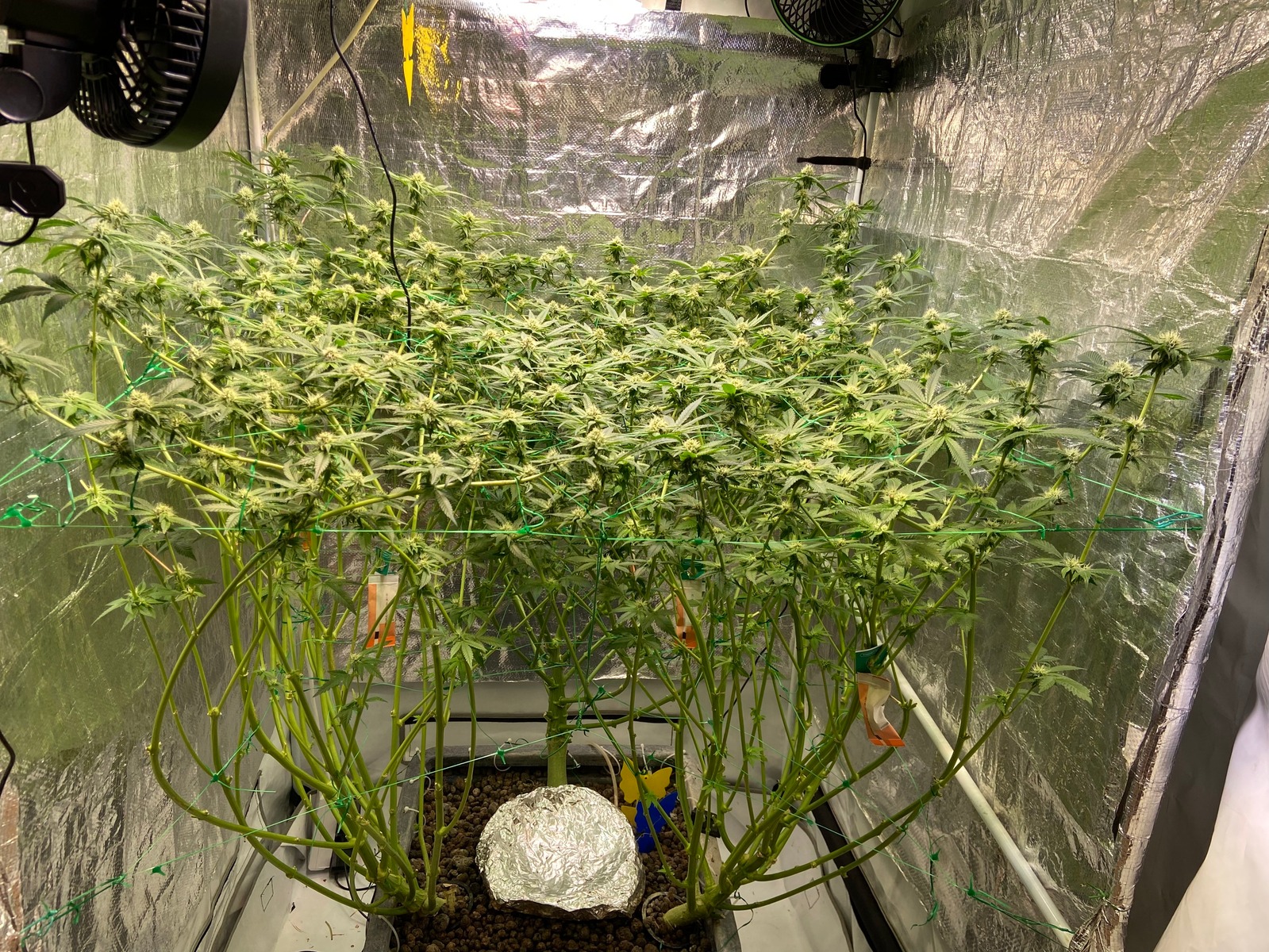 Raubmilben sind drin. Vor ca. 1 Woche hab ich den Haupttrieb gekappt. Heute Abend wird unten rum das erste mal beschnitten und wenn alles gut läuft geht nächstes Wochenende in die Blüte mal sehen.