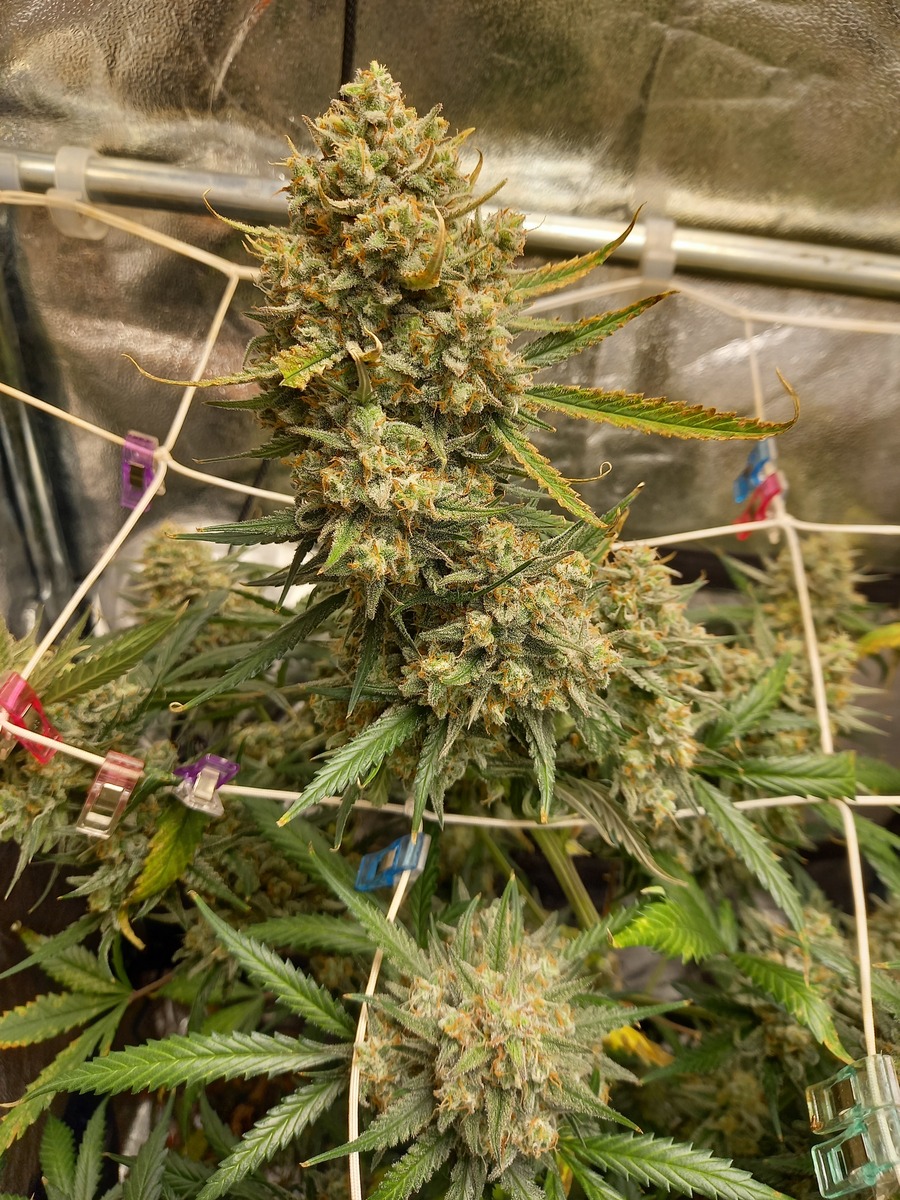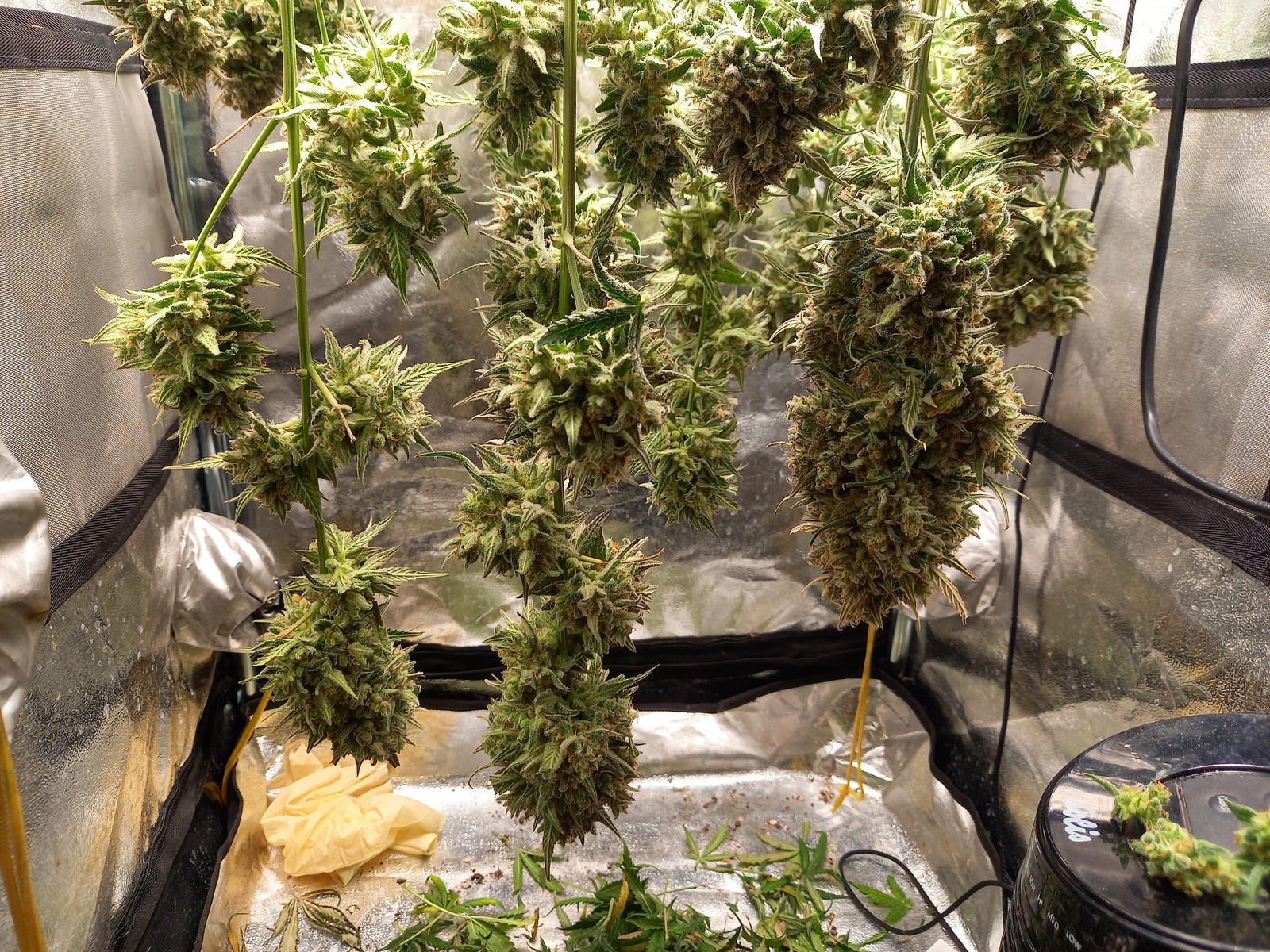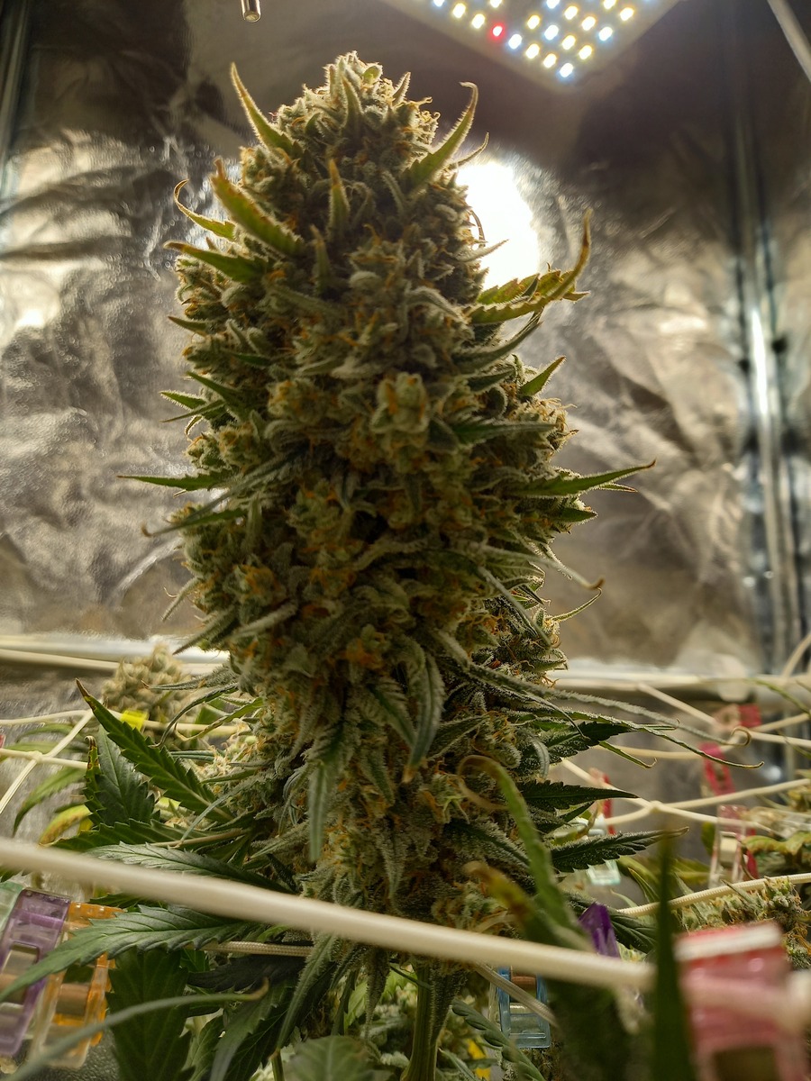 statt der angegebenen 9 wochen, hat es jetzt doch 11 gedauert - von keimen bis ernte - sie war eine kleine pflanze, wurde nix getrimmt, nur bissl gebogen, ernte jedoch scheint überraschend üppig auszufallen.