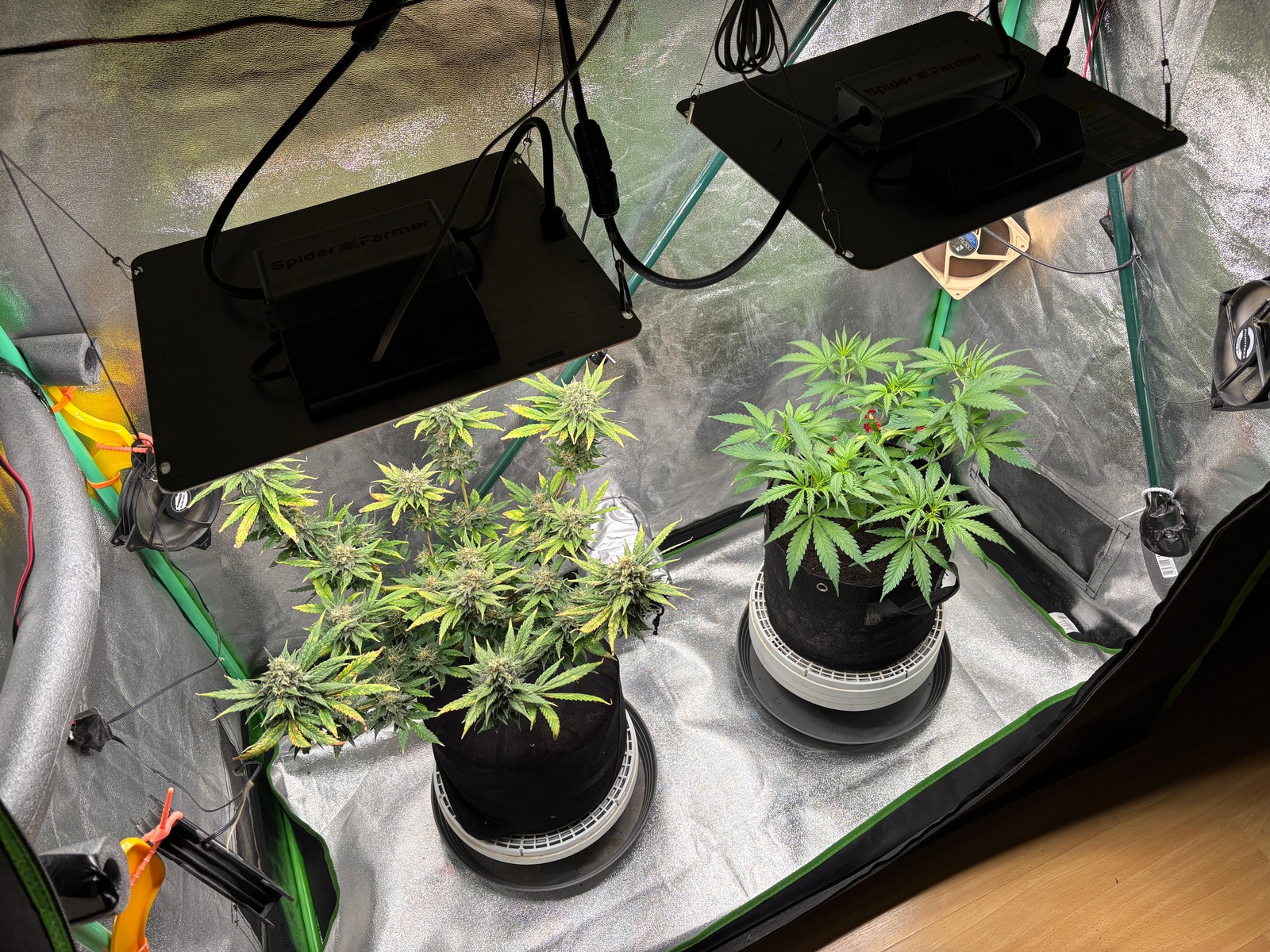 (Blüte) 2x 100 Watt Spider Farmer (Vegi) 20 Watt - Substrat: Floragard Growmix Professional - Blütedünger: Hesi Mineralisch - Wasser: PH 7.60 EC 0.461