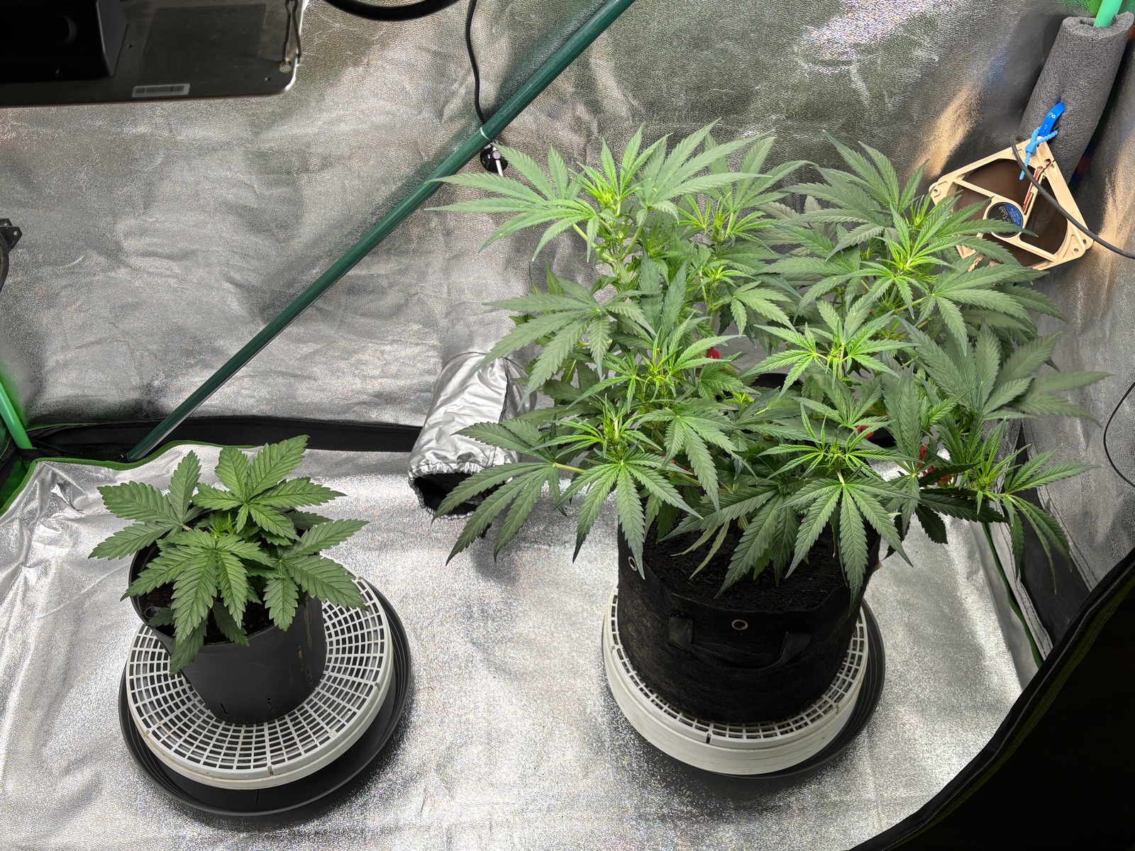 Die gute hat Grün aufgetankt, im warsten Sinne des Wortes. Der Netto Dünger hat seinen Dienst getan, etwas zu gut, was aber nicht weiter tragisch ist. Gegossen wir heute Abend / morgen Früh, dann schaue ich ob ich direkt mit 🧪 Hesi Blüh Complex anschließe.
