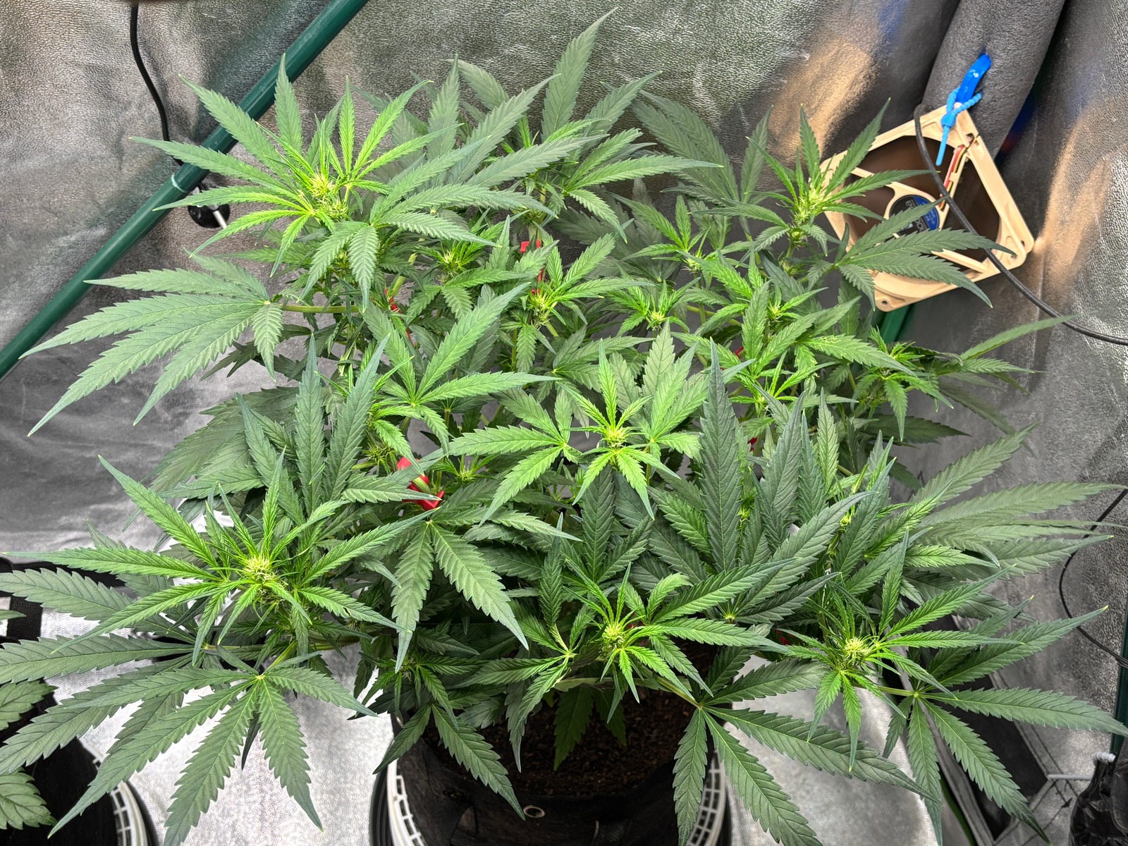 Ich habe LST/HST jetzt schon final, ist eine gute Form bei rausgekommen. Die Gute ist jetzt defoliert u. verbogen, die Dame hat mich diskret gebeten morgen erst Aufnahmen zu machen *g