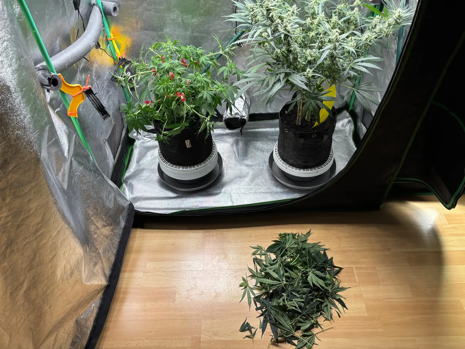 (Blüte) 2x 100 Watt Spider Farmer (Vegi) 20 Watt - Substrat: Floragard Growmix Professional - Blütedünger: Hesi Mineralisch - Wasser: PH 7.60 EC 0.461