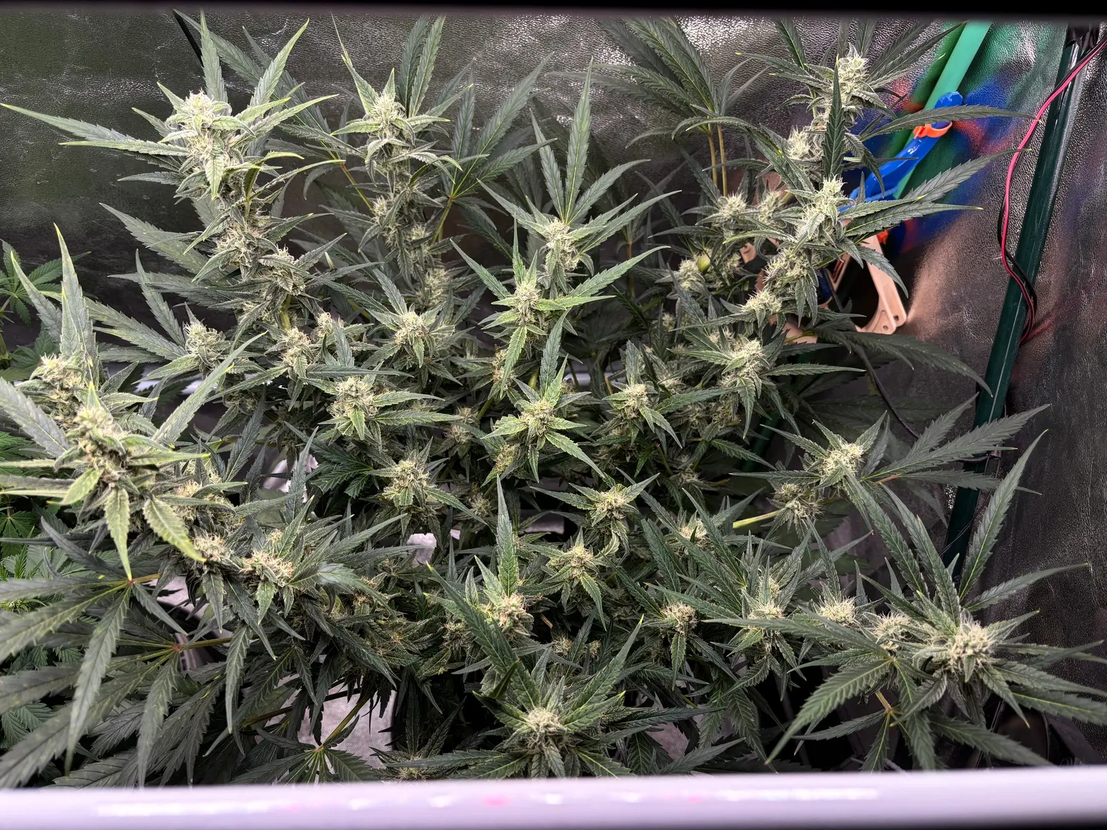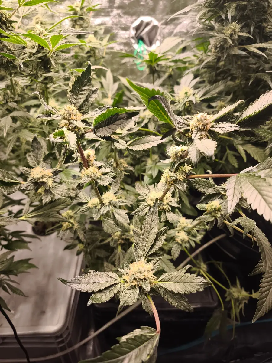 Heute war nicht nur low stress Training angesagt! 🧑🏼‍🌾 Es wurde wie man sieht ordentlich defoliert! Mir ists dieses mal echt schwer gefallen, aber nicht bei Ihr, sondern Ihrer Kollegin. Jetzt ist alles wieder etwas lichter und aufgeräumt, so mag ich es! die Lampen laufen bei ca. 2x90 Watt.