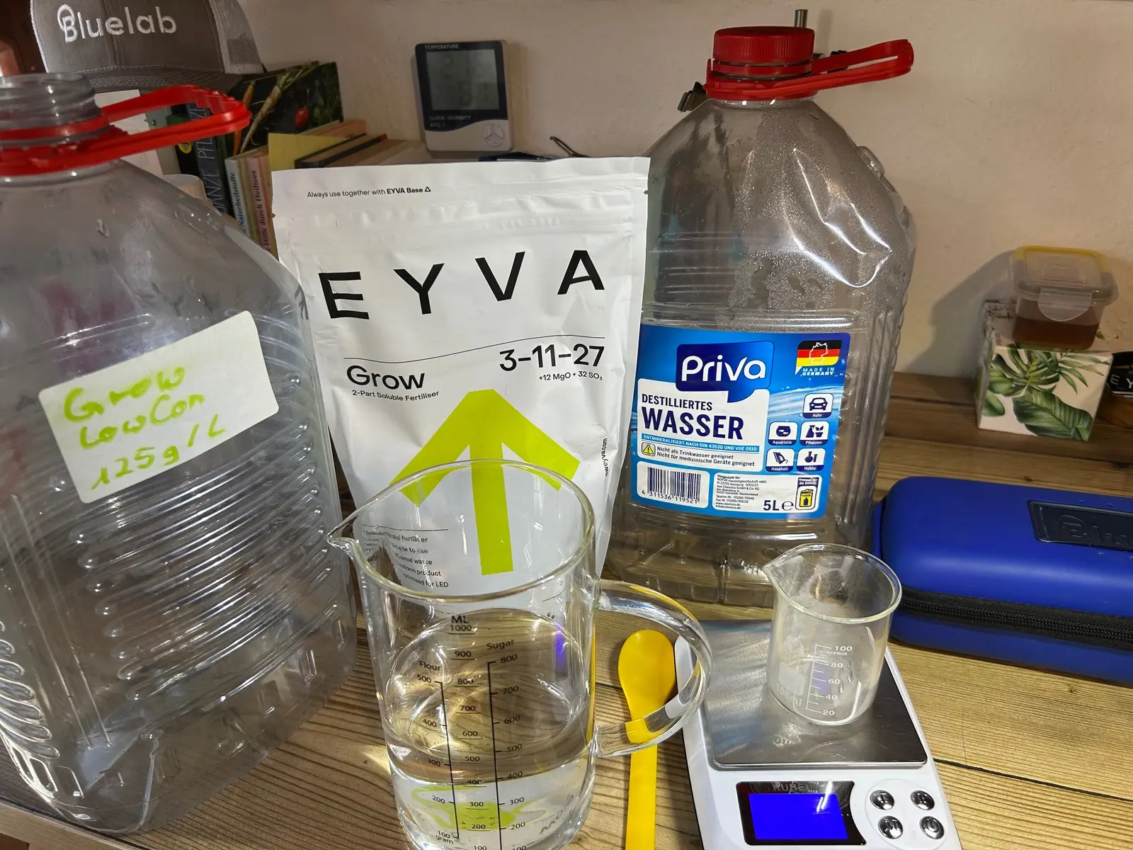 Laut Fütterungstabelle angemischt ergibt sich ein Ec von 3,0.