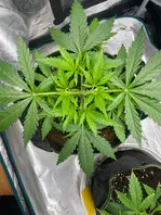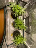 Exemplarisch einfach mal eine Blume. Die hat sich in den letzten 5 Tagen fast verdoppelt und ich kann bald mit dem Low Stress Training anfangen. Die Triebe von unten sind bei zwei von dreien schön nach oben geschossen. Öfter Toppen will ich aber nicht weil ich schnell ernten möchte -