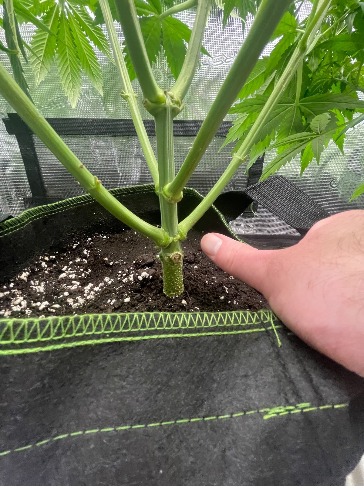 Ich wollte letzen Freitag ein wenig die Pflanzen trainieren und die Triebe auf ein Niveau bringen, jedoch ist mir erstmal ein Trieb abgebrochen.