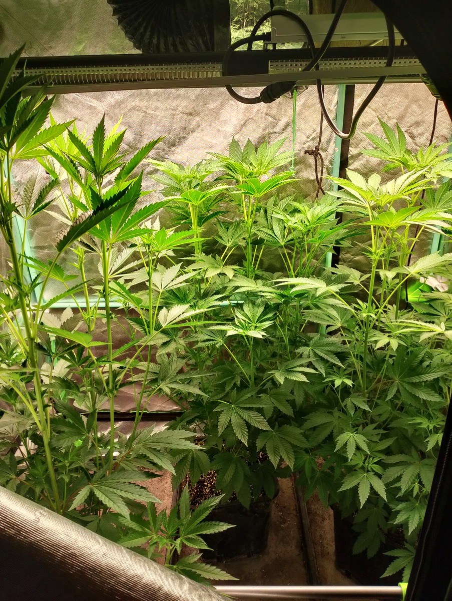 Es wächst vor sich hin, noch ca. 2 Wochen wuchs, dann geht's in das Vorblüte Zelt mit mehr Platz und anderer Beleuchtung