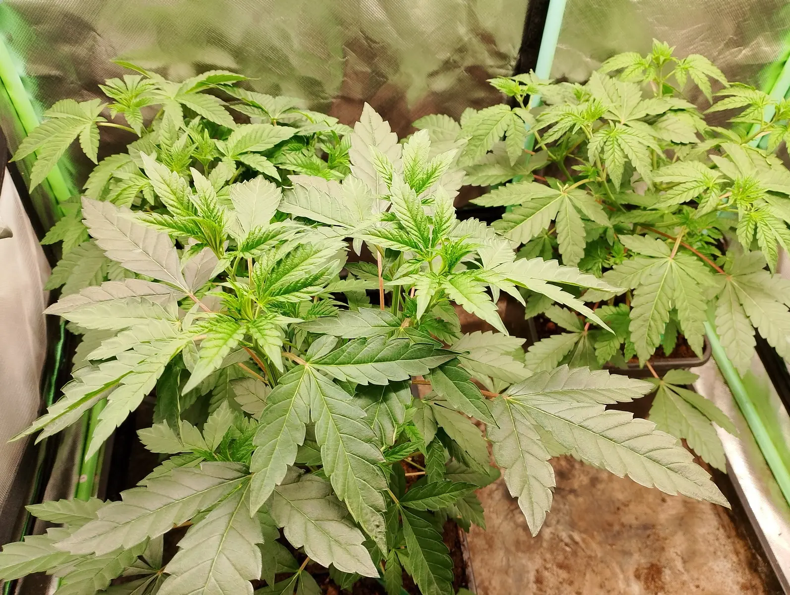 Umgetopft ins Vorblüte Zelt, Beleuchtung 1x Mars Hydro SP250 und 2x Mars Hydro UV/FR Boost, Zelt 120x90x180, Abluft Soler & Palau, Umluft Schwenkventilator 15/15