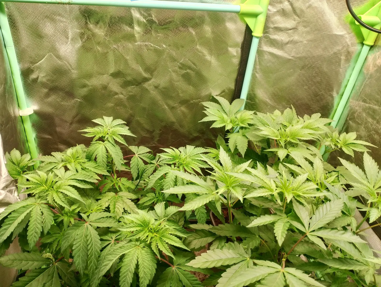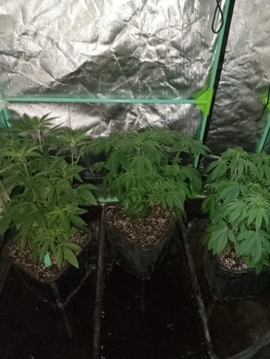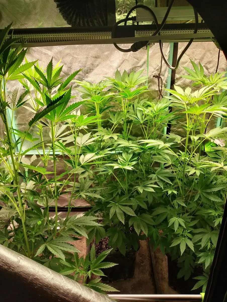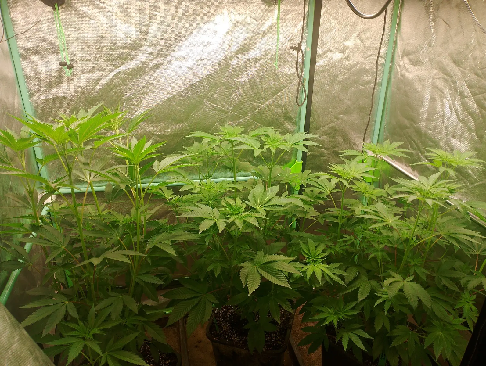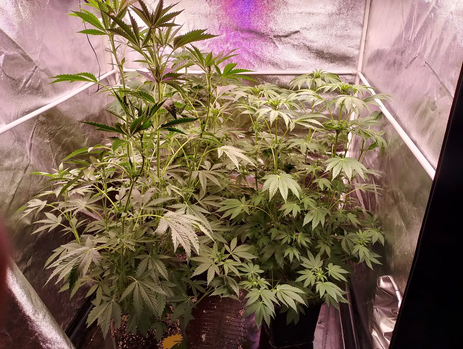 Es wächst vor sich hin, noch ca. 2 Wochen wuchs, dann geht's in das Vorblüte Zelt mit mehr Platz und anderer Beleuchtung
