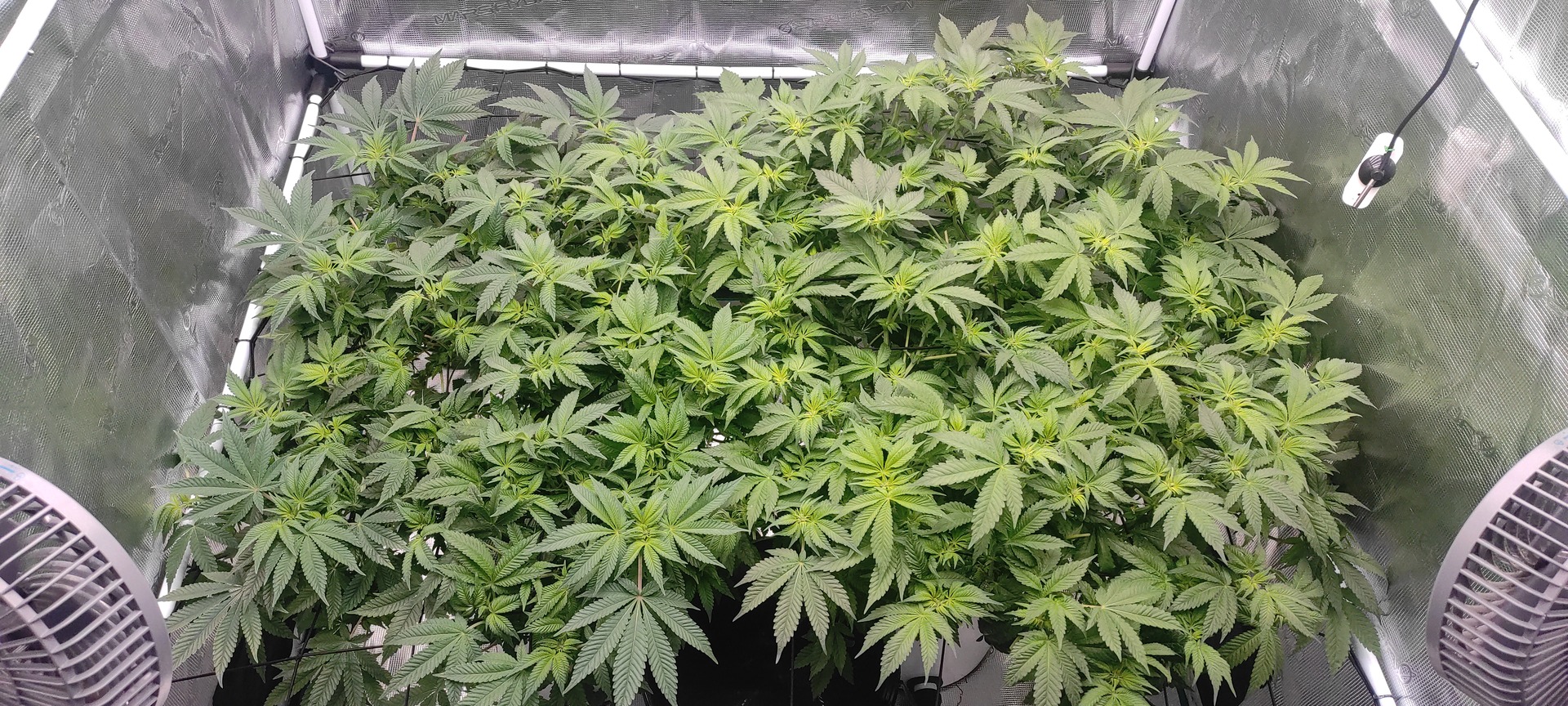 • Noch immer ein Ph drop von 6,0 auf 4,7 in 24 Stunden obwohl ich Kaliumcarbonat (gestern 4,3g auf 35L) hinzugefügt habe. Muss wahrscheinlich einen kompletten Wasserwechsel die Tage machen, da der Stretch größtenteils vorbei ist werde ich auch auf das Flowering-Schema wechseln.