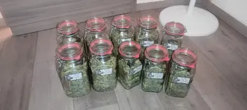 Dachte niemals dass es soviel wird, war sehr viel versteckt 🙏 Für 2 Pflanzen die eigentlich "Mikrkig" aussehen ist das ne fette Ernte, beim letzten Grows hatte ich das an 4 Pflanzen ☺️