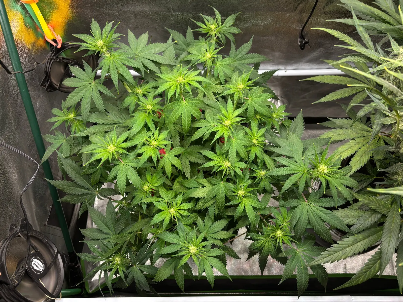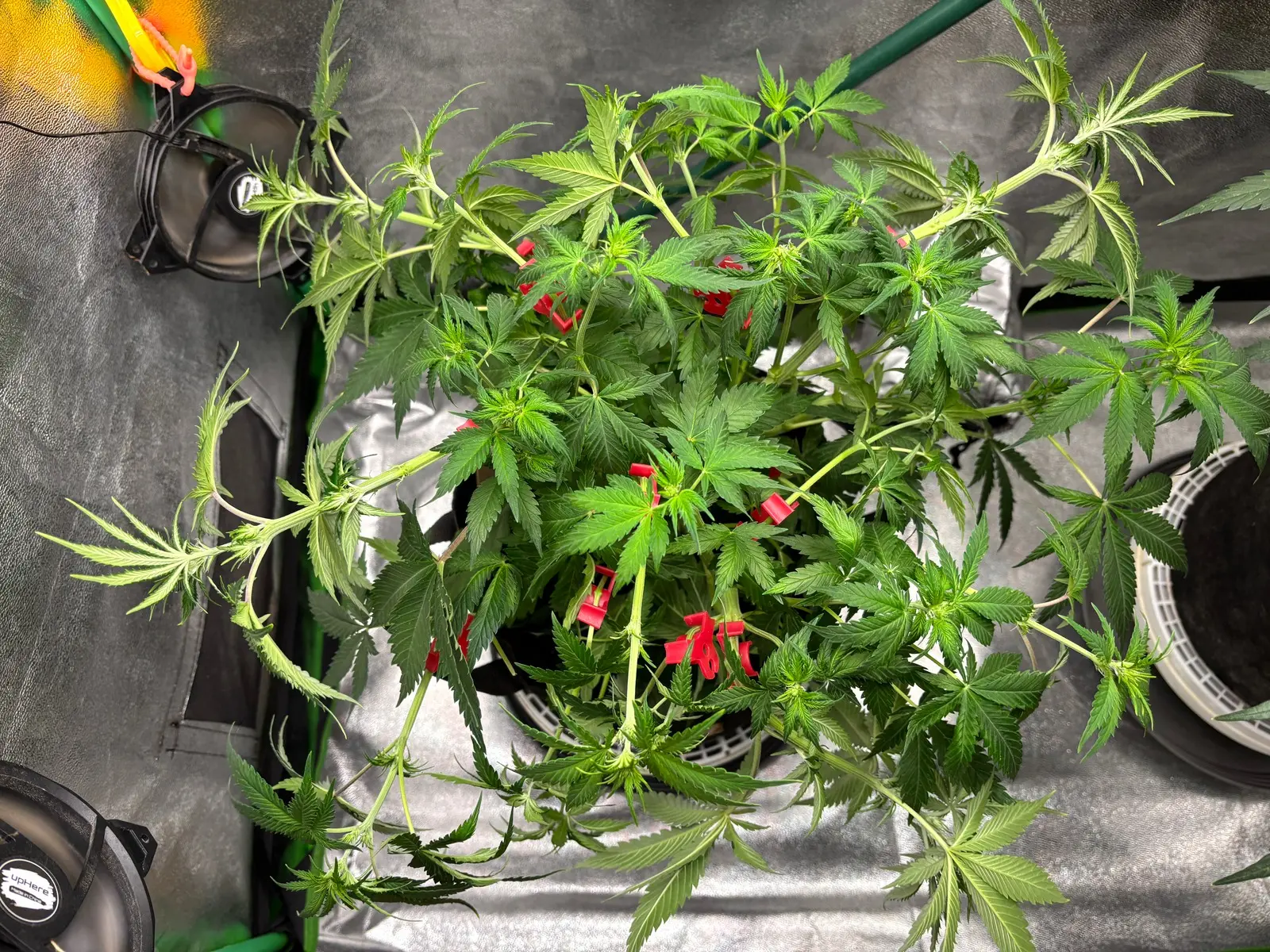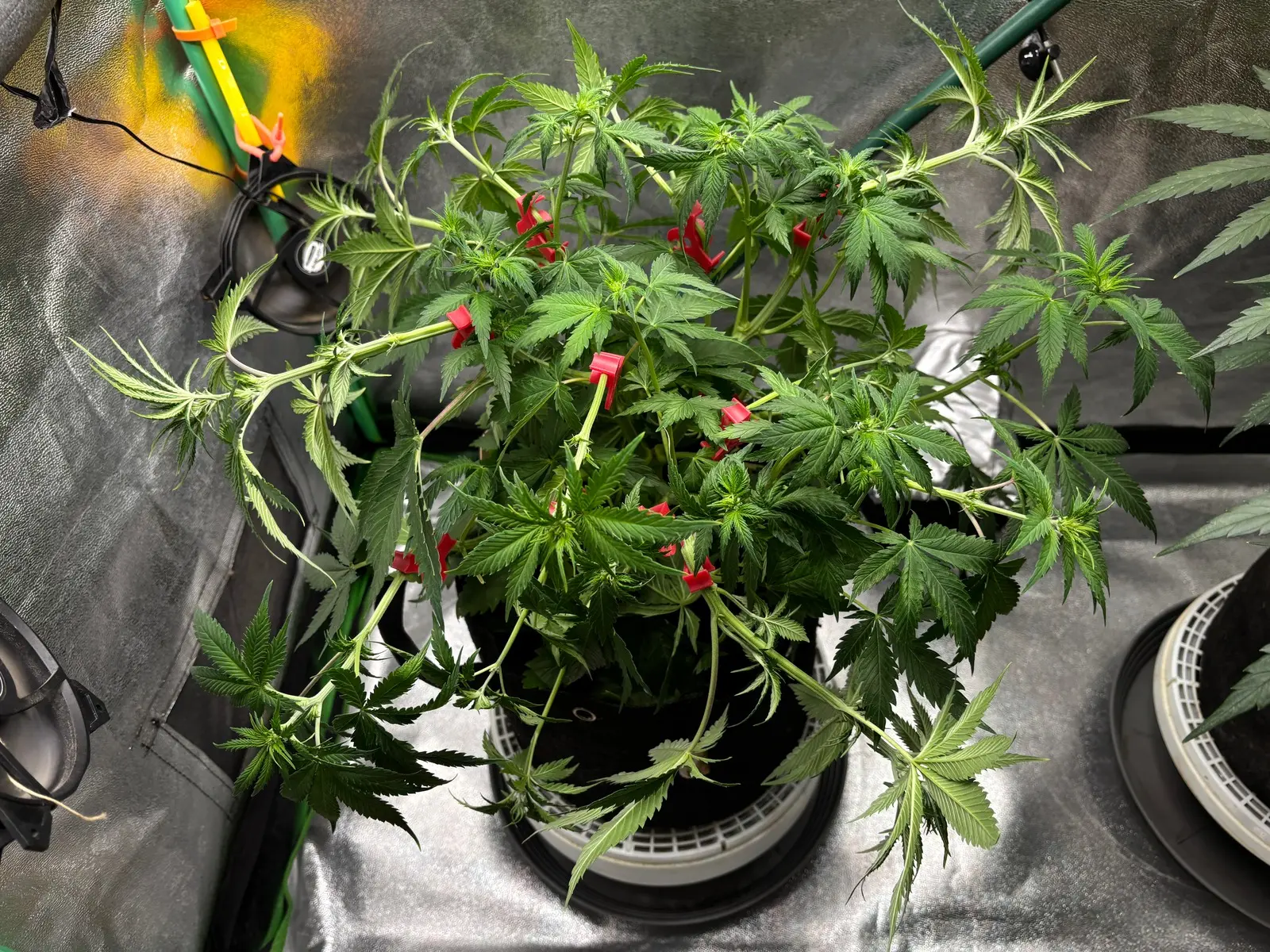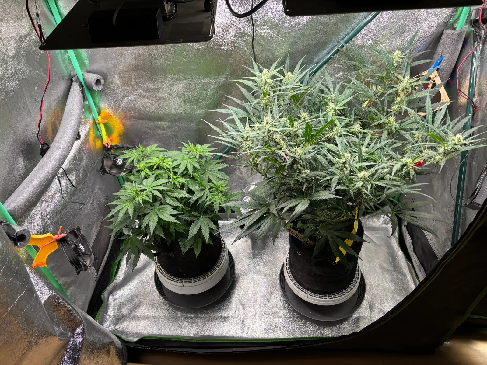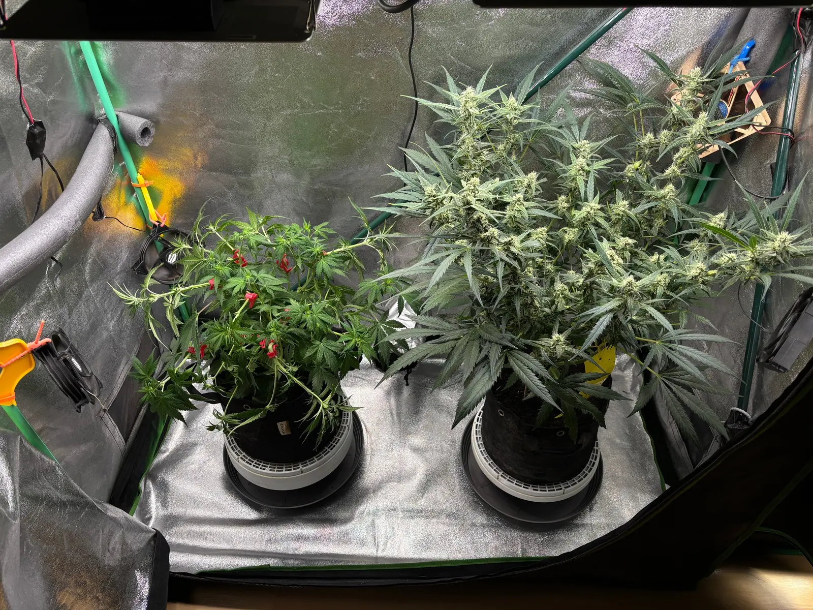 🧑🏼‍🔬 Bislang gab es hier nur BTI, Bittersalz. Ab heute Abend gehts dann mit dem Blüh Complex 30% u. etwas Calcium weiter. Was für ein ungleiches Paar. 🧑🏼‍🌾 LST: Hab noch ein paar Bieger an der Pflanze, wollte aber vom Wuchs her erstmal nichts mehr verändern.