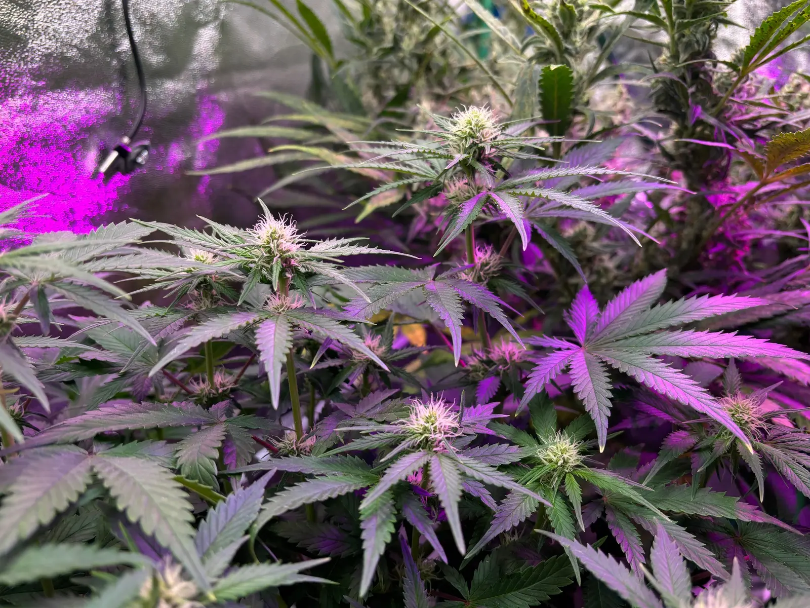 Werde immer mal nachjustieren, so dass die ganze freie Fläche von den Pflanzen genutzt wird. Lampenabstand seht Ihr ja selbst, Leistung 💡 auf ca. 2x 90 Watt. (Licht messe ich i.d.R. nicht).
