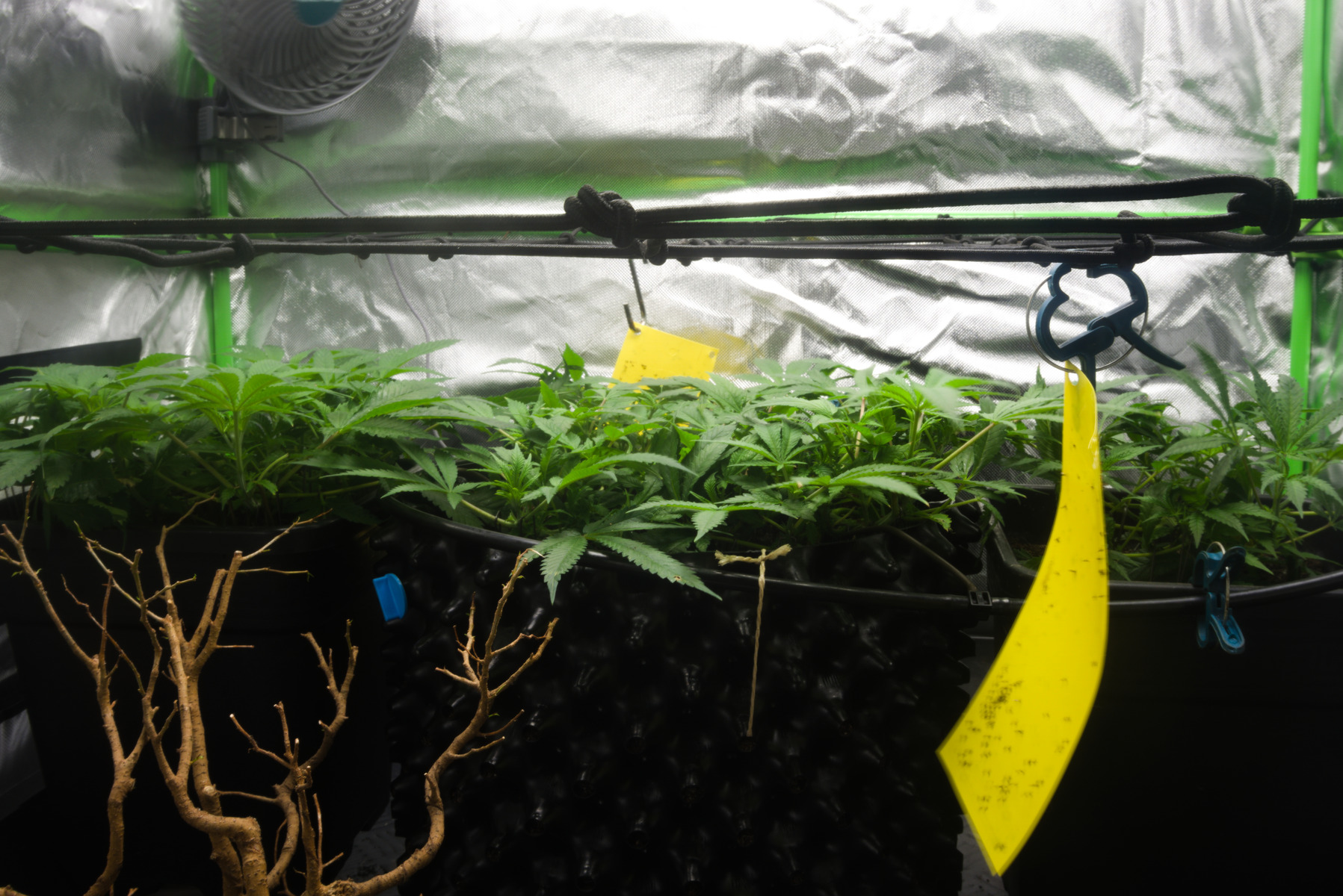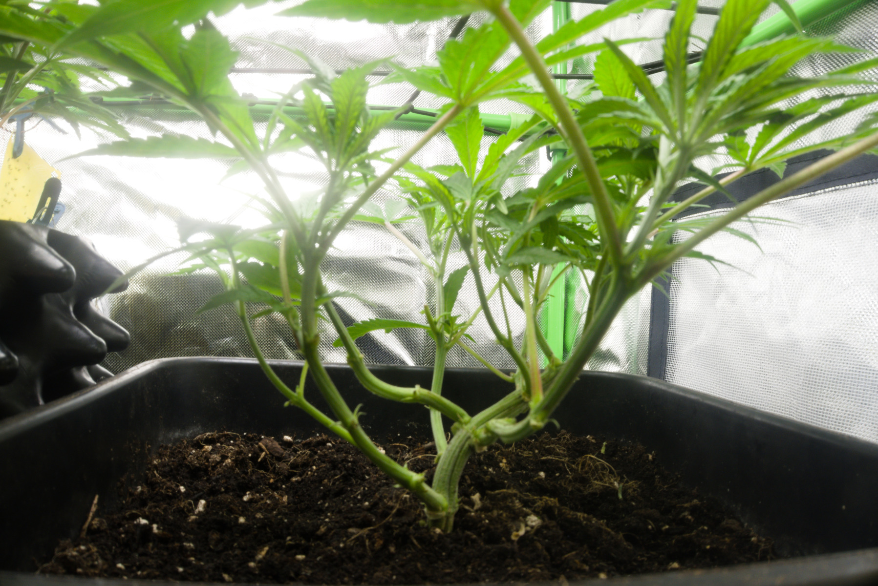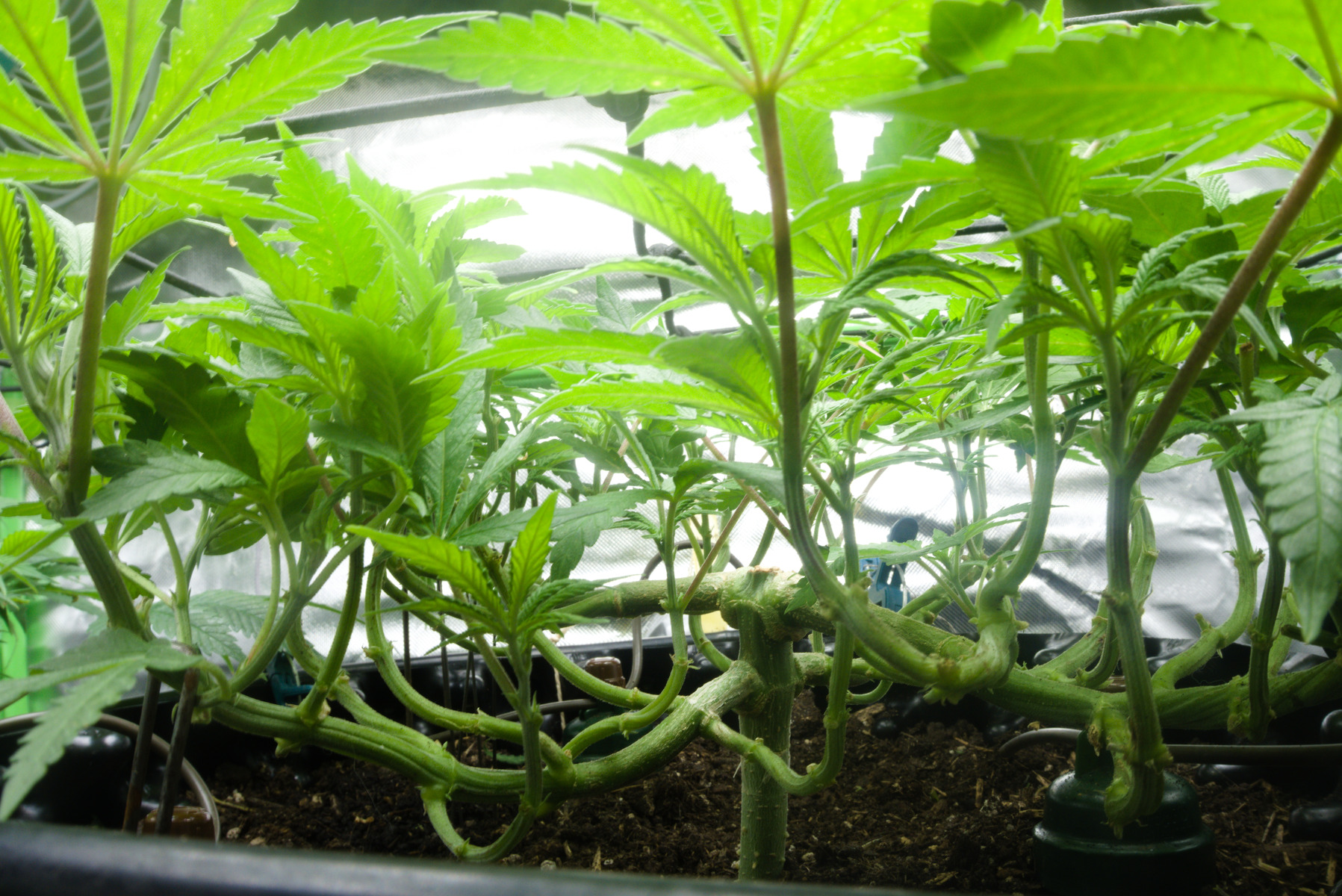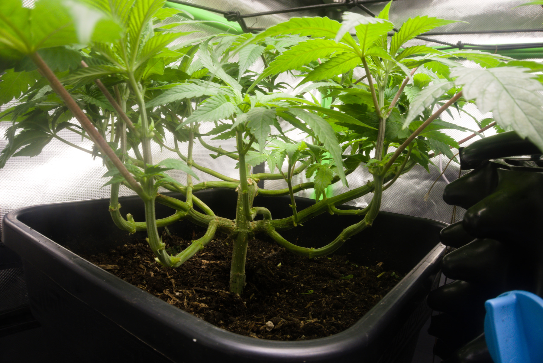 Die Blattspitzen errreichen jetzt das Netz ich denke, irgendwann in den naechsten 3 Tagen werde ich sie dann wohl in Bluete schicken.Aber jetzt Sollen sie sich noch etwas vom Stress erholen.