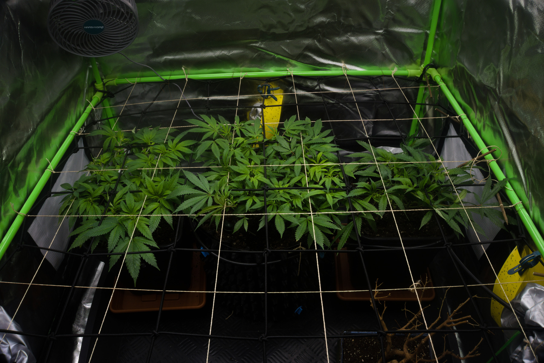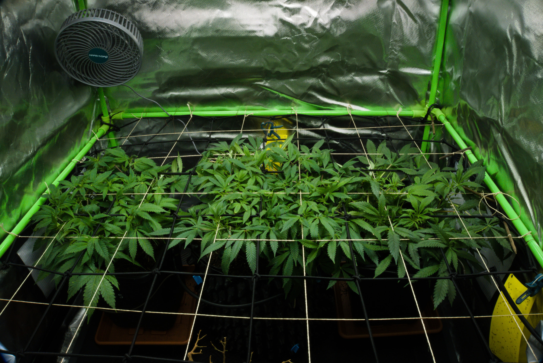 Ich würde persönlich wenn du jetzt schon in Blüte gehst, das Netz noch etwas nach unten machen, dann kannst du früher rein flechten 👍