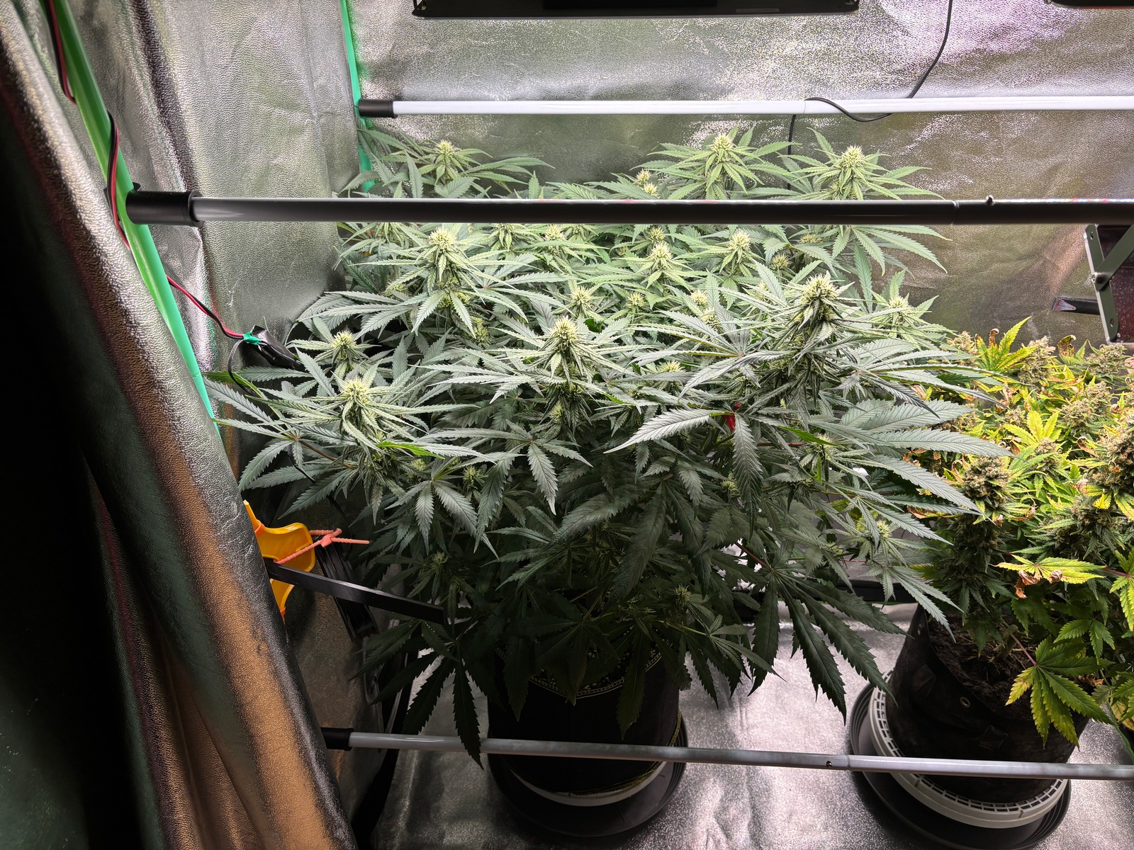 👨‍🌾 Leider habe ich jetzt nicht den Stiel fotografiert aber man sieht schon deutliche Unterschiede, fast doppelt so groß. Die Purple Punch muss sich dann bestimmt jeden Centimeter erkämpfen. Ich habe vor in 5-7 Tagen eine kleine Schicht 🪨 Dolomit Kalk auszubringen, dadurch sollte die CALMAG Versorgung gewährleistet sein. 🤔