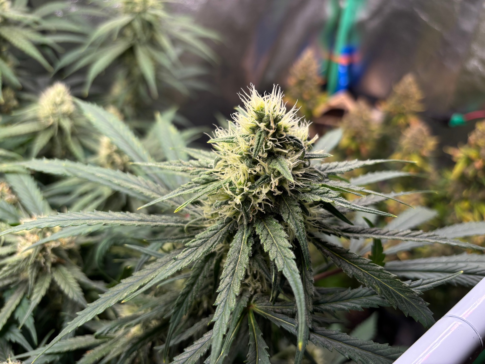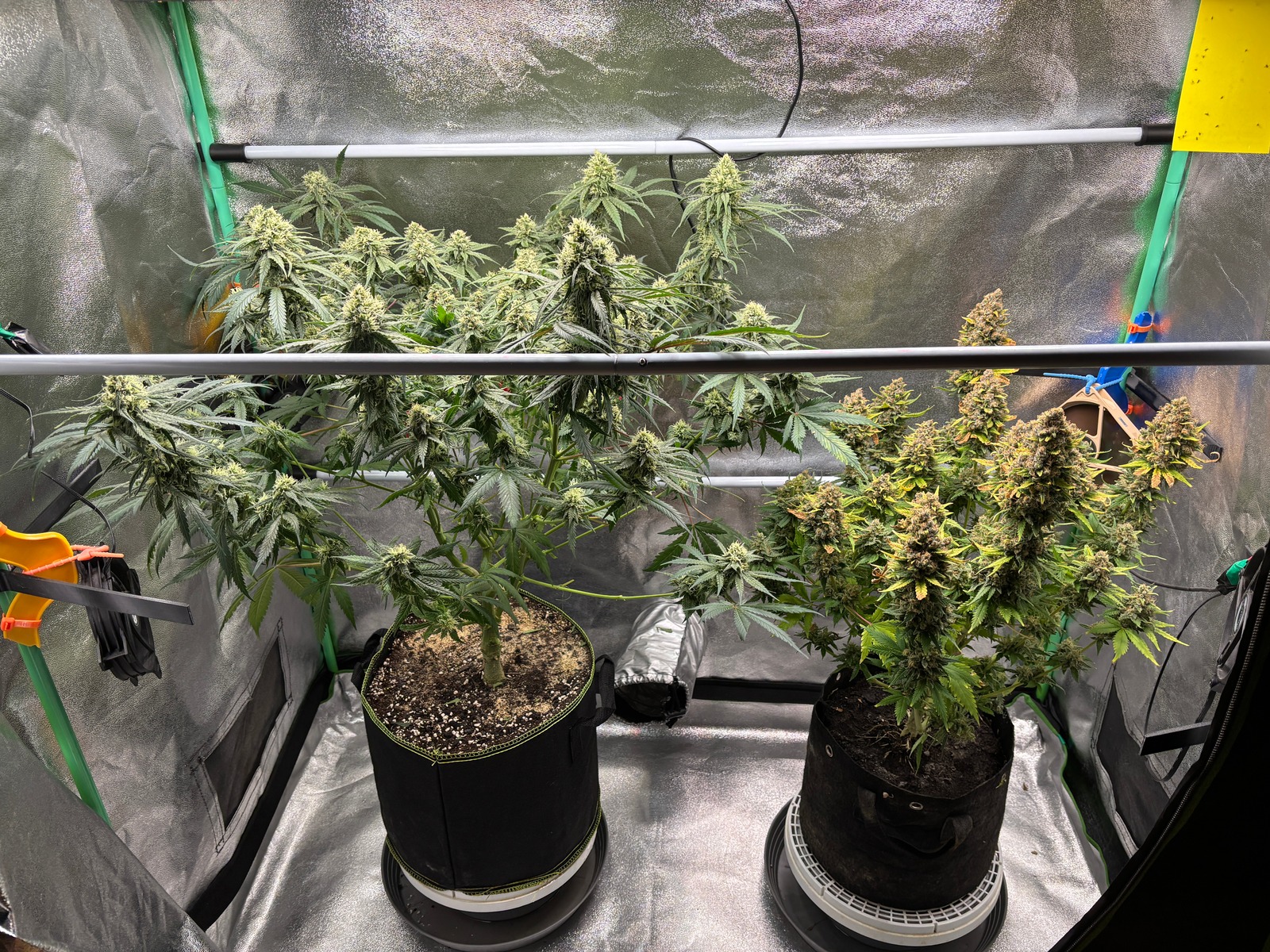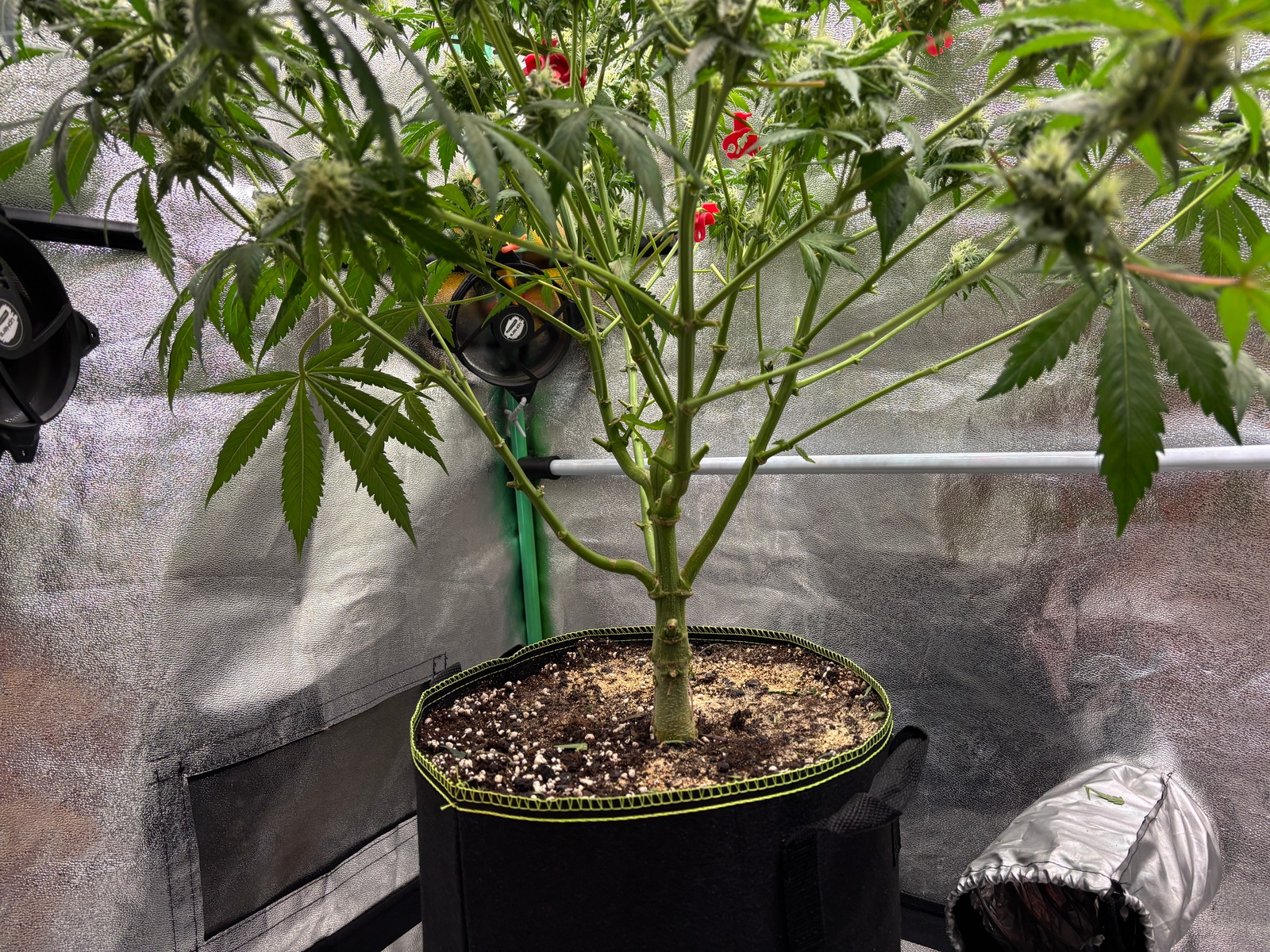 👨‍🌾 Leider habe ich jetzt nicht den Stiel fotografiert aber man sieht schon deutliche Unterschiede, fast doppelt so groß. Die Purple Punch muss sich dann bestimmt jeden Centimeter erkämpfen. Ich habe vor in 5-7 Tagen eine kleine Schicht 🪨 Dolomit Kalk auszubringen, dadurch sollte die CALMAG Versorgung gewährleistet sein. 🤔