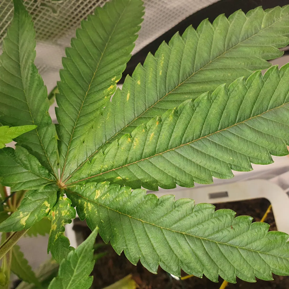 Finde auch dass es jetzt nicht wirklich schlimm, vielleicht hat sich etwas geschäuert, ein Kumpel hatte nämlich leichte trockene Blattspitzen, die haben dann Blätter "Wund" gescheuert (sah aber etwas anders aus).